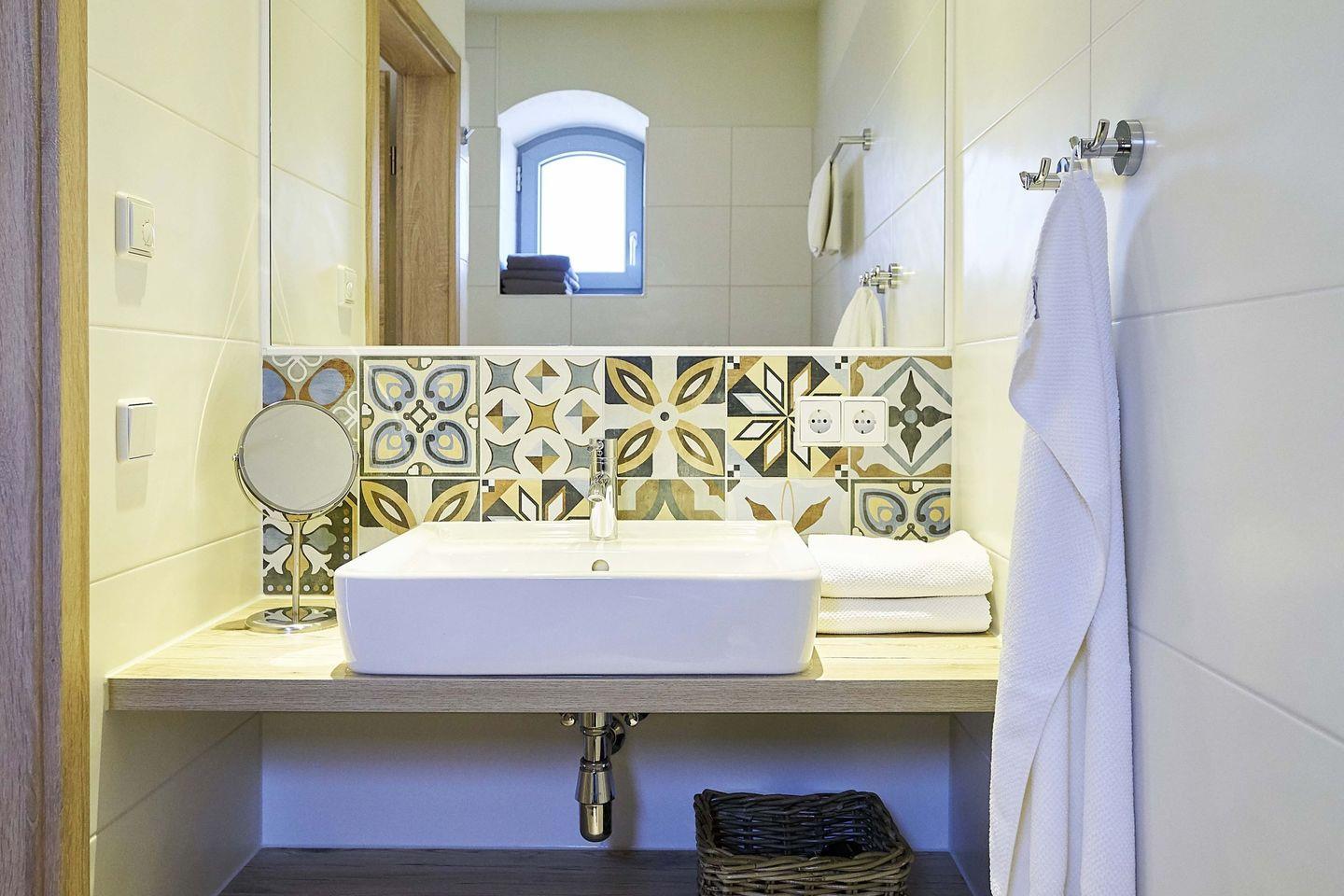Die Ferienwohnung „Tenne“ für 2 + (1 kleinere) Personen mit 36 m² befindet sich in einer ehemals denkmalgeschützten Scheune. Sie wurde 2018 sehr aufwendig und liebevoll restauriert, um den historischen Charakter und das wunderschöne Feldsteinmauerwerk zu erhalten.