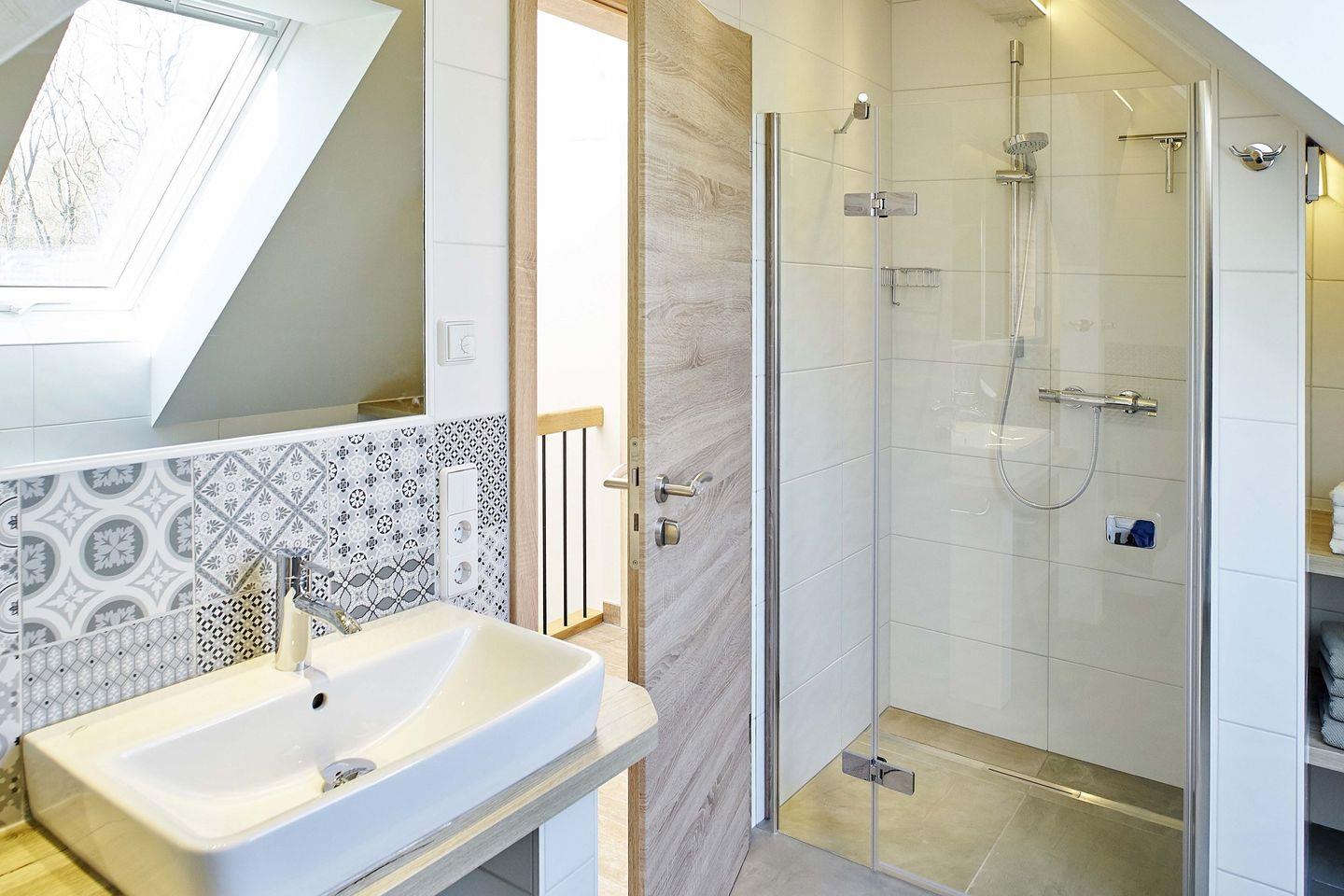 Zur hochwertigen Ausstattung gehören 2 Doppelzimmer, 1 großzügiges Familienzimmer mit Doppelbett und 2 Einzelbetten, 3 Bäder mit bodengleichen Regen- und Brauseduschen, Waschmaschine und eine eigene Sauna.