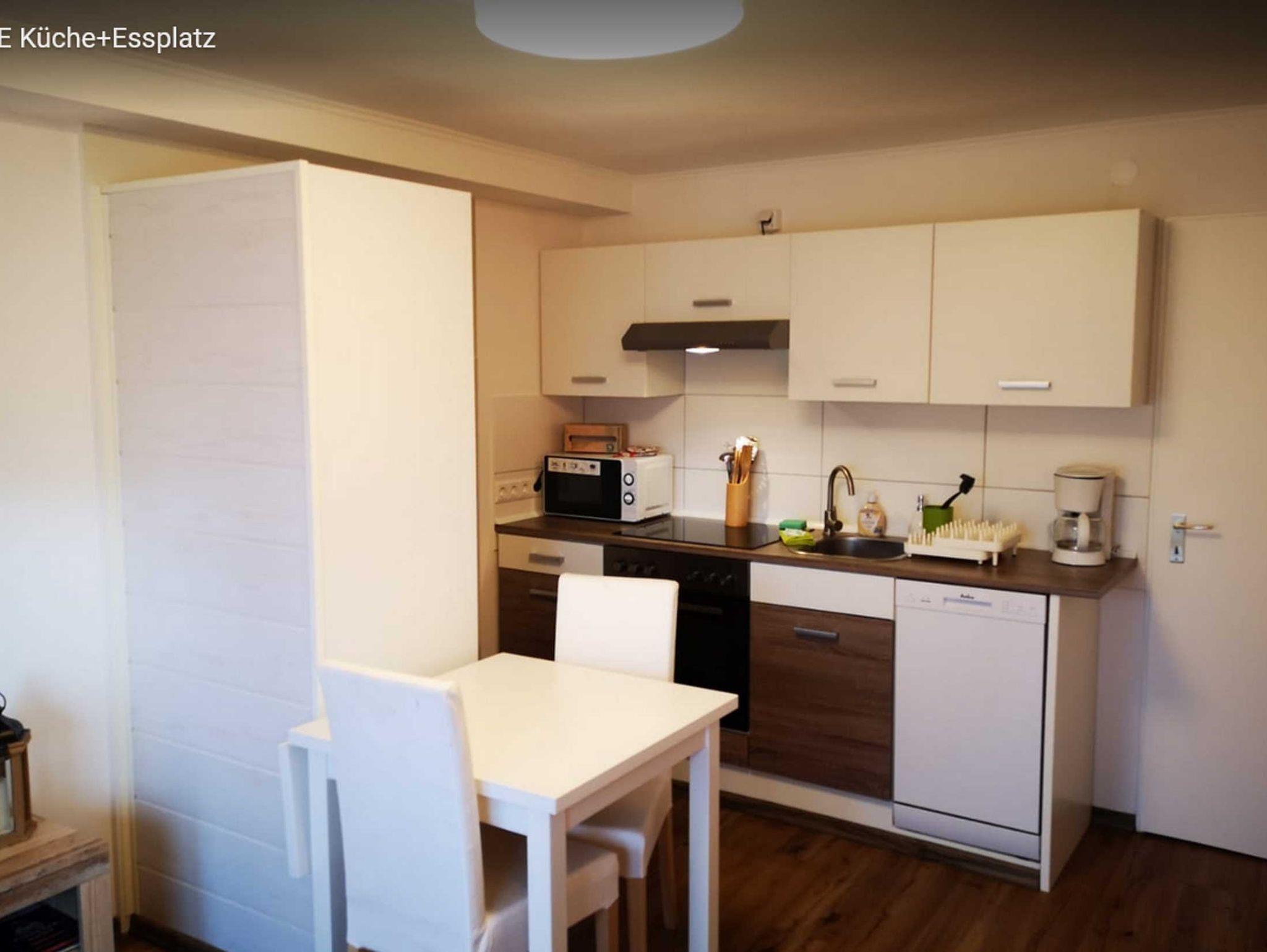 Die kleinere Wohnung im Untergeschoss des Ferienhauses Birkenblick hat ca. 40 qm und besteht aus einem Schlafzimmer mit zwei Betten, einem Duschbad mit WC und einem Wohn- / Essbereich mit integrierter Küchenzeile. Das Wohnzimmersofa kann als dritte Schlafgelegenheit genutzt werden.