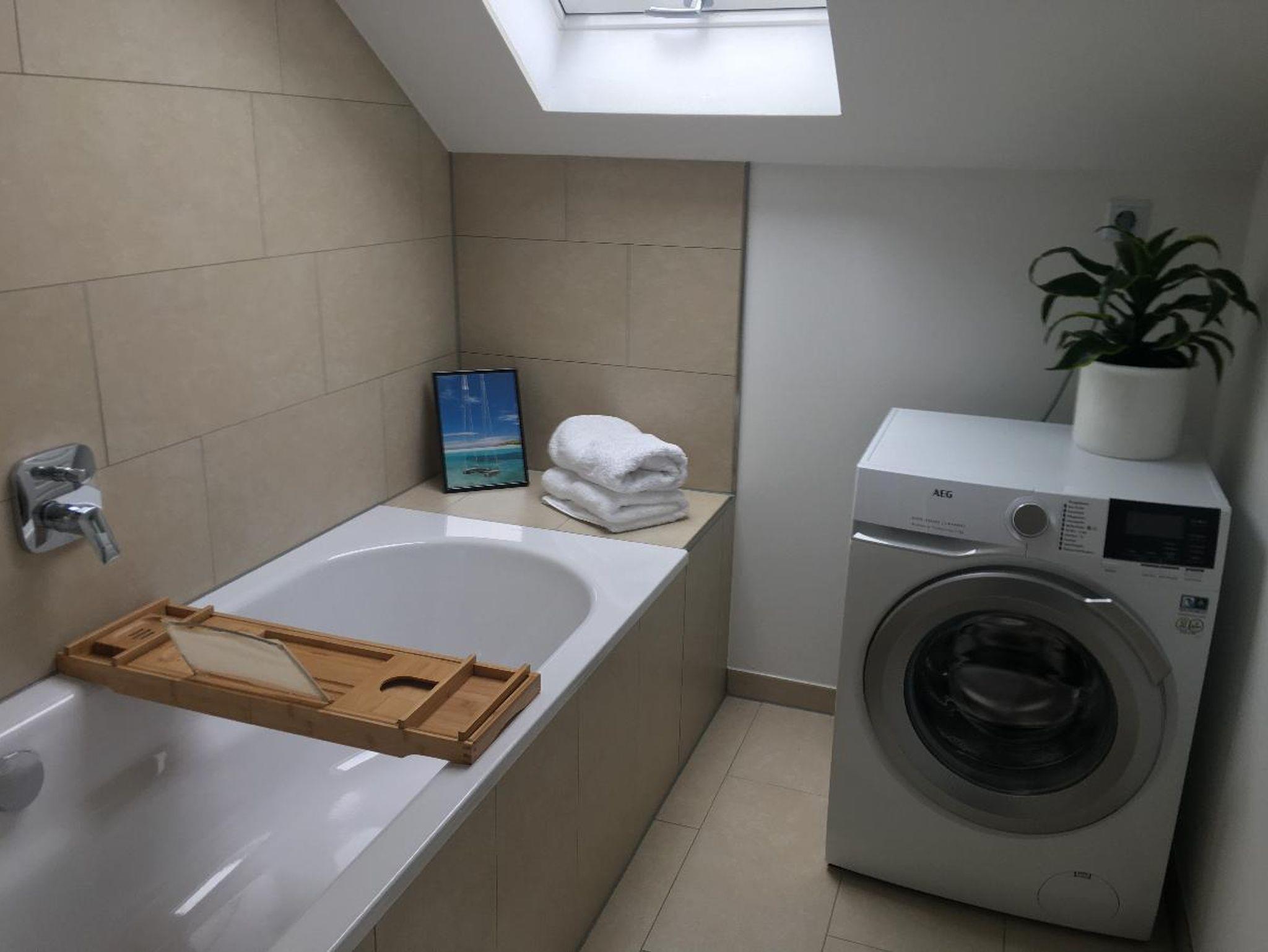 Die neue Ferienwohnung Teufelsbauer bietet auf 65 Quadratmetern Platz für bis zu 4 Personen (2 Kinder im Zustellbett). Das Schlafzimmer ist ausgestattet mit einem Doppelbett (2mx2m), einem großen Schrank mit eingebautem Safe und einer Sitzecke (Es stehen zwei Zustellbetten für Kinder zur Verfügung). Das Tageslichtbad verfügt über eine Badewanne mit integrierter Dusche, eine Waschmaschine inkl. Waschpulver, WC, Waschtisch, Föhn, Dusch- und Handtücher, Seife und 2 Bademäntel. Die großzügige Wohnküche (mit Balkon) ist mit Backofen, Induktionsherd, Kühlschrank mit Gefrierfach, Geschirrspüler, Kaffeemaschine (ohne Filtertüten nutzbar), Senseo Pad Maschine, Mikrowelle, Wasserkocher, Eierkocher, Toaster, Töpfe, Geschirr, Gläsern, Besteck, Tee und Kaffeepads und diversen Küchenutensilien (Geschirrtücher, Lappen, Seife, Spühlmaschinentaps, Müllbeutel, Küchenrolle, Backpapier, Salz, Pfeffer, täglich frische Eier von den Hauseigenen Hühnern) voll ausgestattet. Es steht Ihnen ein großzügiger Essplatz zur Verfügung. Im lichtdurchflutetem Wohnbereich befindet sich eine ausziehbare Couch, ein Flat TV, ein Tablett mit einem Amazonmusik Zugang, eine Musikstation, eine elektrische Dartscheibe, Gesellschaftsspiele, Bücher, Akupressur - Matte, Fußmassageroller, eine Infrarotwärmekabine sowie ein Staubsaugerroboter. Der Balkon, zur Alleinnutzung, bietet einen unverwechselbaren Blick in die Natur und ist ausgestattet mit einer Sitzgelegenheit sowie einem elektrischen Kugelgrill. Der großzügige Garten mit Sauna und Hot Tub lädt zum Entspannen ein. Auf Wunsch sind verschiedene Baby- /Kinderausstattungen möglich: Babyreisebett, Zustellbett, Rausfallschutz, Hochstuhl, Wickelauflage für die Waschmaschine, Toilettensitz, Tritterhöhung für das Waschbecken, Krabbeldecke mit Mobile, Kinderspielecke.