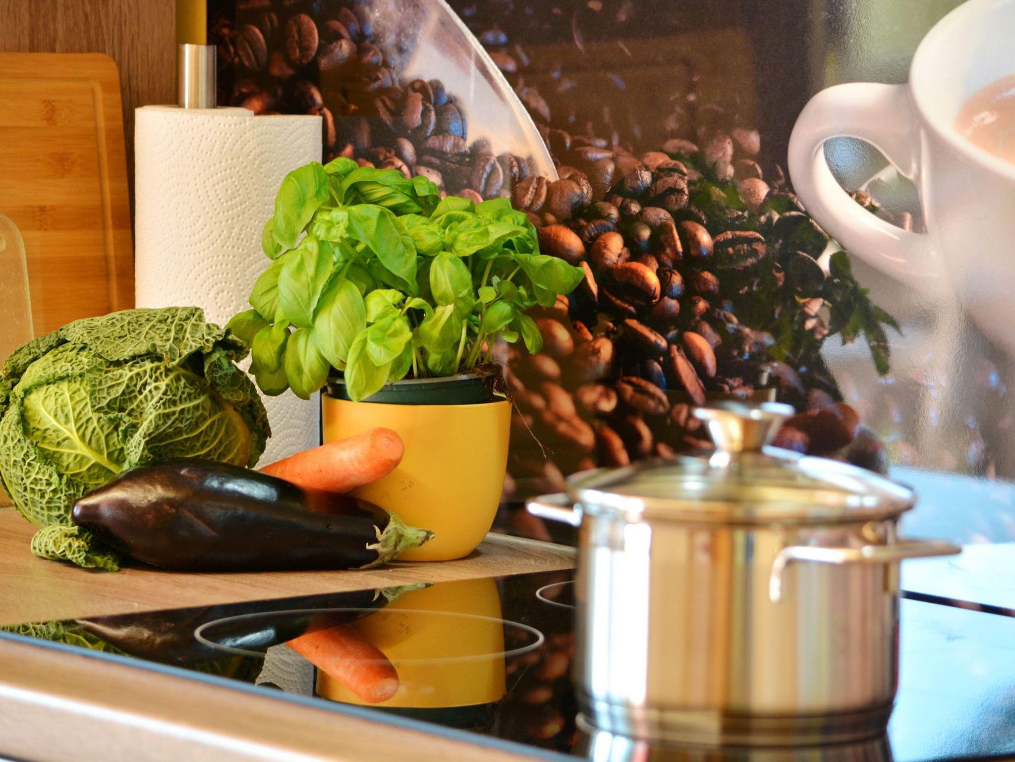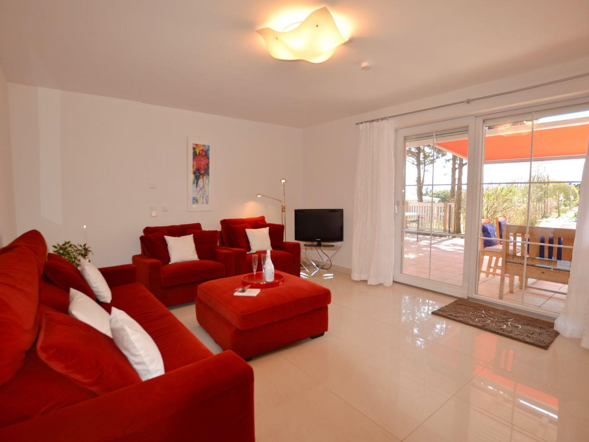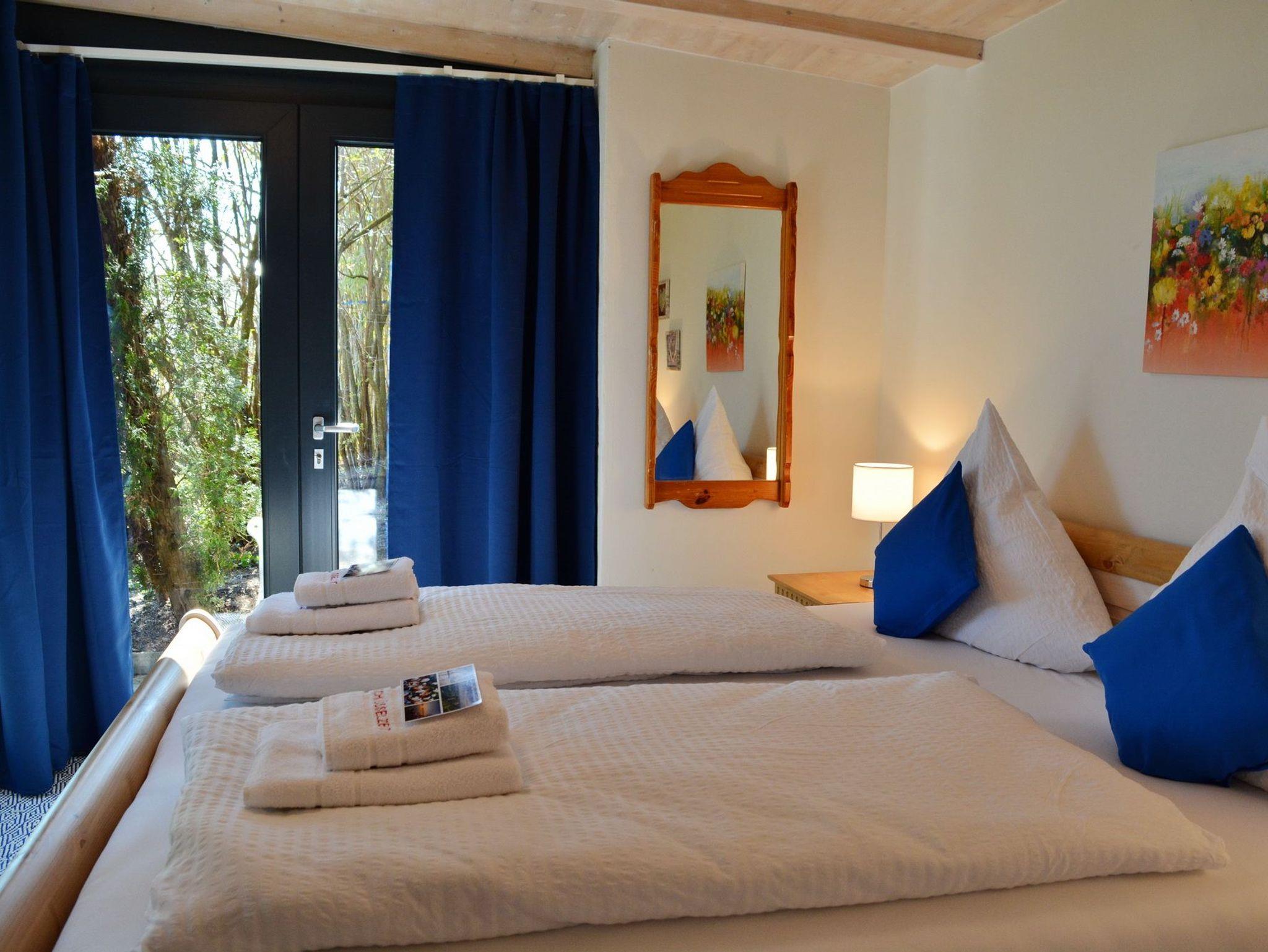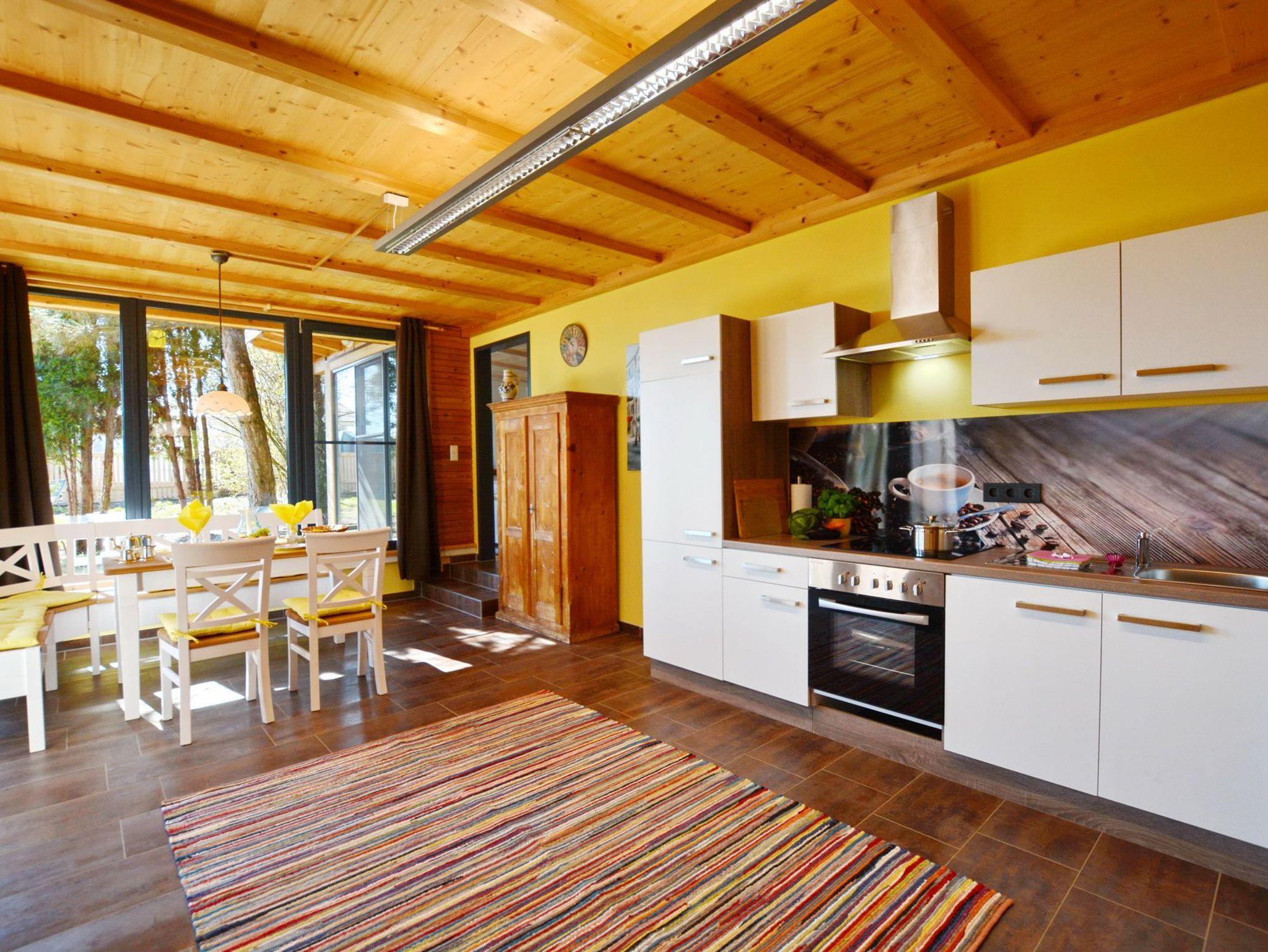 Herzstück des Anwesens ist die große Wohnküche mit Essbereich, von welcher Sie die Terrasse (Ausrichtung Süd) und den Garten betreten können. Die Küche ist mit diversen Küchengeräten (Spülmaschine, Backofen, Herd, Kaffeemaschine, Mikrowelle, Toaster, Wasserkocher, Kühl- und Gefrierschrank) ausgestattet und lädt zum Kochen ein. Das angrenzende Schlafzimmer mit Doppelbett ist über wenige Stufen zu erreichen und bietet genügend Platz für einen erholsamen Schlaf und Platz für die Unterbringung persönlicher Sachen. Viele Sitzmöglichkeiten bietet das Wohnzimmer mit Blick auf die Terrasse und den Garten. Ein Boxspring-Sofa kann als weitere Schlafmöglichkeit genutzt werden. Vervollständigt wird das Anwesen durch den Eingangsbereich und das Badezimmer, welches mit einer ebenen Dusche und WC ausgestattet ist. Das Objekt bietet zwei Fernseher.