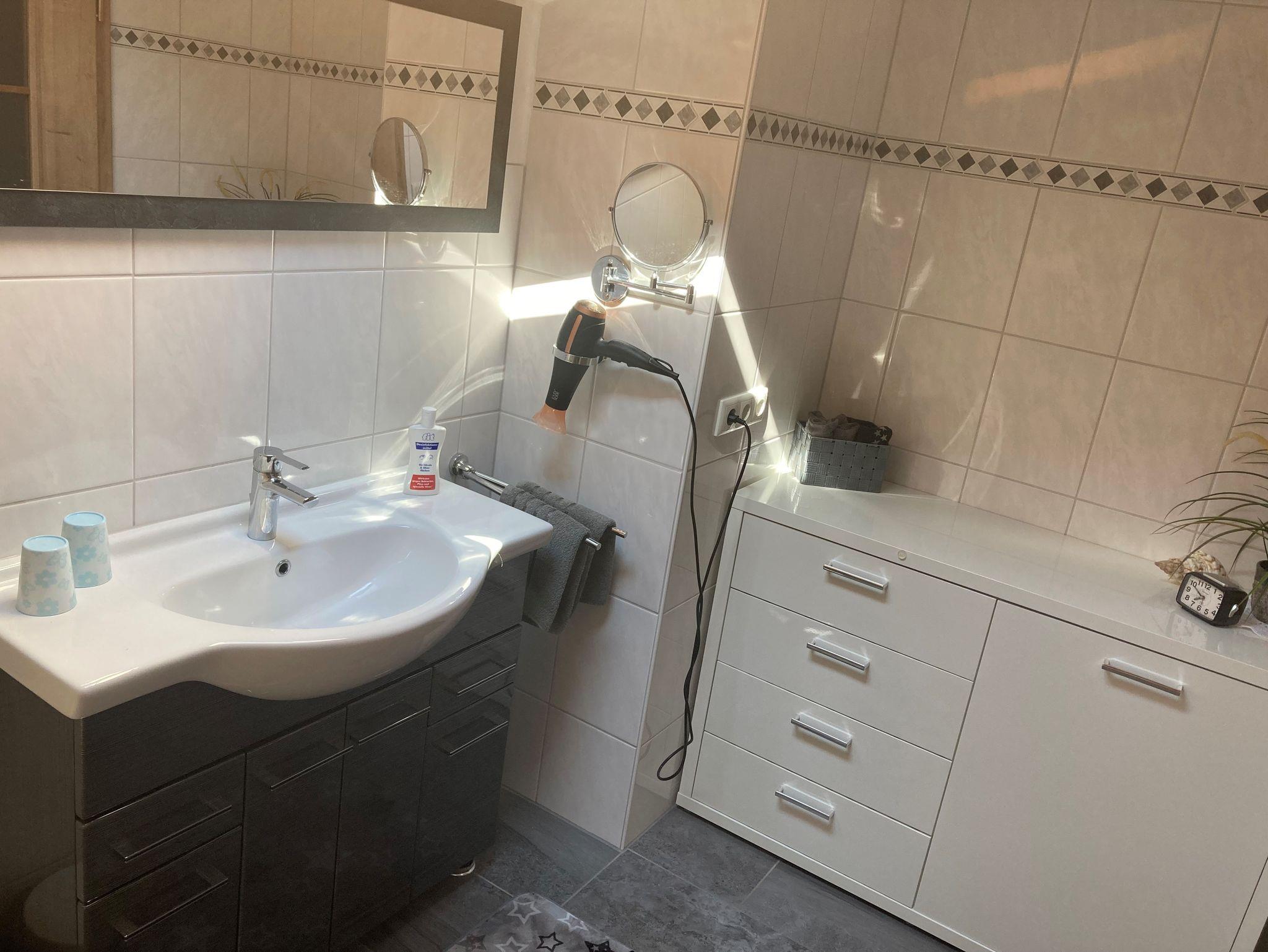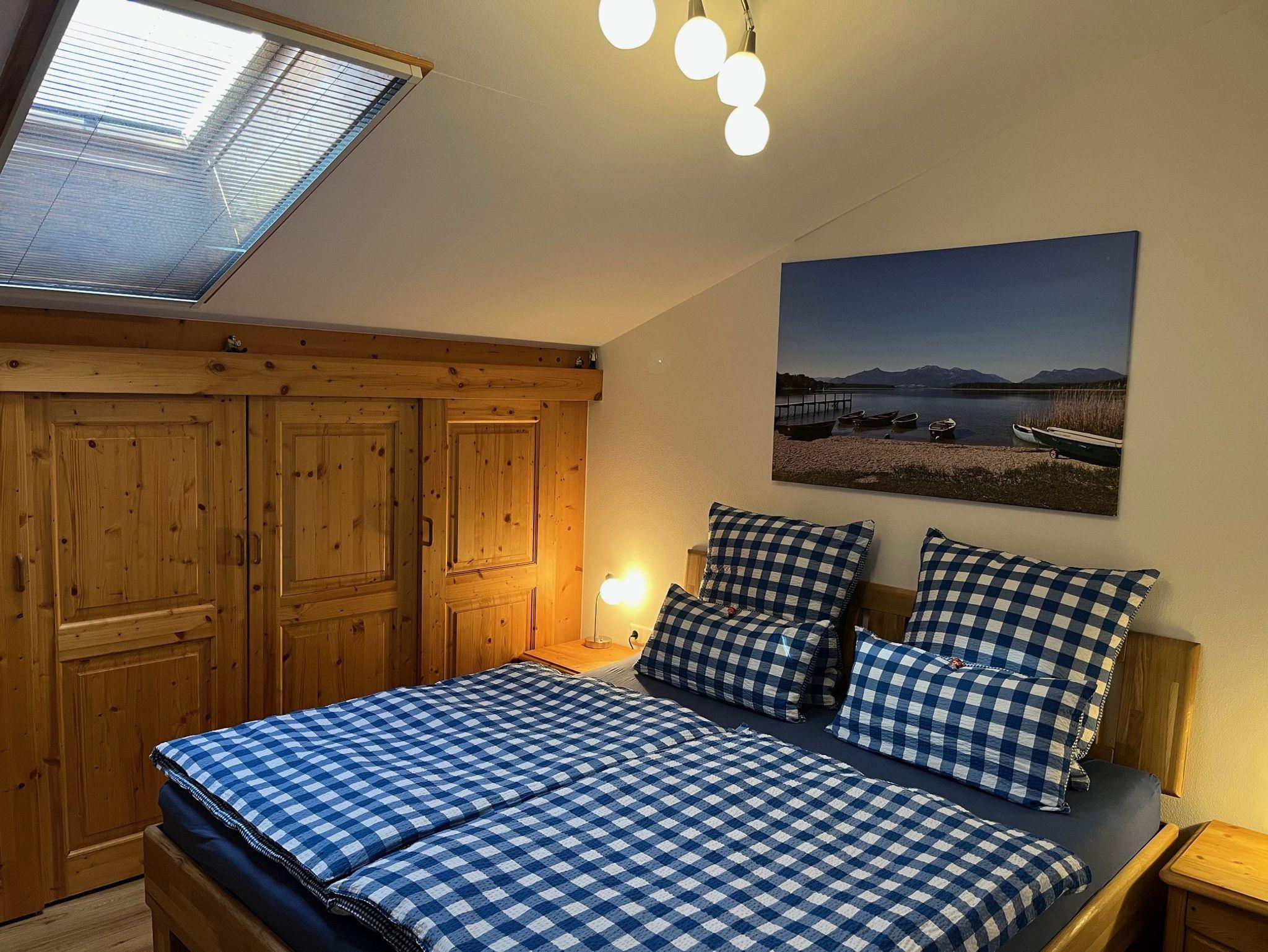 Neue, schöne, helle Ferienwohnung im modernen Landhausstil inmitten einer Naturlandschaft. Balkon mit Bergblick. Außentreppe zur Ferienwohnung. Zentrale Lage am Chiemsee (250 m) zwischen Simssee und Eggstätter Seenplatte. Separate, komplett ausgestattete Küche mit Kaffeevollautomat, sep. Schlafzimmer mit Bett in Komforthöhe, ein großer Wohn-/Schlafraum mit hochwertigem Funktionssofa ermöglicht auch getrenntes Schlafen, gemüsecke. Bad/Dusche/WC, extra WC, Safe, W-Lan, SAT-TV, eigener Pkw-Stellplatz, Fahrrad-Garage.