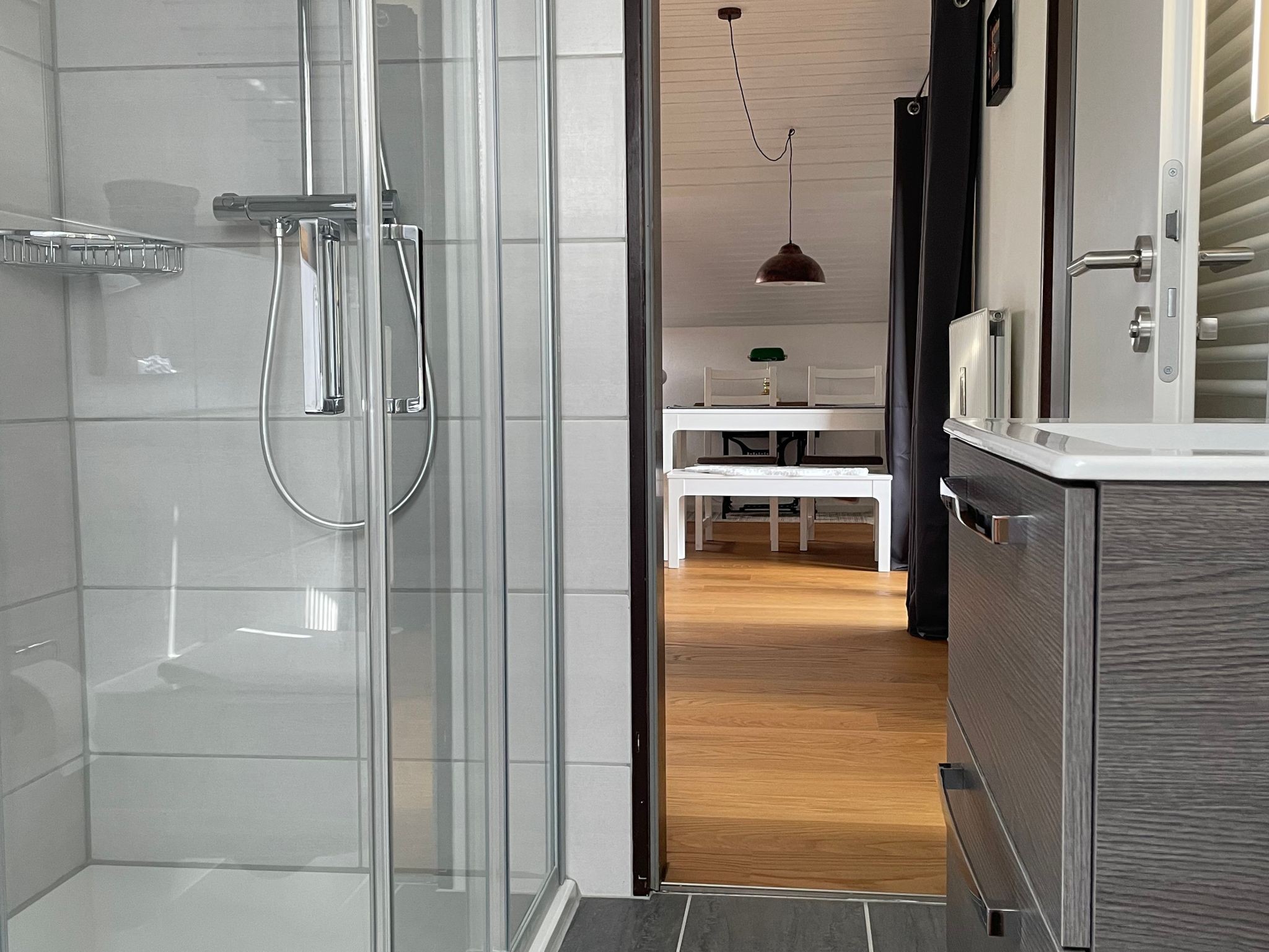 Das Apartment ist stilvoll eingerichtet und bietet modernen Komfort in einer entspannten Atmosphäre. Die Eckdaten: Apartment im DG, 65 qm, großer Balkon mit Bergblick; 1 Schlafzimmer mit Schrank und Doppelbett (180 x 200 cm); Wohnzimmer mit Schlafcouch (140 x 200 cm) und Essbereich; Küche komplett ausgestattet mit Geschirrspüler; Bad mit Dusche, WC, Fön und Waschmaschine; SAT/Smart-TV; WLAN und 1 Parkplatz kostenlos; abschließbare Fahrrad-Garage; Bettwäsche und Handtücher zur Verfügung.