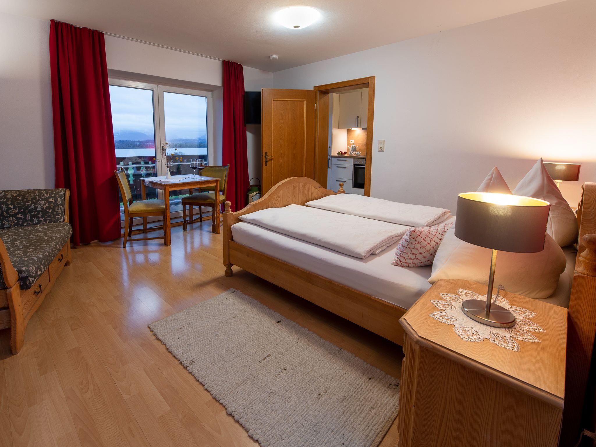 Die helle und liebevoll eingerichtete Ferienwohnung genießt einen spektakulären, unverbauten Blick auf den Chiemsee und die Chiemgauer Alpenkette. Sie bietet Platz für zwei Personen und verfügt über eine voll ausgestattete Küche, sowie zwei Balkone nach Süden, sowie Osten. Weiteres: Freies W-LAN, internetfähiger SAT-TV, Doppelbett 180 x 200 cm,Kaffeemaschine, Wasserkocher, Kofferbock, Kleiderschrank. Auf Anfrage Kinderbett und Hochstuhl.