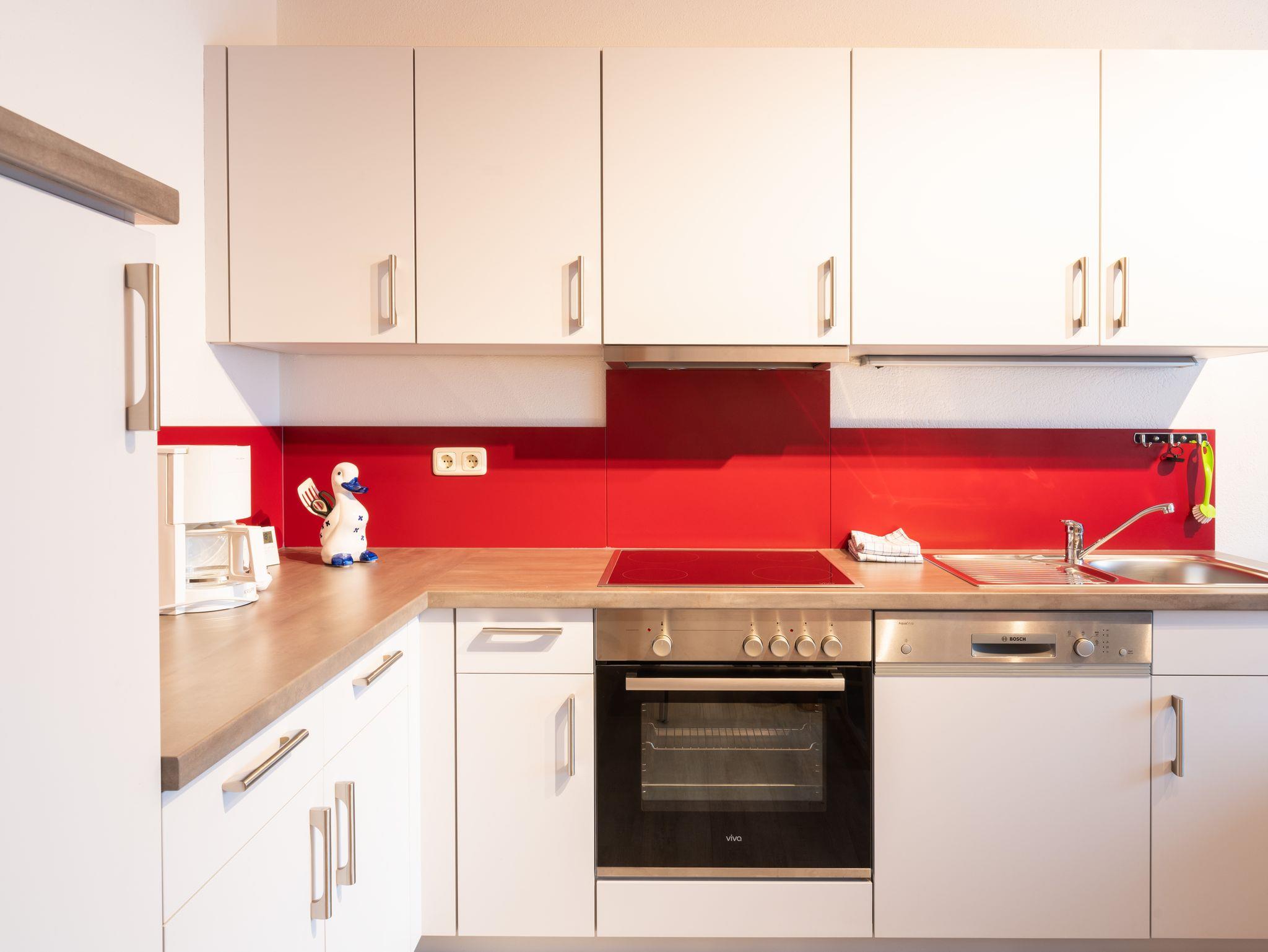 In der Hauptsaison verwöhnen wir Sie täglich mit frischen Brötchen vom Bäcker – direkt vor die Haustür geliefert. Zudem verfügen alle Ferienwohnungen über eine voll ausgestattete Küche, in der Sie Ihre Lieblingsgerichte bequem selbst zubereiten können. Zur Küchenausstattung gehören: