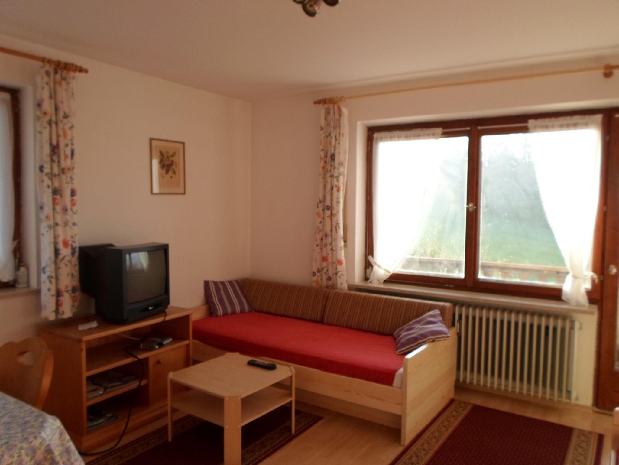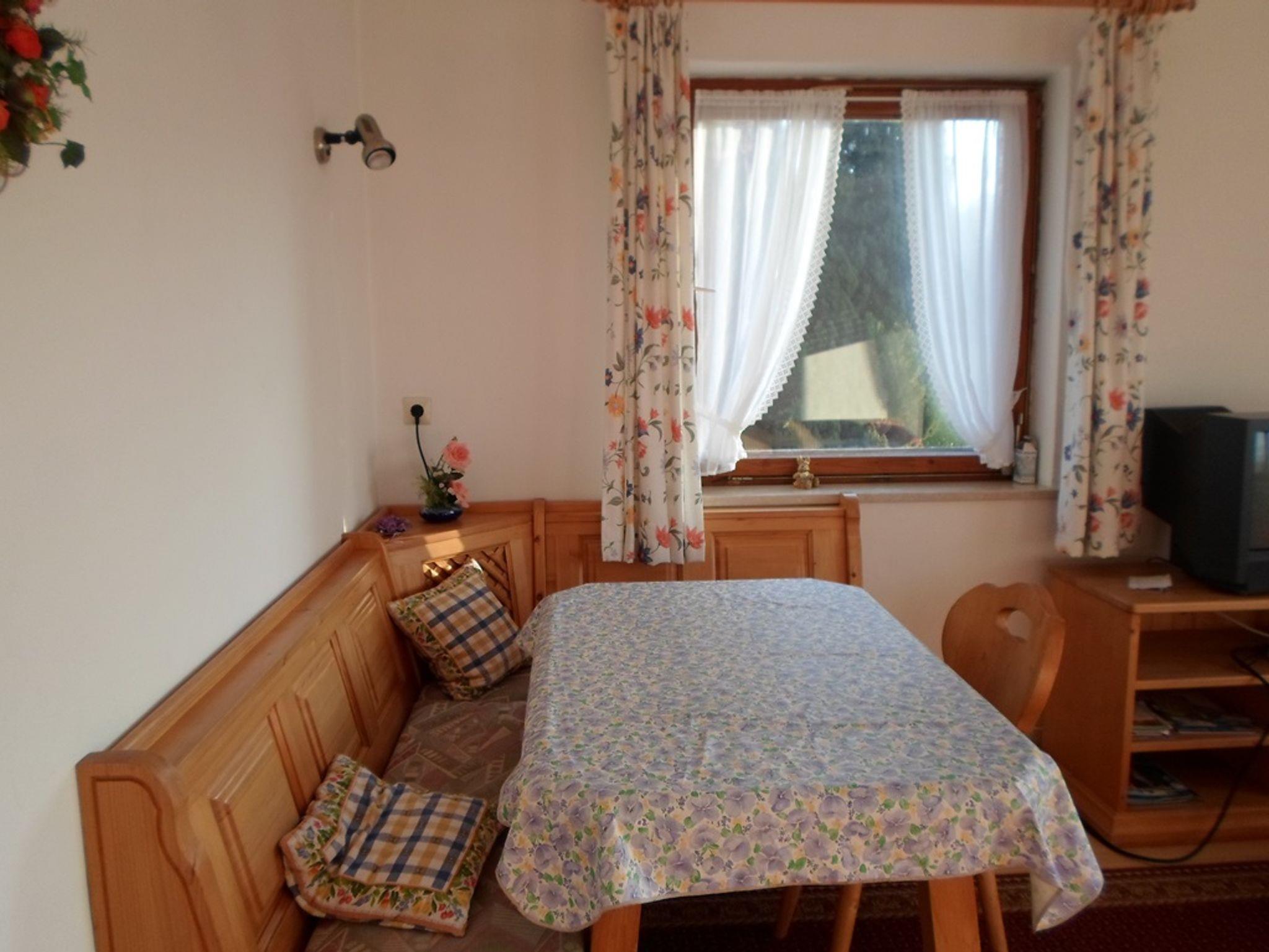 Ferienwohnung mit 1 sep. Schlafzimmmer und zusätzlicher Schlafmöglichkeit für die 3. und 4. Person im Wohnbereich. Die Wohnung befindet sich im 1. OG und ist über ca. 15 Treppenstufen erreichbar. Bad mit Badewanne, vollausgestattete Küche mit Grundausstattung an Gewürzen. Balkon mit Balkonmöbeln, Grillmöglichkeit und Sitzplatz an der Terrasse am Haus.