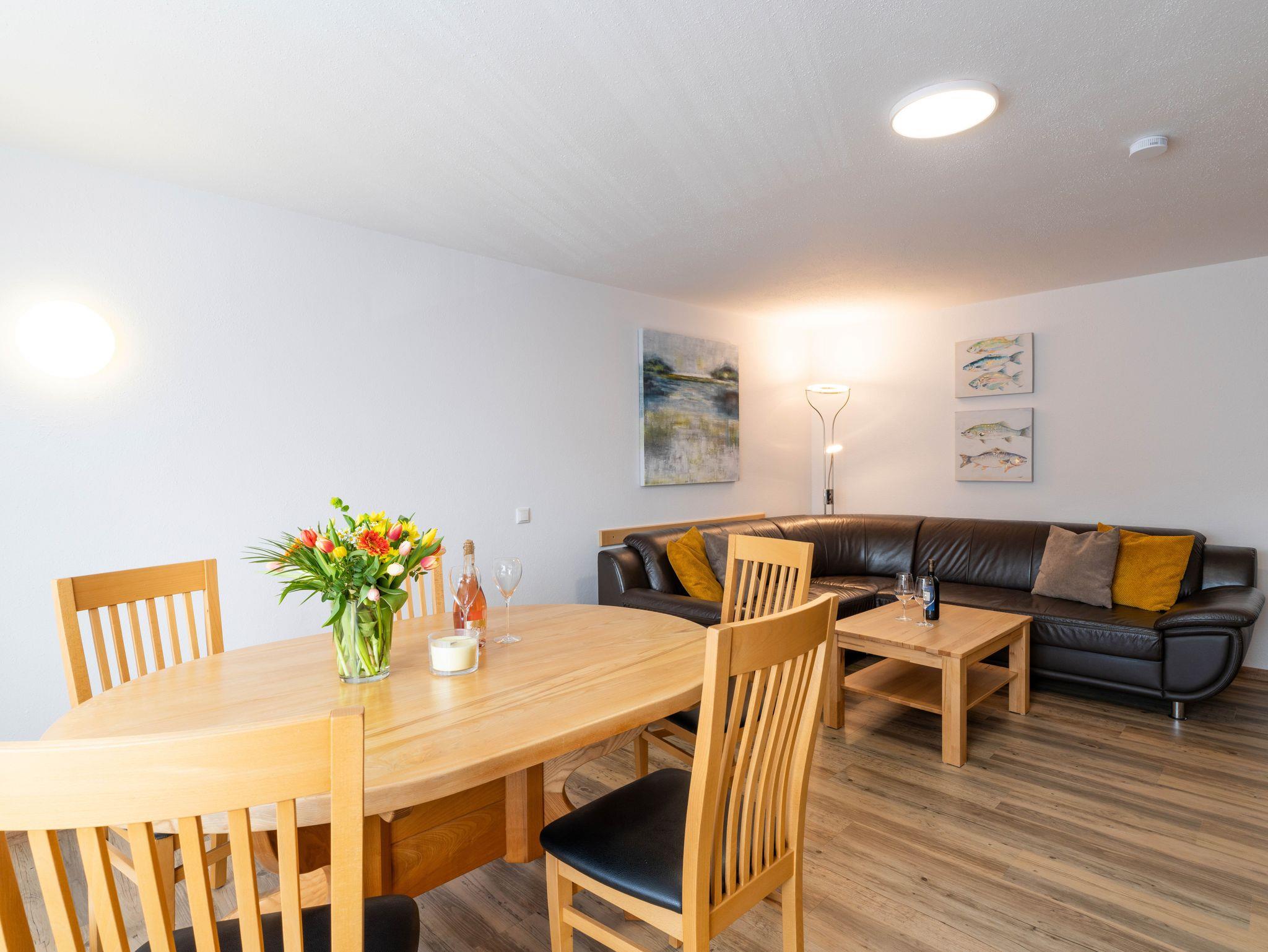 Die Wohnung überzeugt mit einem gemütlichen Wohnambiente, bestehend aus einem separaten Schlafzimmer, einem Kinderzimmer mit 3 Betten, einem modernen Bad sowie einem großzügigen Wohnbereich mit voll ausgestatteter Küche. Ob ein ausgedehntes Frühstück oder ein selbst gekochtes Abendessen – in der modernen Küche finden Sie alles, was Sie für die Zubereitung Ihrer Lieblingsgerichte benötigen.