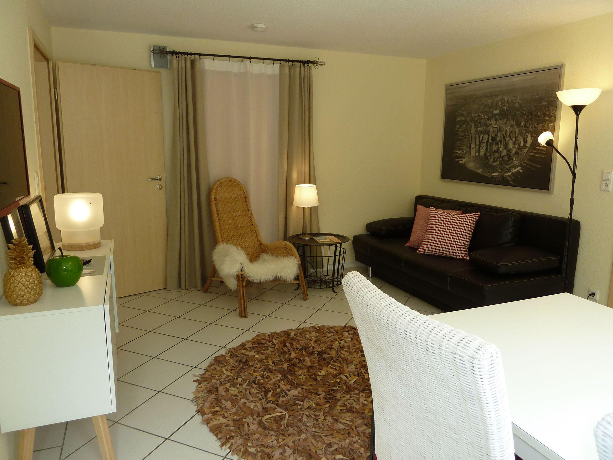 Ein Wohn-Esszimmer, 2 Schlafzimmer, Küche, Badezimmer und große, private Terrasse warten schon auf Sie. Mit separatem Eingang, kostenlosem PKW-Stellplatz am Haus und Anreise ab 15,30 Uhr jederzeit möglich, fängt Ihr Urlaub gut an.