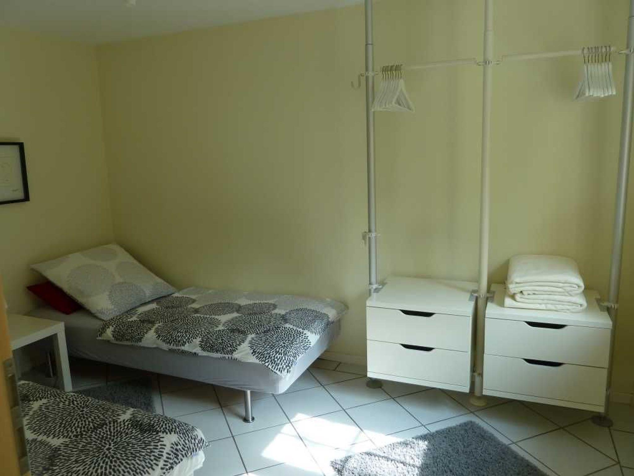 • Doppelbett (1,80x2,00), zwei Einzelbetten 90x200, Schlafcouch (160x200), Schränke, Betten bezogen, Decken vorhanden.