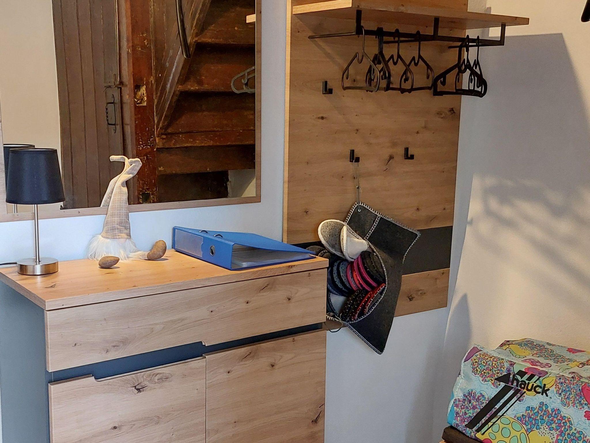 Über originalgetreue Holztreppen erreicht man auf 4 Etagen 2 Bäder, ein Spiel- und Leseraum und ein Wohn-/Esszimmer. Im Spiel- und Lesezimmer steht den Gästen eine Auswahl an Büchern, Informationsmaterial und Gesellschaftsspiele zur Verfügung. Die moderne und individuelle Einrichtung schafft eine gemütliche Wohlfühlatmosphäre. Niedrige Decken, schiefe Wände und Fußböden und steile Treppen machen den einmaligen Charakter des Eifelhauses aus.
