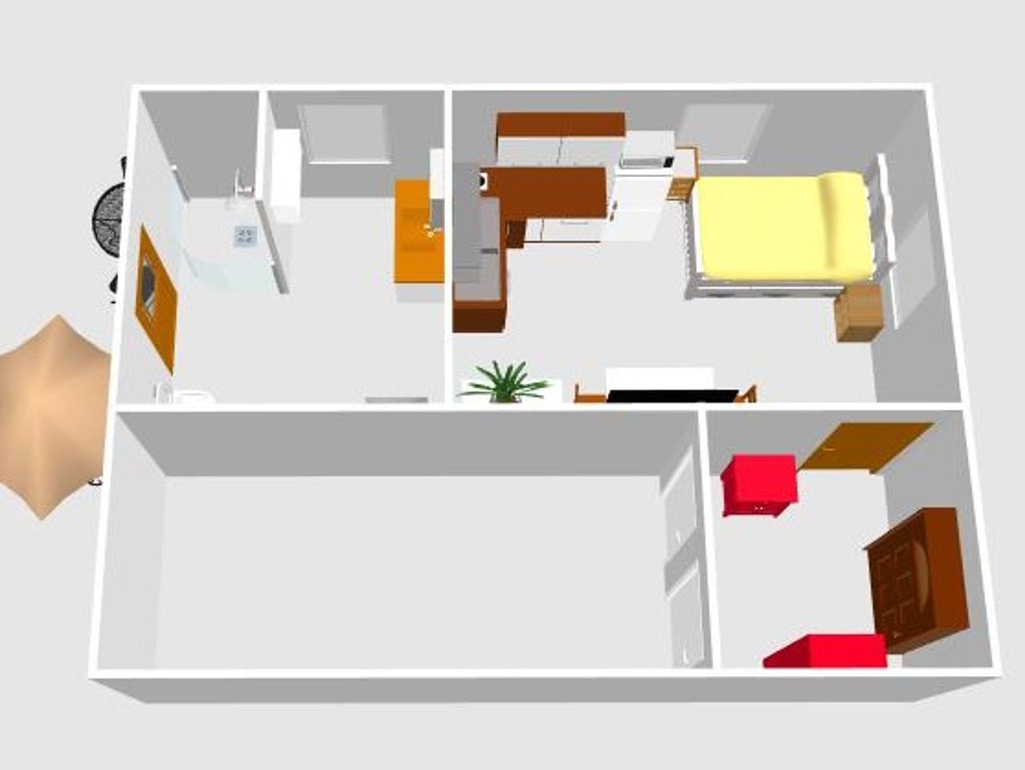 Frisch, einladend und flexibel! Im Erdgeschoss erwartet Sie unser kleines Apartment „Waldwinkel“ – perfekt für Singles, Paare, Eltern mit Kind, Geschäftsreisende oder Monteure. Das stilvoll gestaltete Zimmer bietet ein bequemes Bett (1,40 m), eine voll ausgestattete Küchenzeile und einen gemütlichen Essplatz.