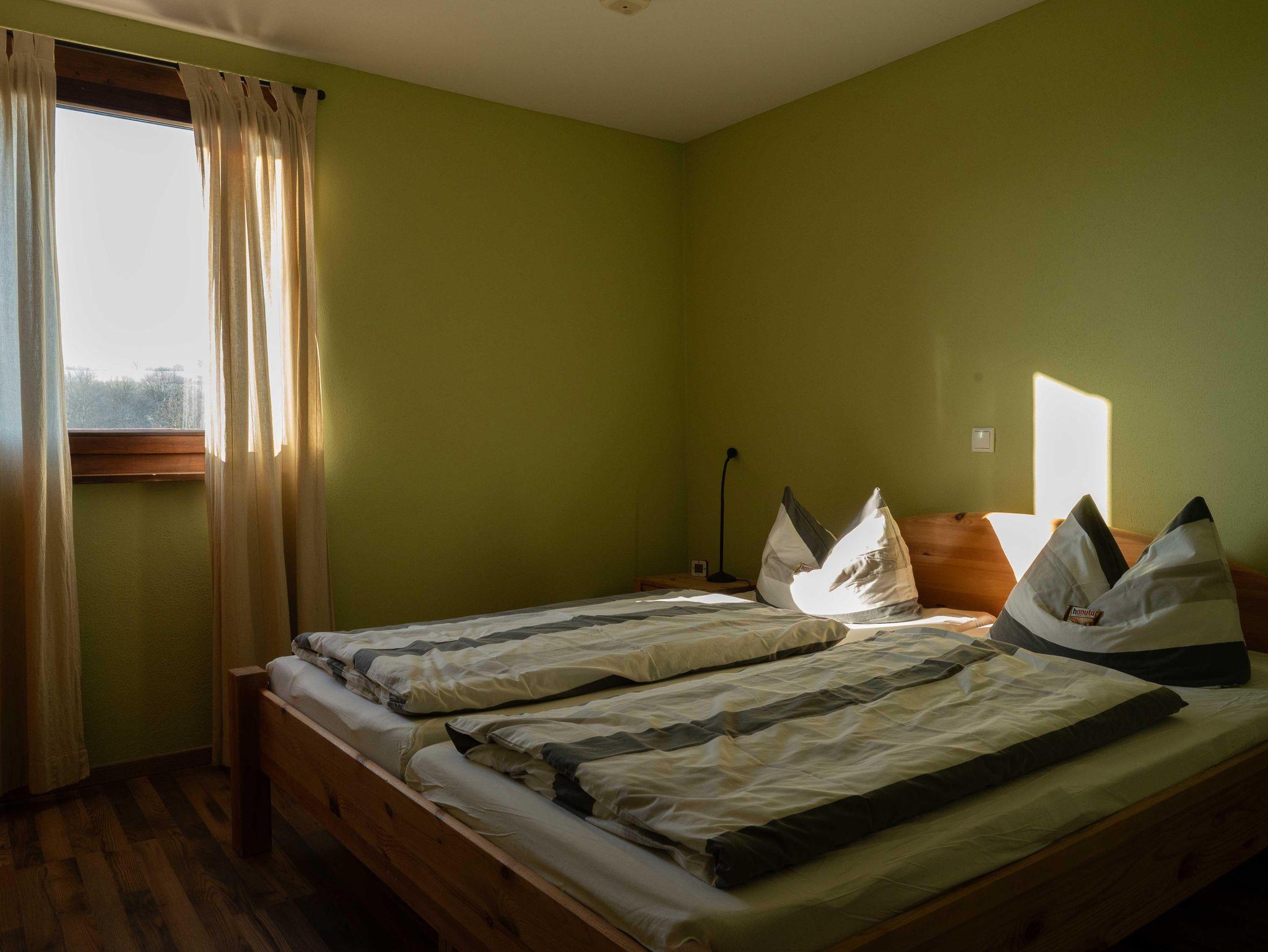 Die moderne Ferienwohnung mit 60 m² verfügt über 4 Zimmer, davon 1 Schlafzimmer, die Betten sind bei Ihrer Anreise bezogen. Im Wohnzimmer befindet sich außerdem eine Schlafcouch. Die Küche ist komplett ausgestattet. Im Badezimmer liegen Handtücher für Sie bereit. Eine Waschmaschine kann genutzt werden. Das Badezimmer ist sowohl mit einer Badewanne als auch mit einer ebenerdigen, behindertengerechten Dusche ausgestattet.