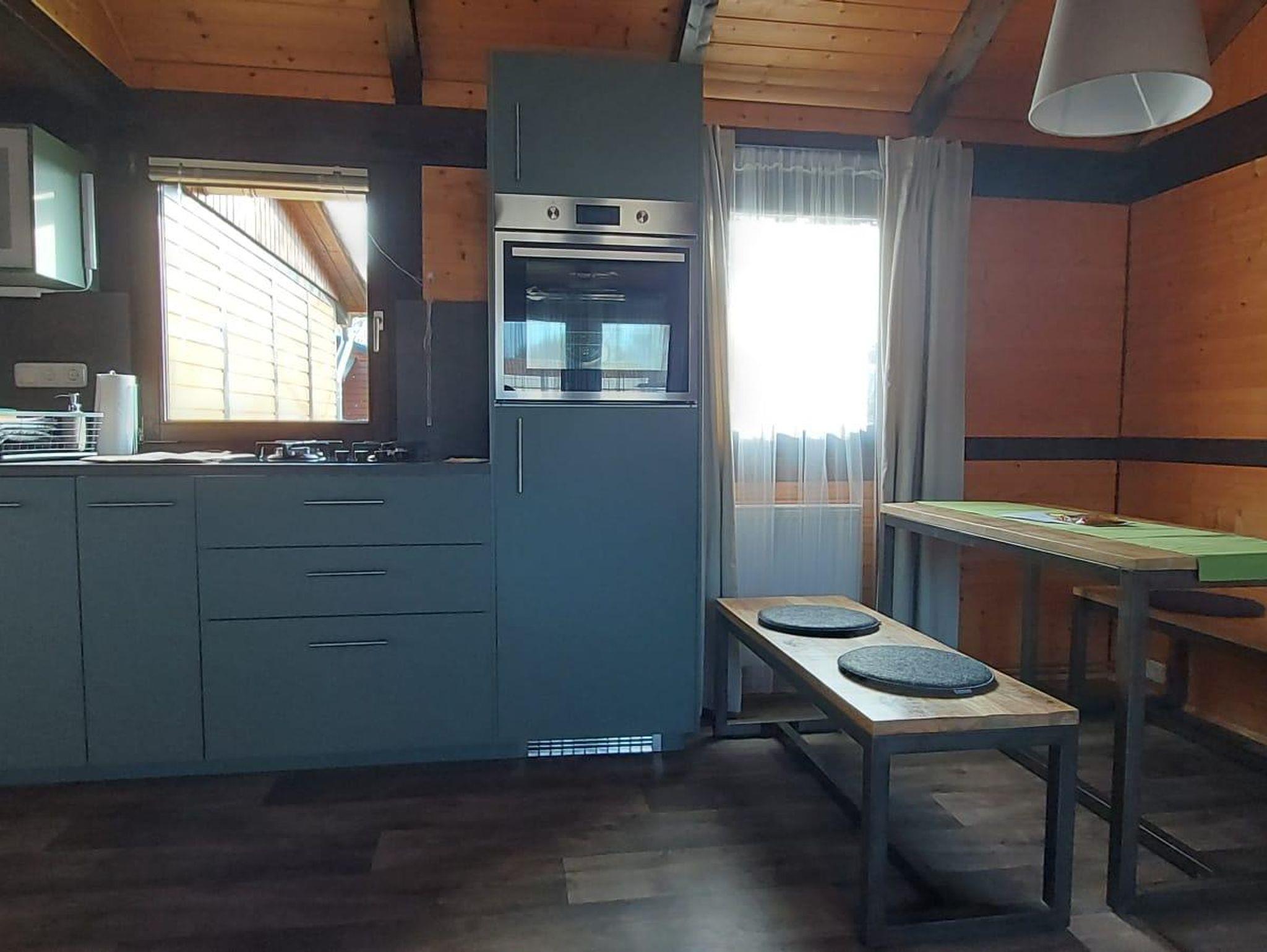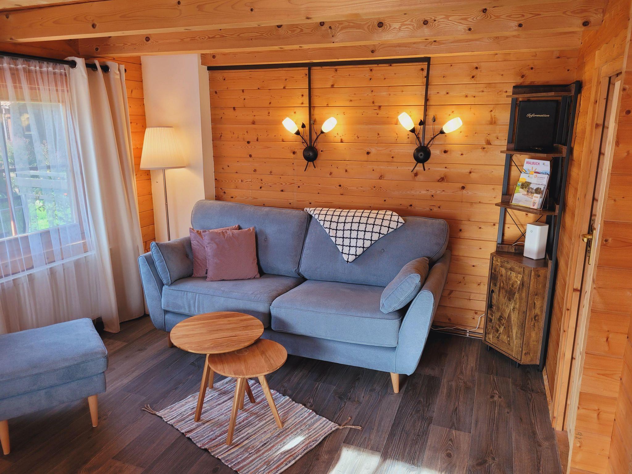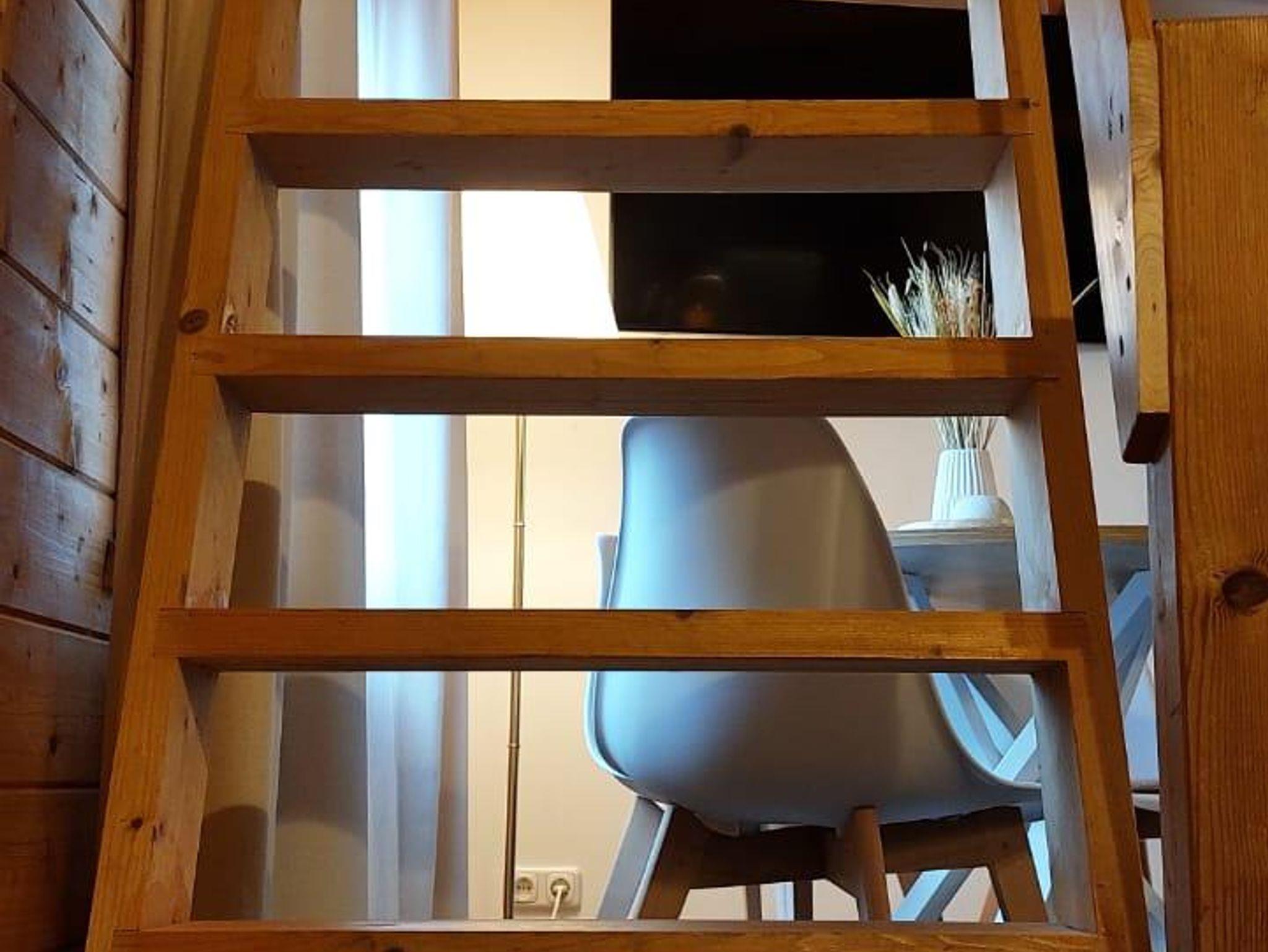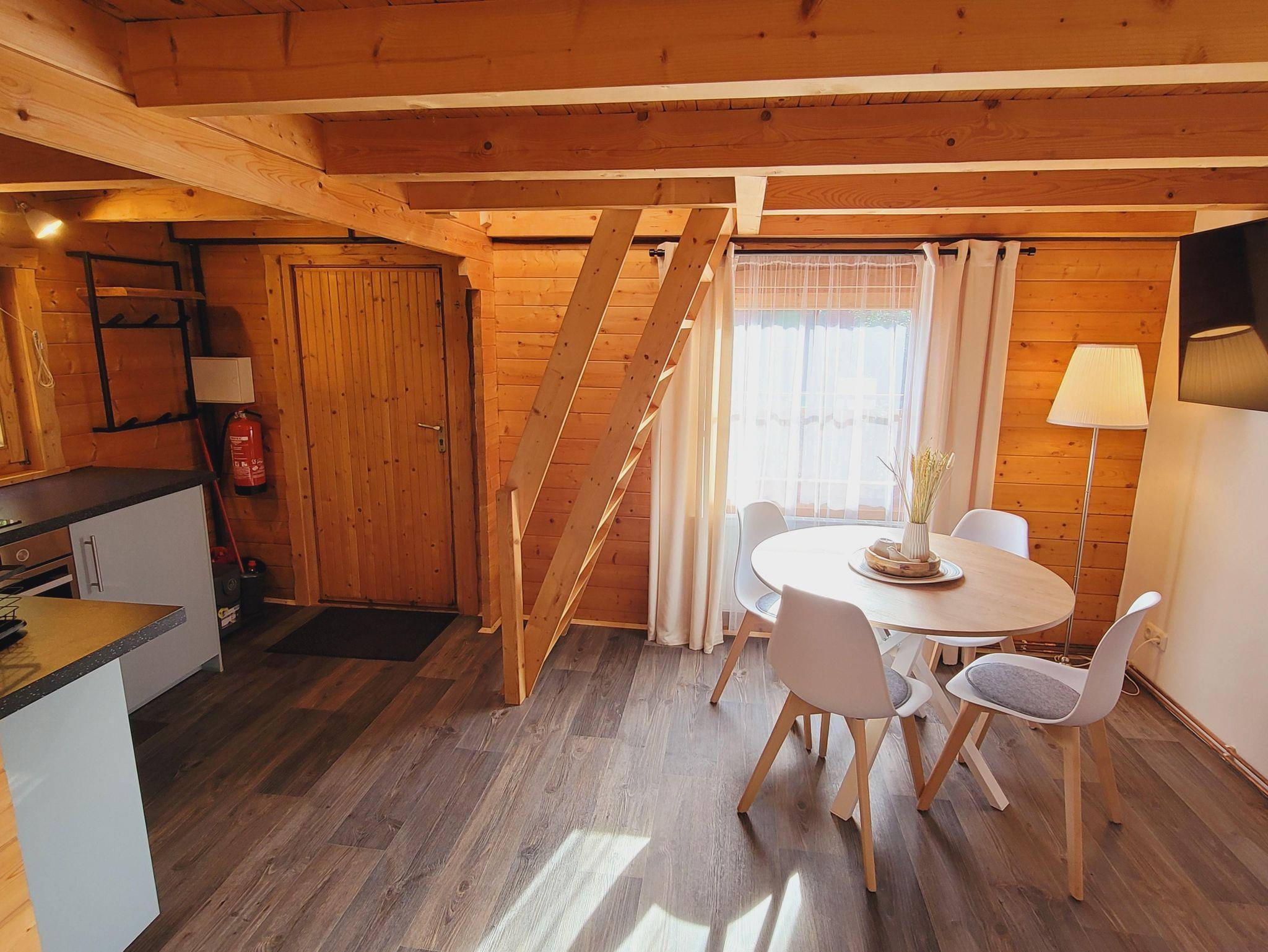 In unserer Sitzecke finden Sie ein gemütliches Sofa mit Schlaffunktion (140cm x 180cm). Die gemütliche Essecke bietet Platz für 4 Personen.Unsere Küche ist ausgestattet mit einem Induktionskochfeld (2 Felder), Backofen, Spüle, Kühlschrank, Toaster, Wasserkocher, Filterkaffeemaschine, Geschirr, Gläsern, Besteck, div. Küchenutensilien und vielem mehr. Damit Sie nicht jede Kleinigkeit mitbringen müssen, stelle ich Ihnen Geschirrhandtücher, Spüllappen, Zucker, Öl, Salz und Pfeffer, Kaffeefilter gerne zur Verfügung.Zum Schlafen geht es in die erste Etage.Geschlafen wird in einem Doppelbett (180cm x 200cm, Lattenrost und hochwertige Matratze). Zusätzlich befindet sich oben Stauraum für Ihre Kleidung. Nach oben gelangen Sie über eine Holztreppe.Unser Badezimmer verfügt über ein WC, Dusche, Waschbecken mit beleuchtetem Spiegel, Fön und Handseife.Auf der überdachten Terrasse finden Sie neben Sitzmöglichkeiten einen Elektrogrill, der zum Kochen im Freien einlädt.