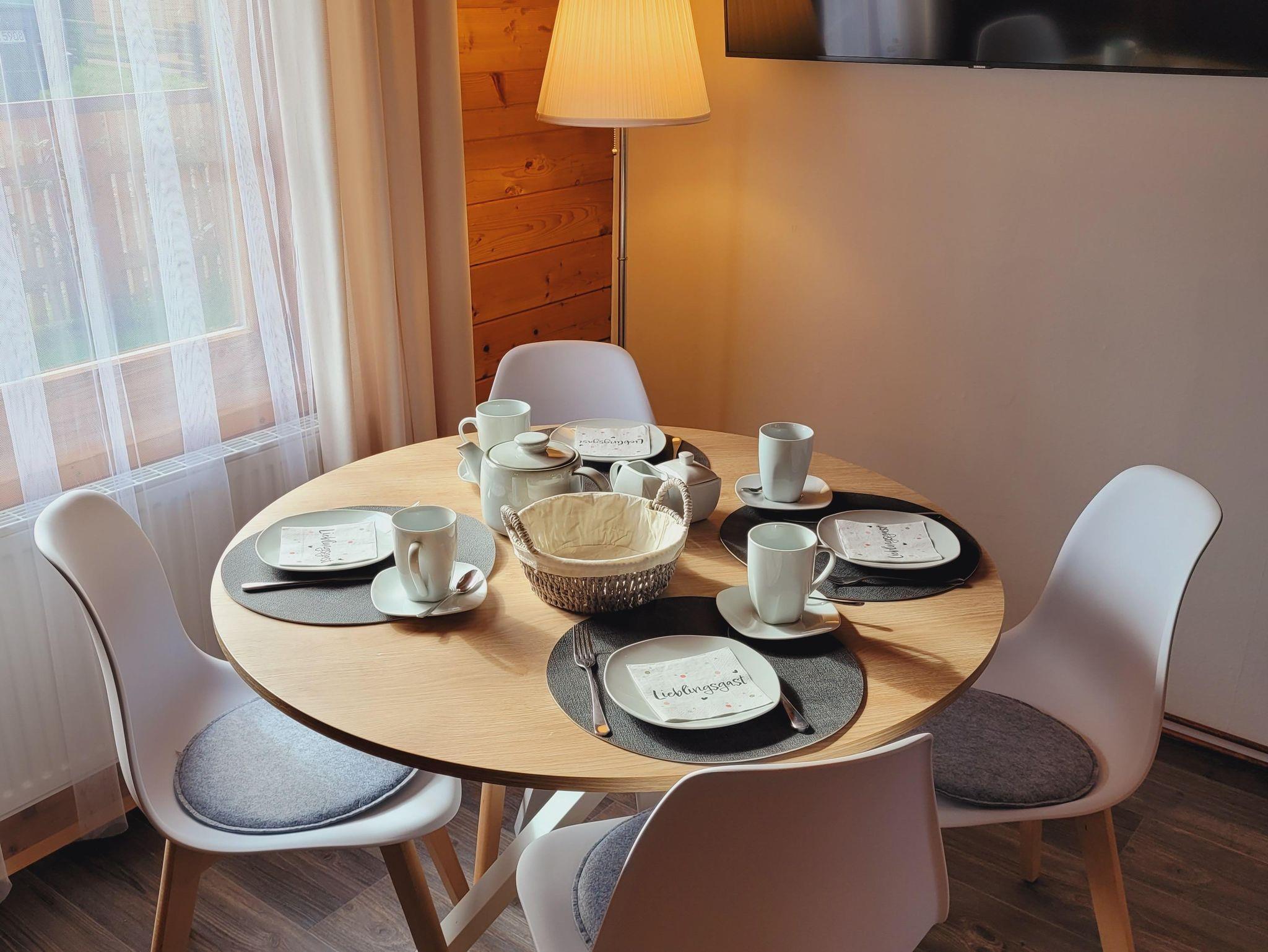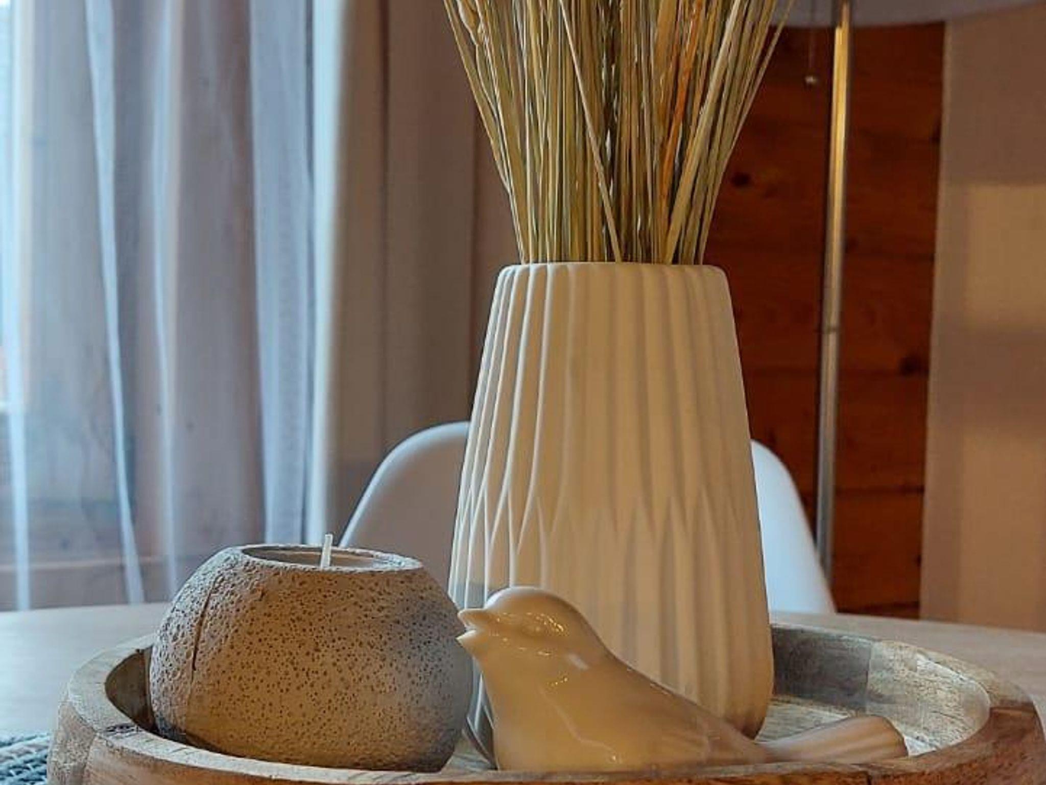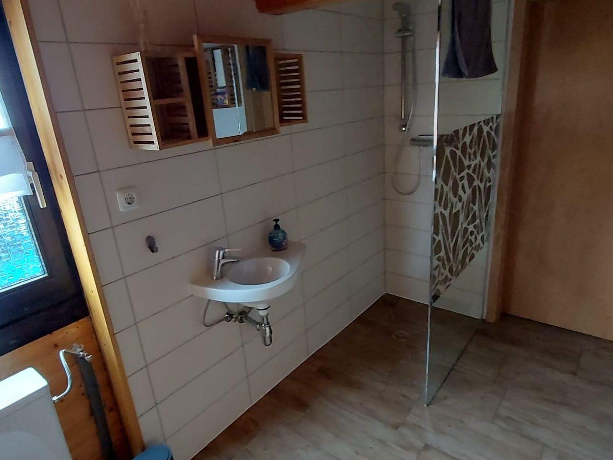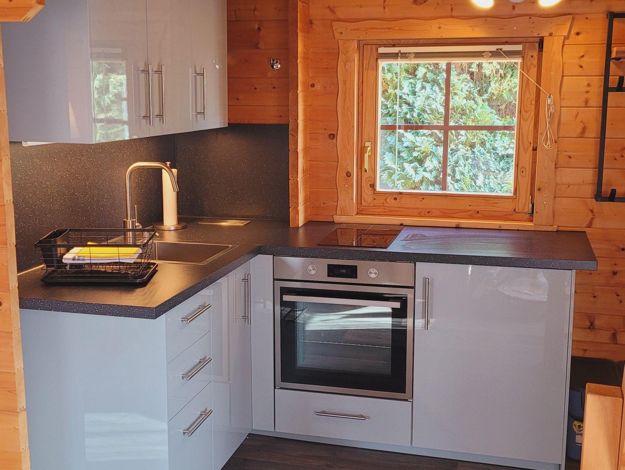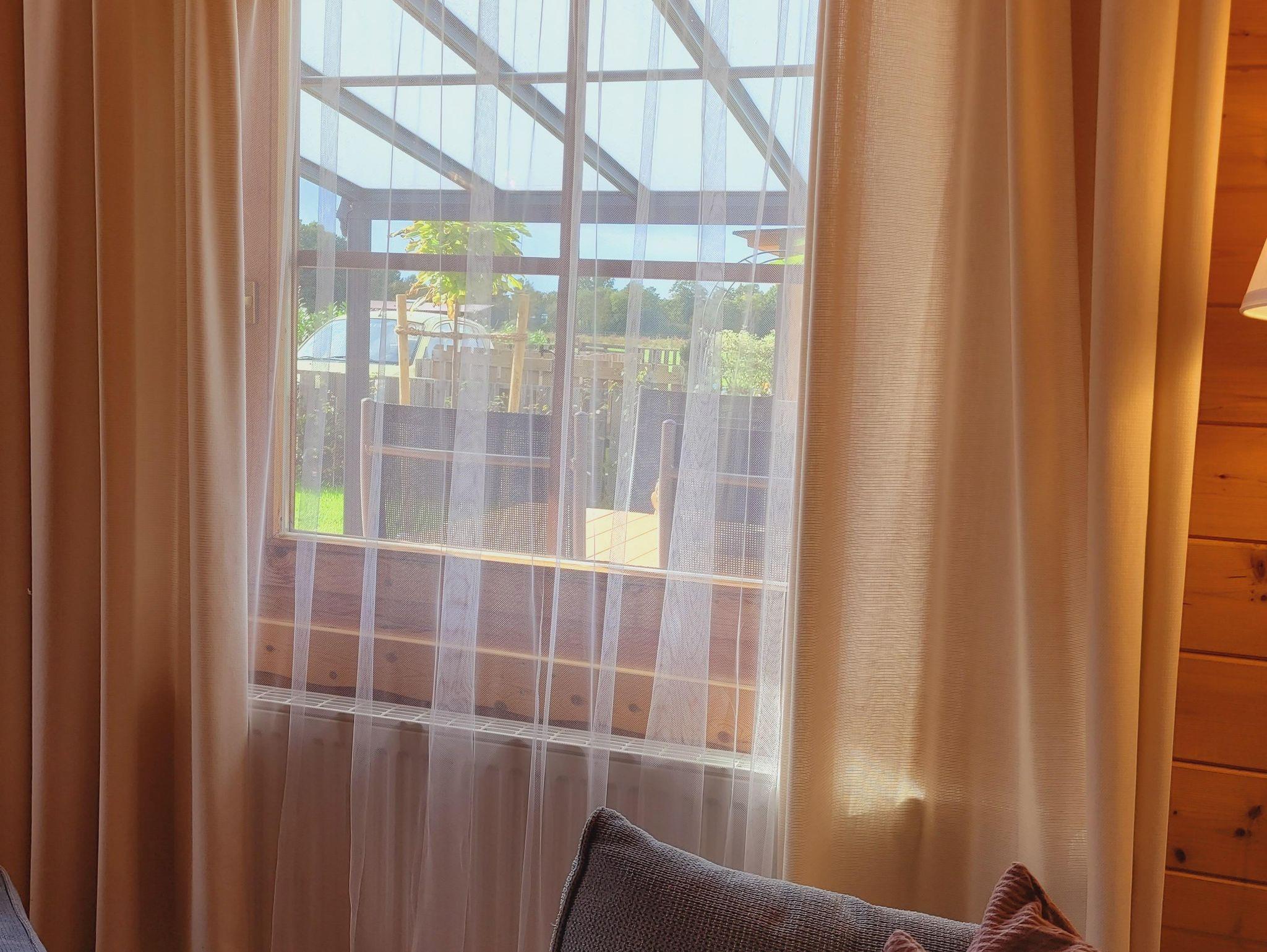 In unserer Sitzecke finden Sie ein gemütliches Sofa mit Schlaffunktion (140cm x 180cm). Die gemütliche Essecke bietet Platz für 4 Personen.Unsere Küche ist ausgestattet mit einem Induktionskochfeld (2 Felder), Backofen, Spüle, Kühlschrank, Toaster, Wasserkocher, Filterkaffeemaschine, Geschirr, Gläsern, Besteck, div. Küchenutensilien und vielem mehr. Damit Sie nicht jede Kleinigkeit mitbringen müssen, stelle ich Ihnen Geschirrhandtücher, Spüllappen, Zucker, Öl, Salz und Pfeffer, Kaffeefilter gerne zur Verfügung.Zum Schlafen geht es in die erste Etage.Geschlafen wird in einem Doppelbett (180cm x 200cm, Lattenrost und hochwertige Matratze). Zusätzlich befindet sich oben Stauraum für Ihre Kleidung. Nach oben gelangen Sie über eine Holztreppe.Unser Badezimmer verfügt über ein WC, Dusche, Waschbecken mit beleuchtetem Spiegel, Fön und Handseife.Auf der überdachten Terrasse finden Sie neben Sitzmöglichkeiten einen Elektrogrill, der zum Kochen im Freien einlädt.