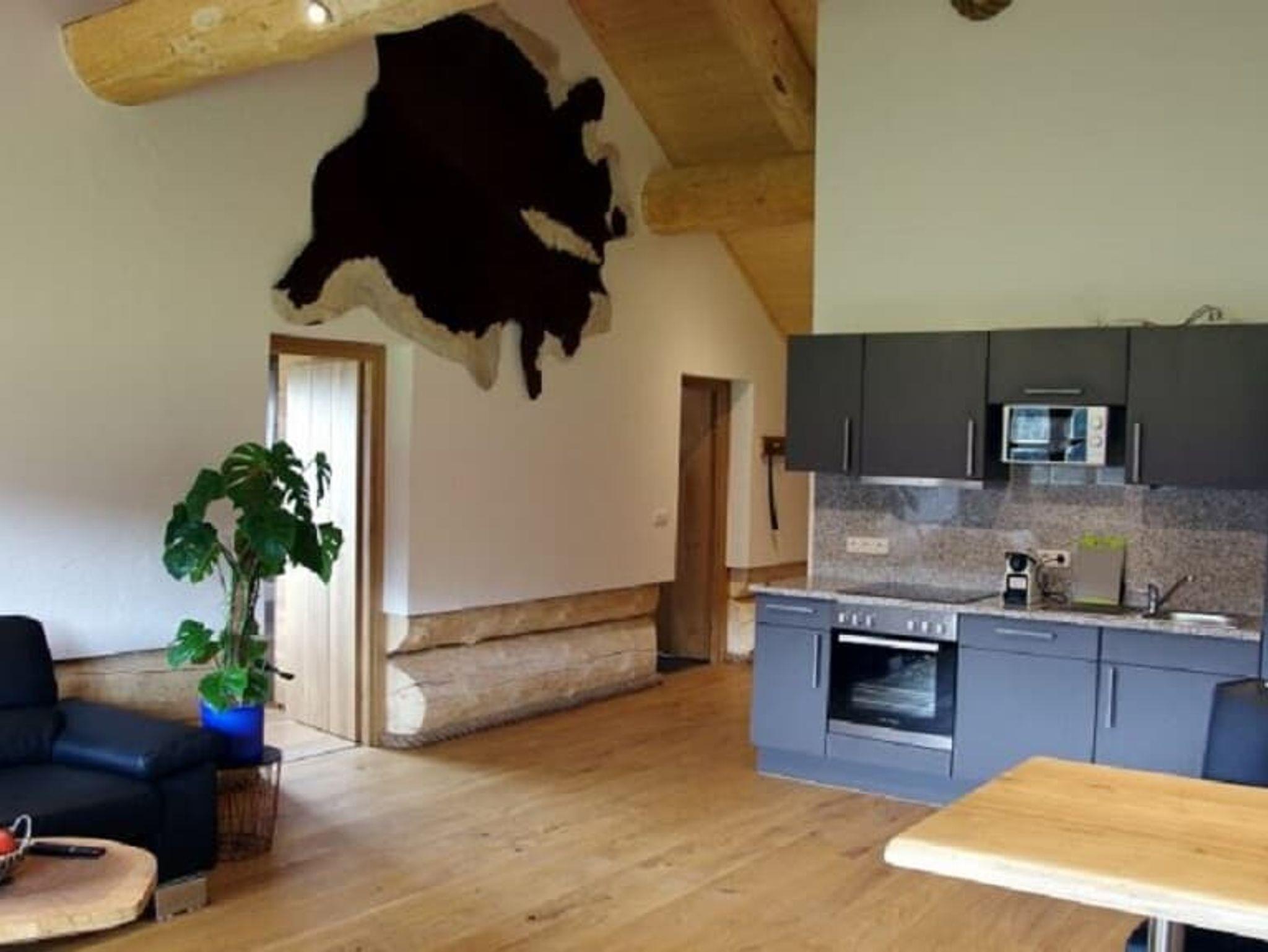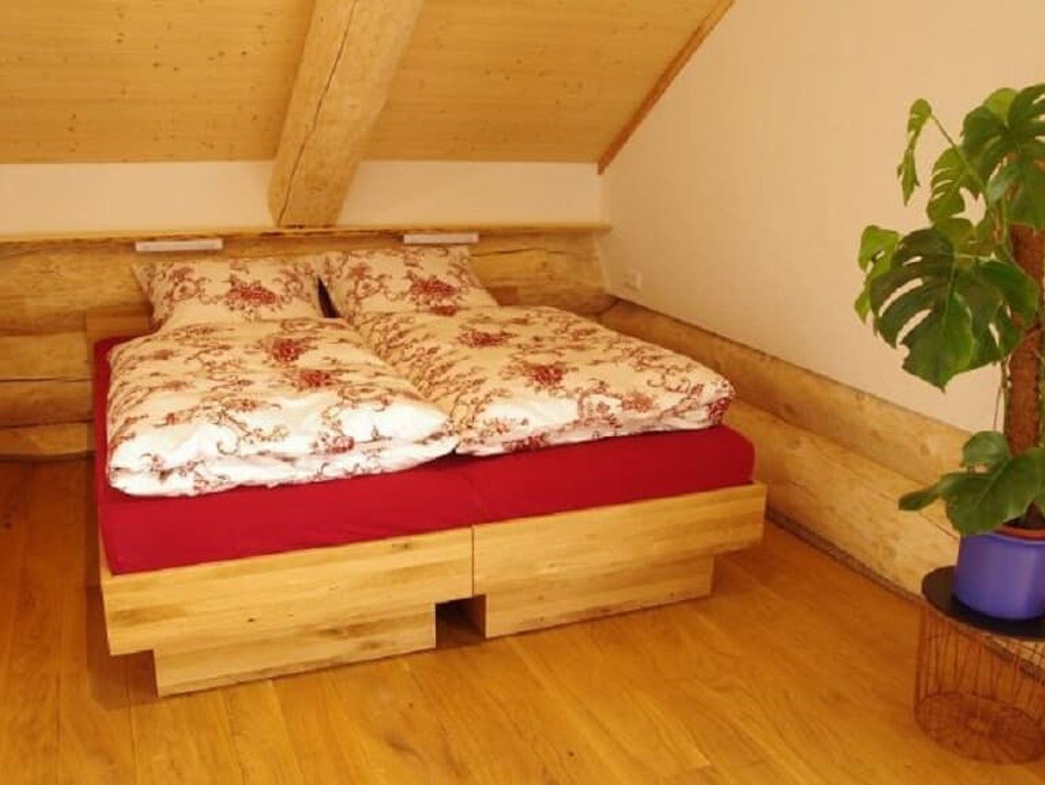 Die Ferienwohnung Holzwurm im Dachgeschoss für 2 Personen, verfügt über eine hochwertige Ausstattung verknüpft mit bodenständigem und modernem. Großzügige komplett eingerichtete Wohnküche, 1 Schlafraum, Bad mit Whirlpoolbadewanne, Dusche und einem großzügigen Balkon. Die Wohnung hat ca. 70 m². Sat-TV in jedem Zimmer, sowie W-Lan im ganzen Haus.