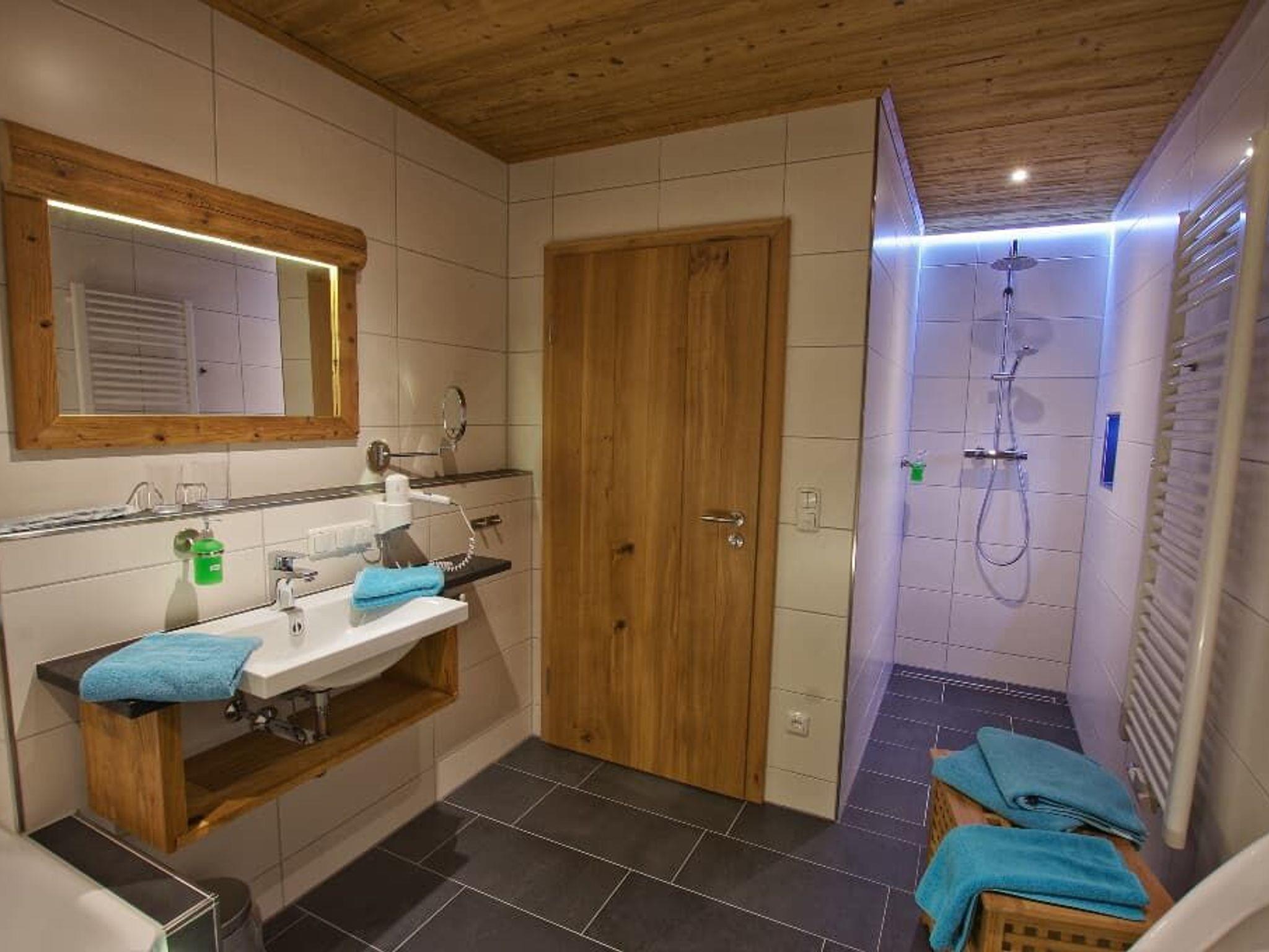 Die Ferienwohnung Holzwurzel im Erdgeschoss für 4 Personen, verfügt über eine hochwertige Ausstattung verknüpft mit bodenständigem und modernem. Großzügige komplett eingerichtete Wohnküche, 2 Schlafräume (2 Doppelbetten eins auf der Galerie), Bad mit Whirlpoolbadewanne, Dusche, 2 getrennten WC´s, und einem großzügigen Balkon. Die Wohnung hat ca. 120 m². Sat-TV in jedem Zimmer, sowie W-Lan im ganzen Haus.
