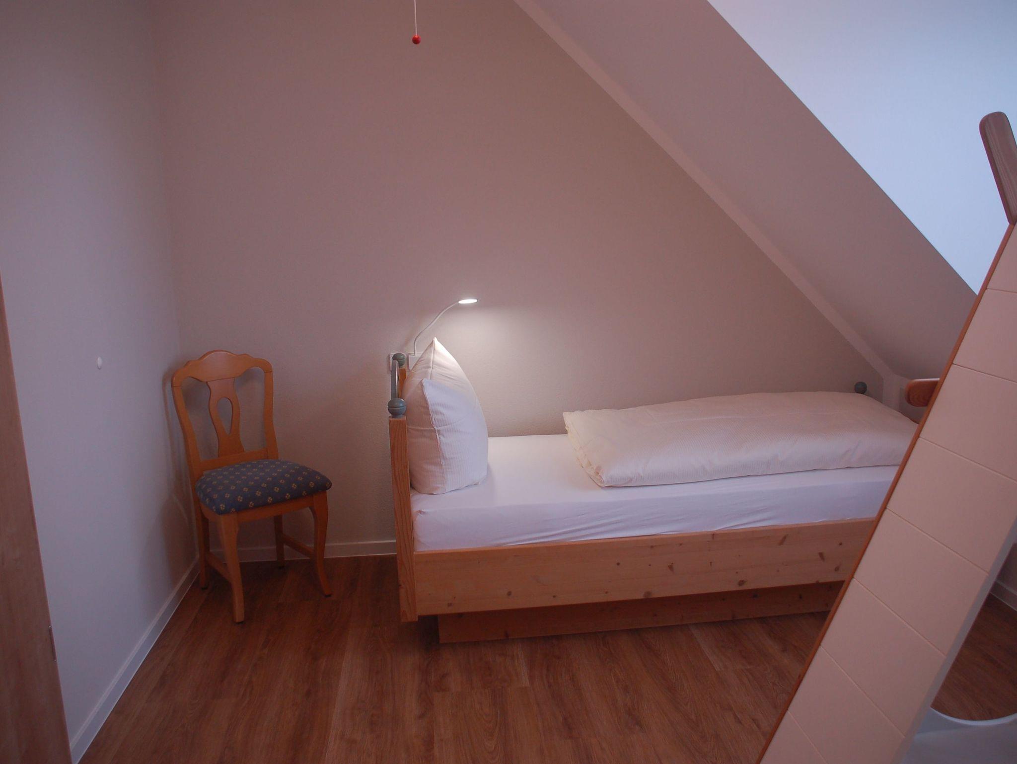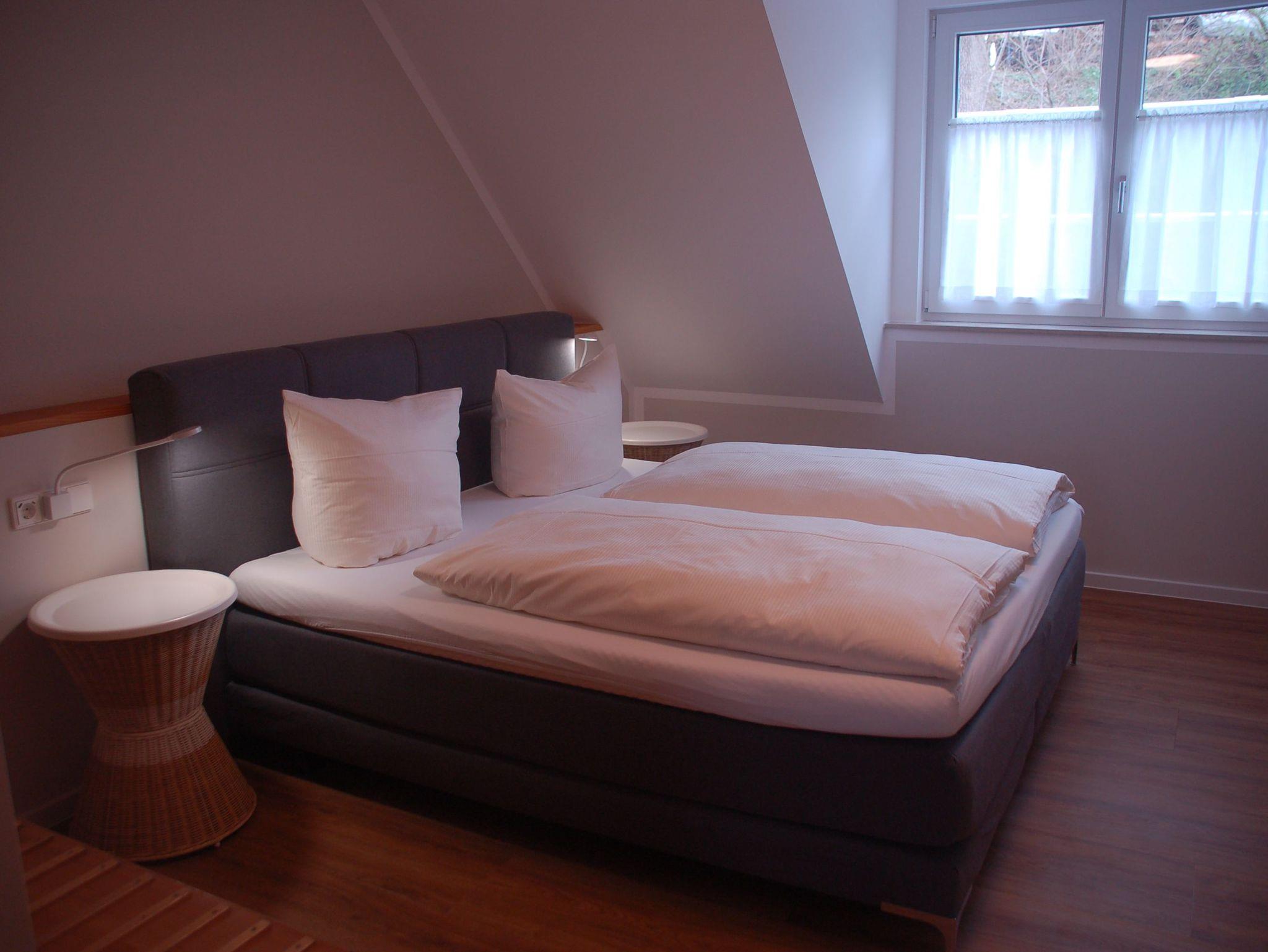 Die Mühlen-Maisonette Wohnung 3 kann über eine Verbindungstür mit der Mühlen-Maisonette Wohnung 4 verbunden werden. Im Elternschlafzimmer erwartet unsere Gäste eine 180 cm breites Boxspringbett sowie ein 140 cm langes Kinder-Gitterbett.
