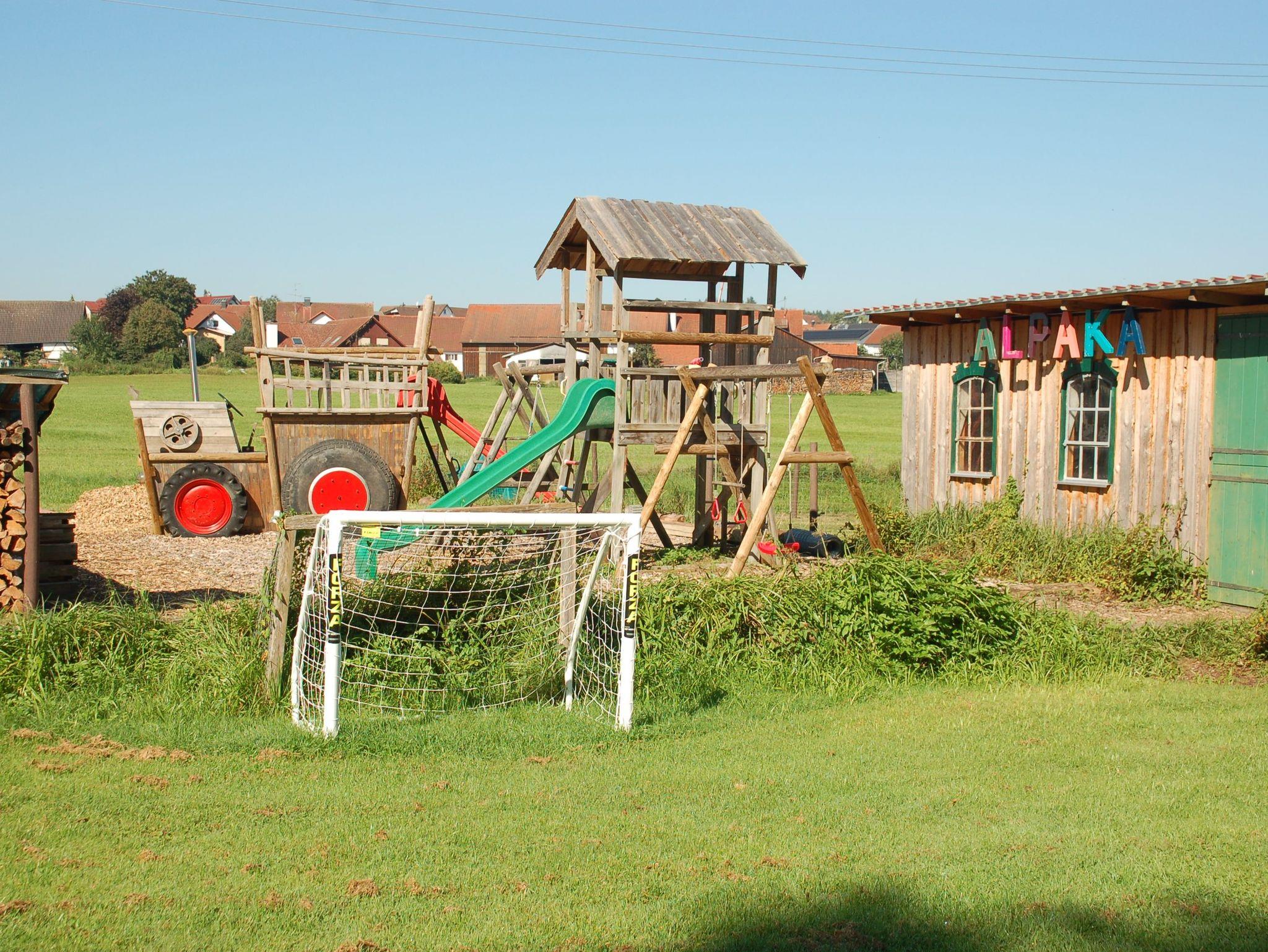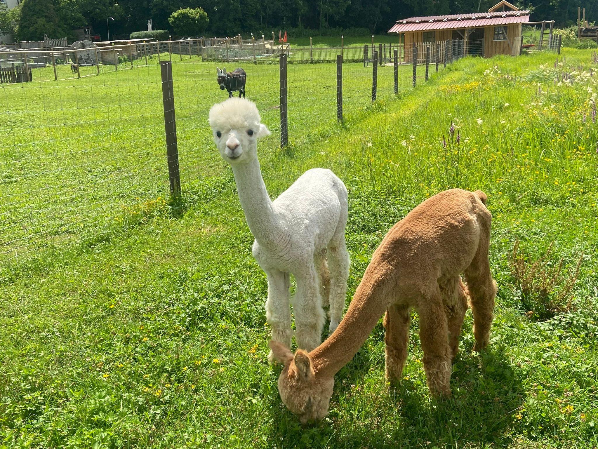 Nebenan, auf der großen Weide, befinden sich die Tiergehege, ein kleines Fußballfeld, ein Lagerfeuerplatz und ein Sandspielbereich.