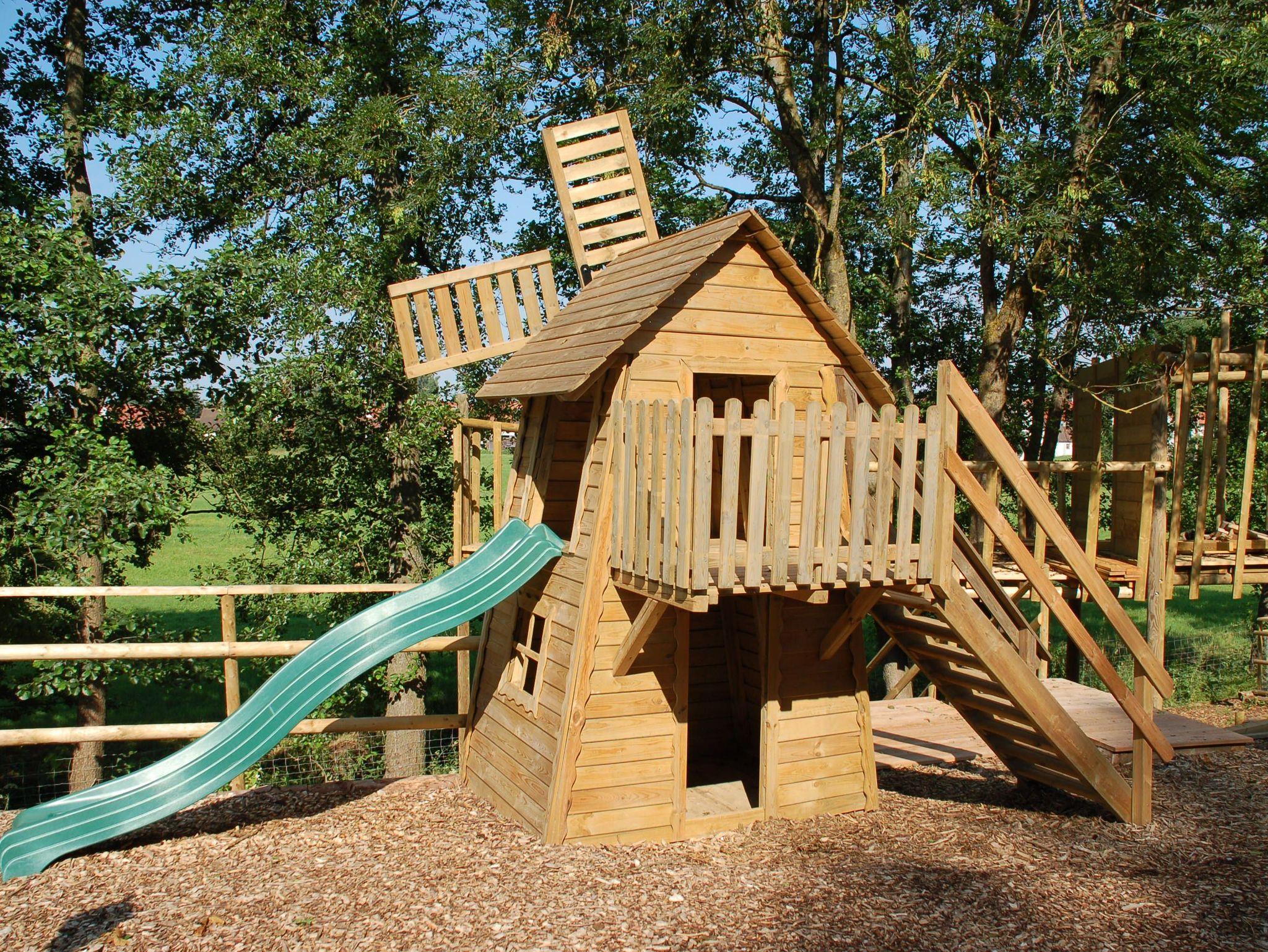 Bei schlechtem Wetter bietet die Spielscheune mit großer Rutsche und vielen Spielmöglichkeiten einen trockenen Platz zum Toben.