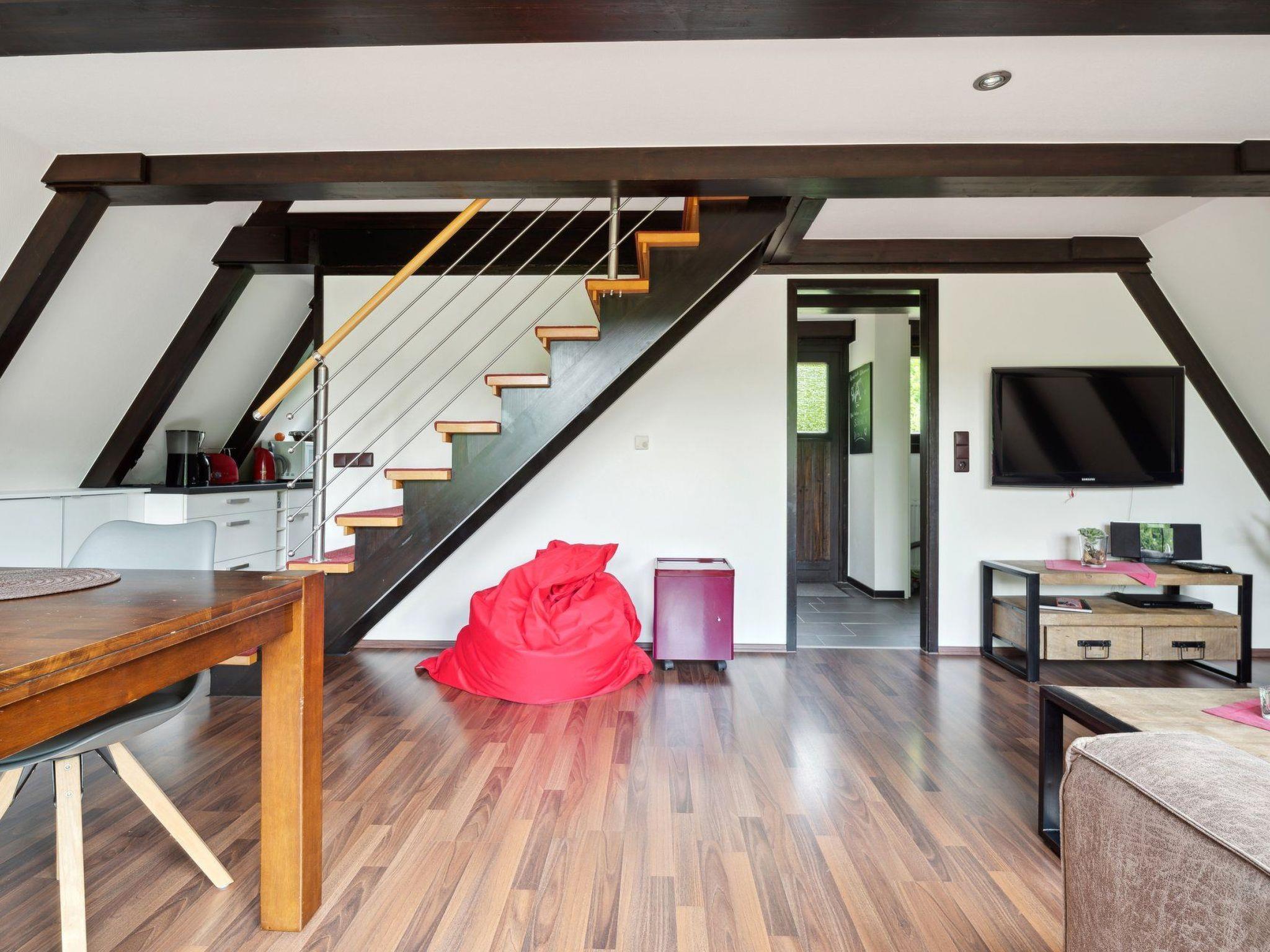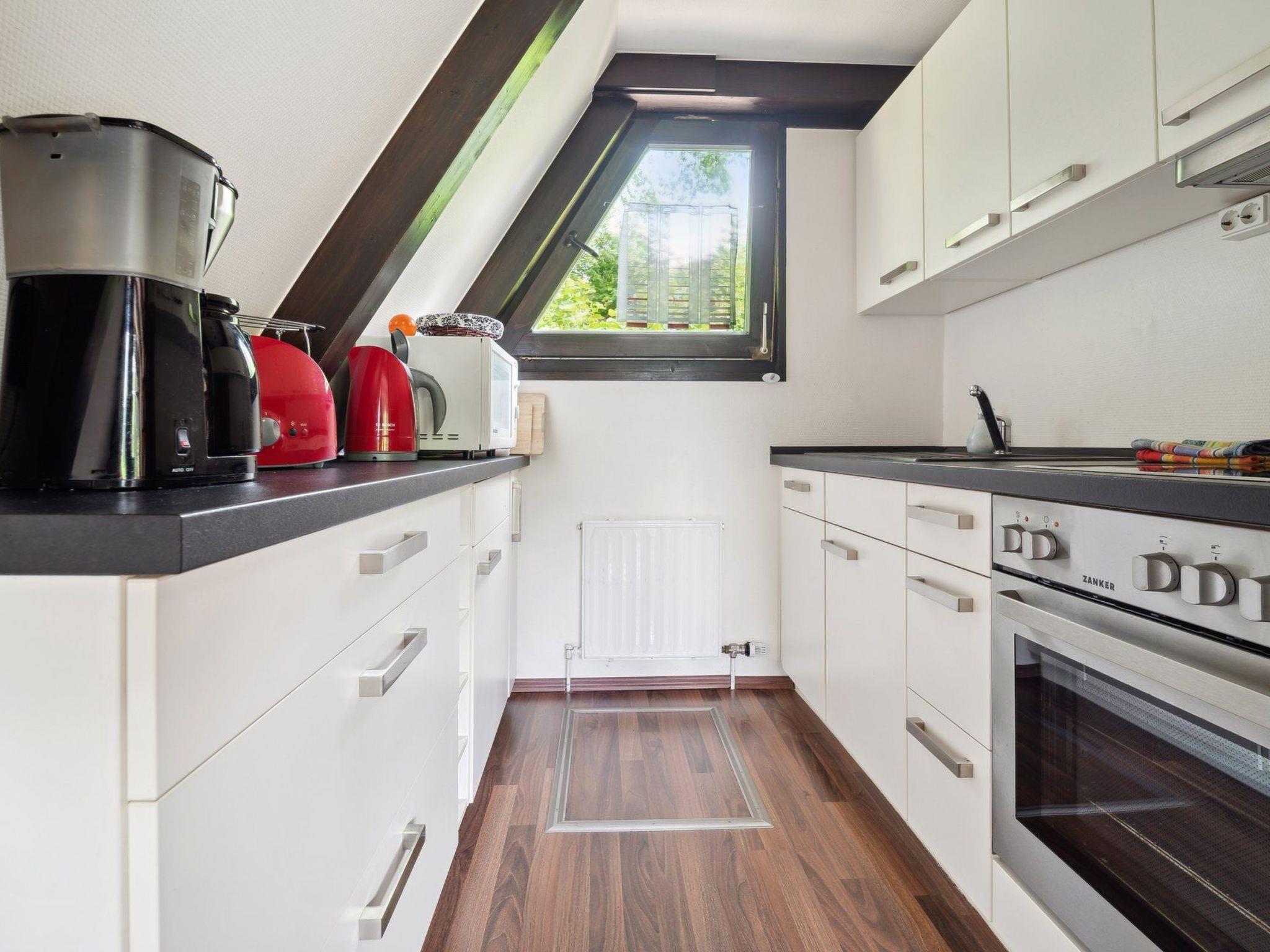 Accommodation:Holiday home with upscale furnishings; living/dining area on the ground floor with table for 6 people, large corner sofa, flat screen TV, satellite TV, DVD player, Ipod/Iphone docking station, CD player, radio, telephone and WLAN internet connection; 2 bedrooms on the upper floor (each with 2 beds), one of which with the "gallery" offers sleeping accommodation for a total of 4 people; open-plan kitchen with electric cooker with oven, ceramic hob, dishwasher, fridge with freezer compartment, microwave, coffee machine, toaster, kettle. Bathroom on the ground floor with shower and WC. Storage room in the entrance area; gas heating; terrace with garden, garden furniture, parasol.