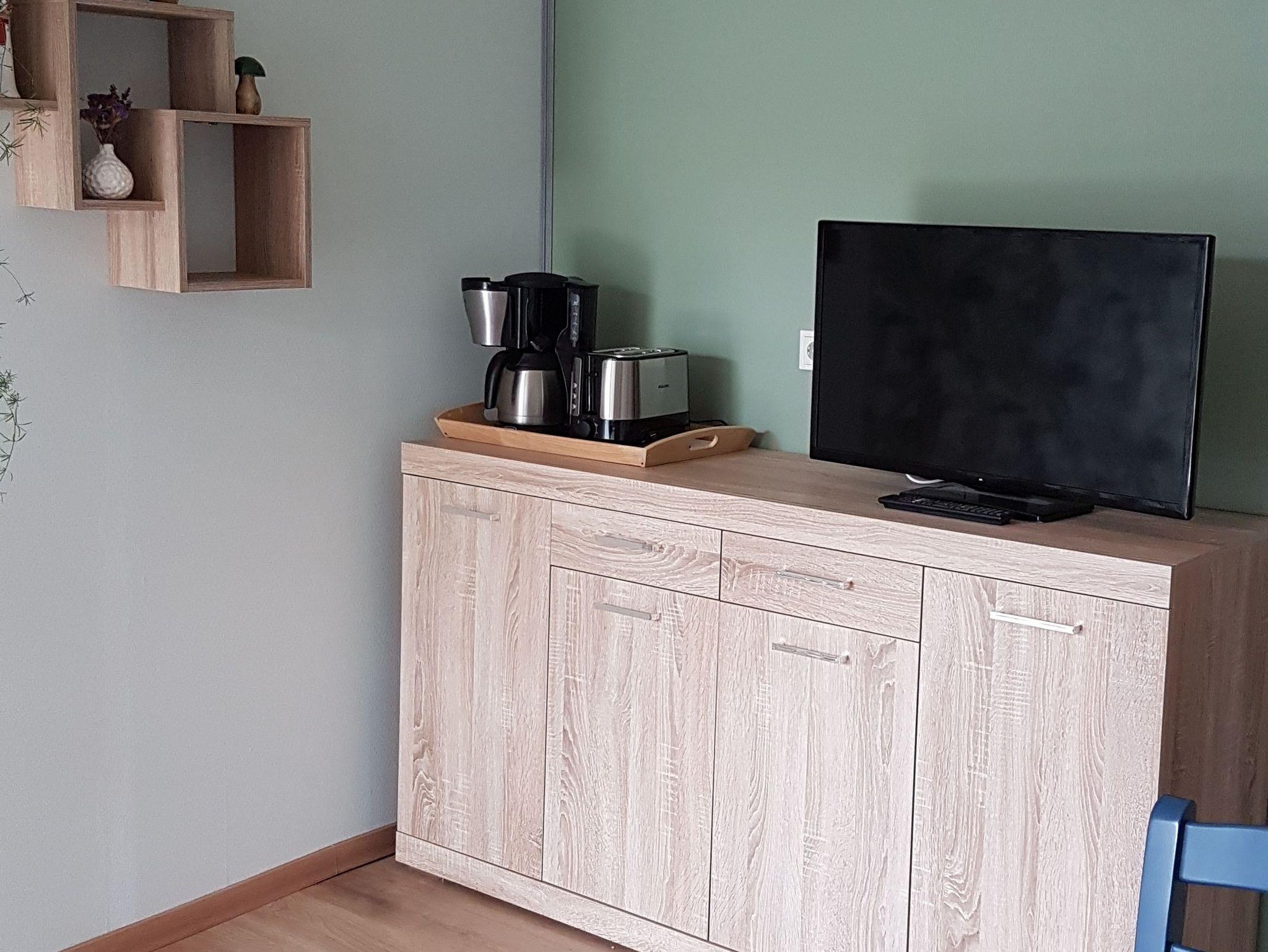 Ein Fernseher im Wohnbereich sorgt für Unterhaltung bei Groß und Klein.