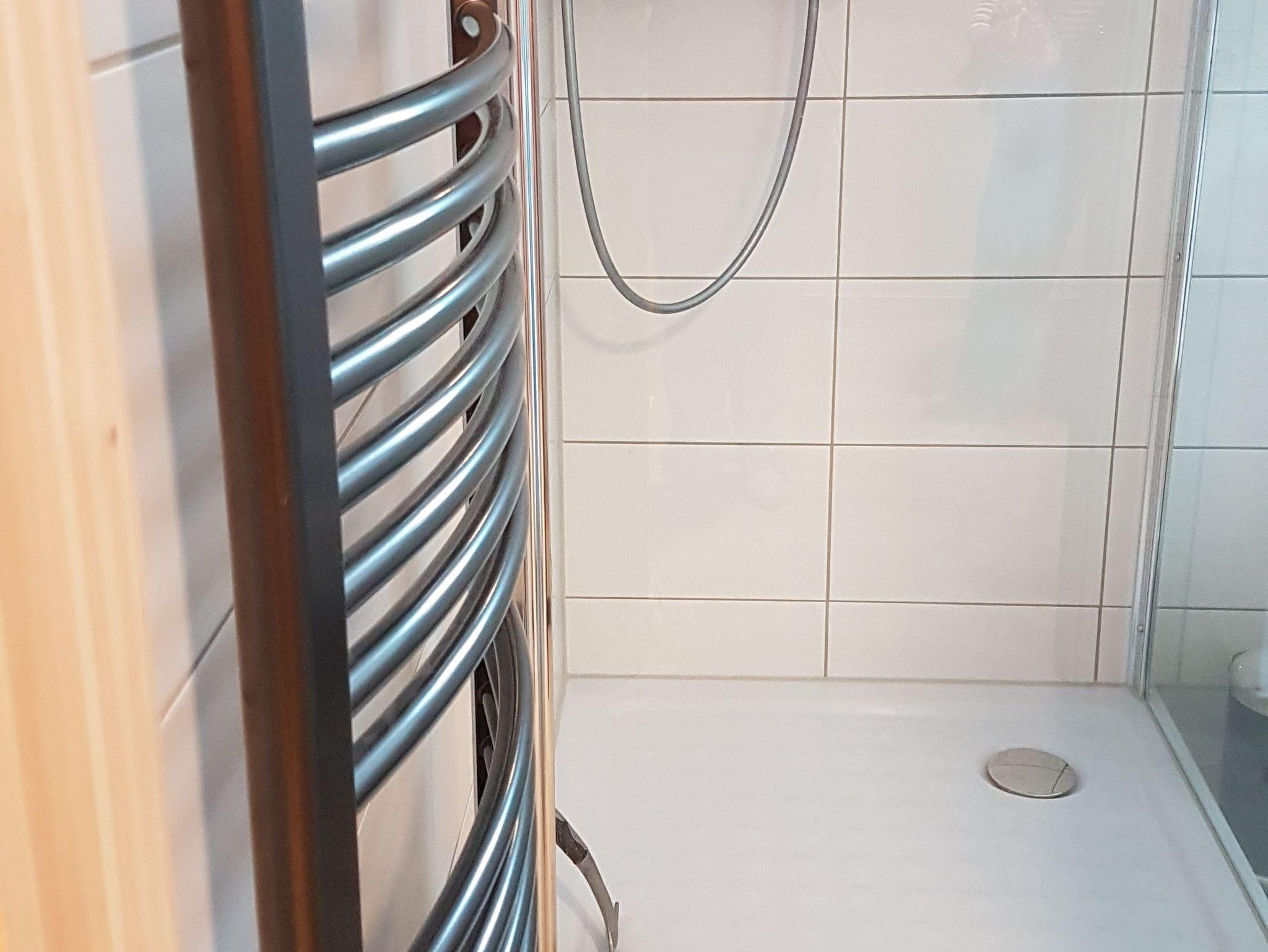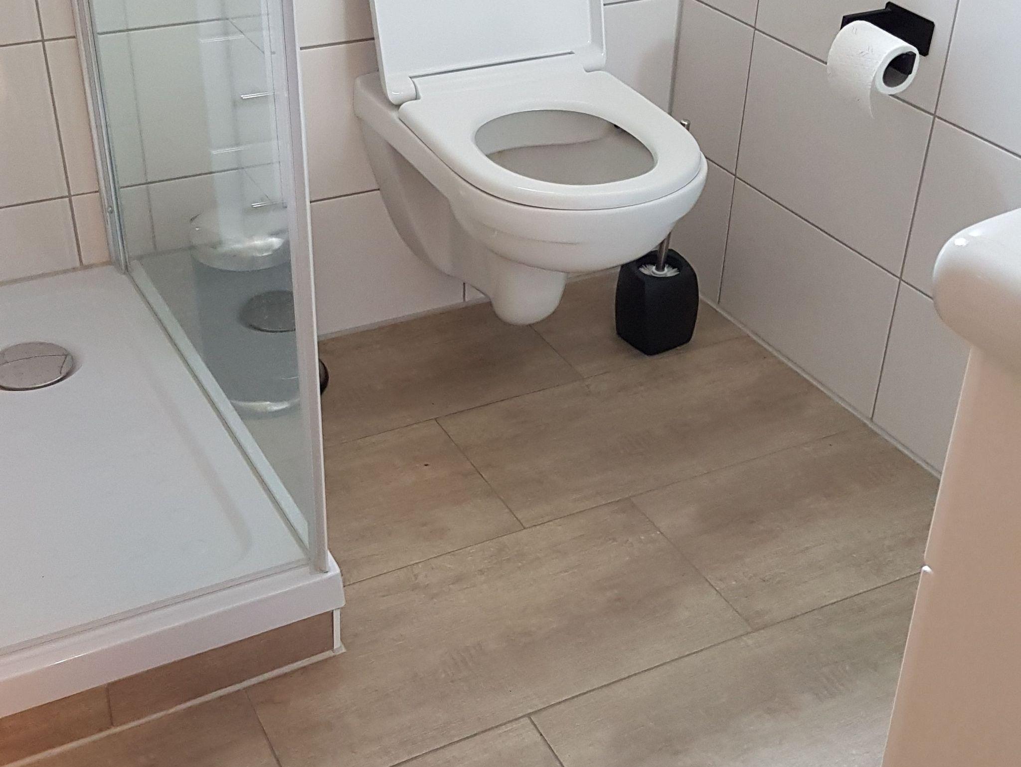 Das Duschbad überzeugt durch eine großzügige Dusche mit tiefem Einstieg, Handtuchheizkörper sowie viel Stauraum. Ein Fenster sorgt für Tageslicht.