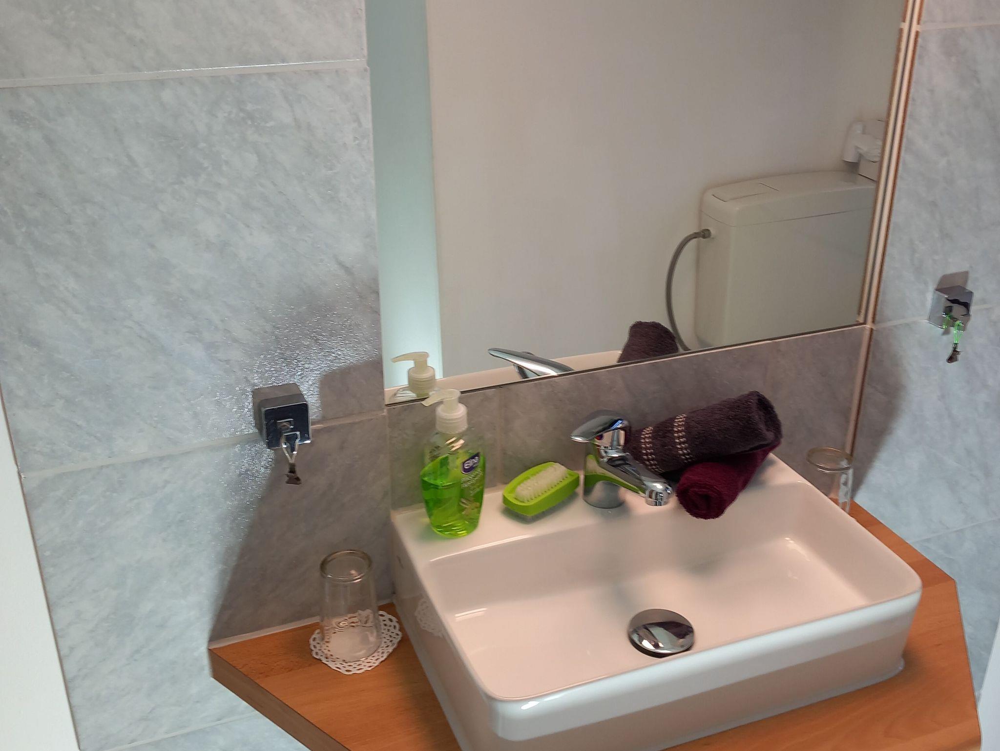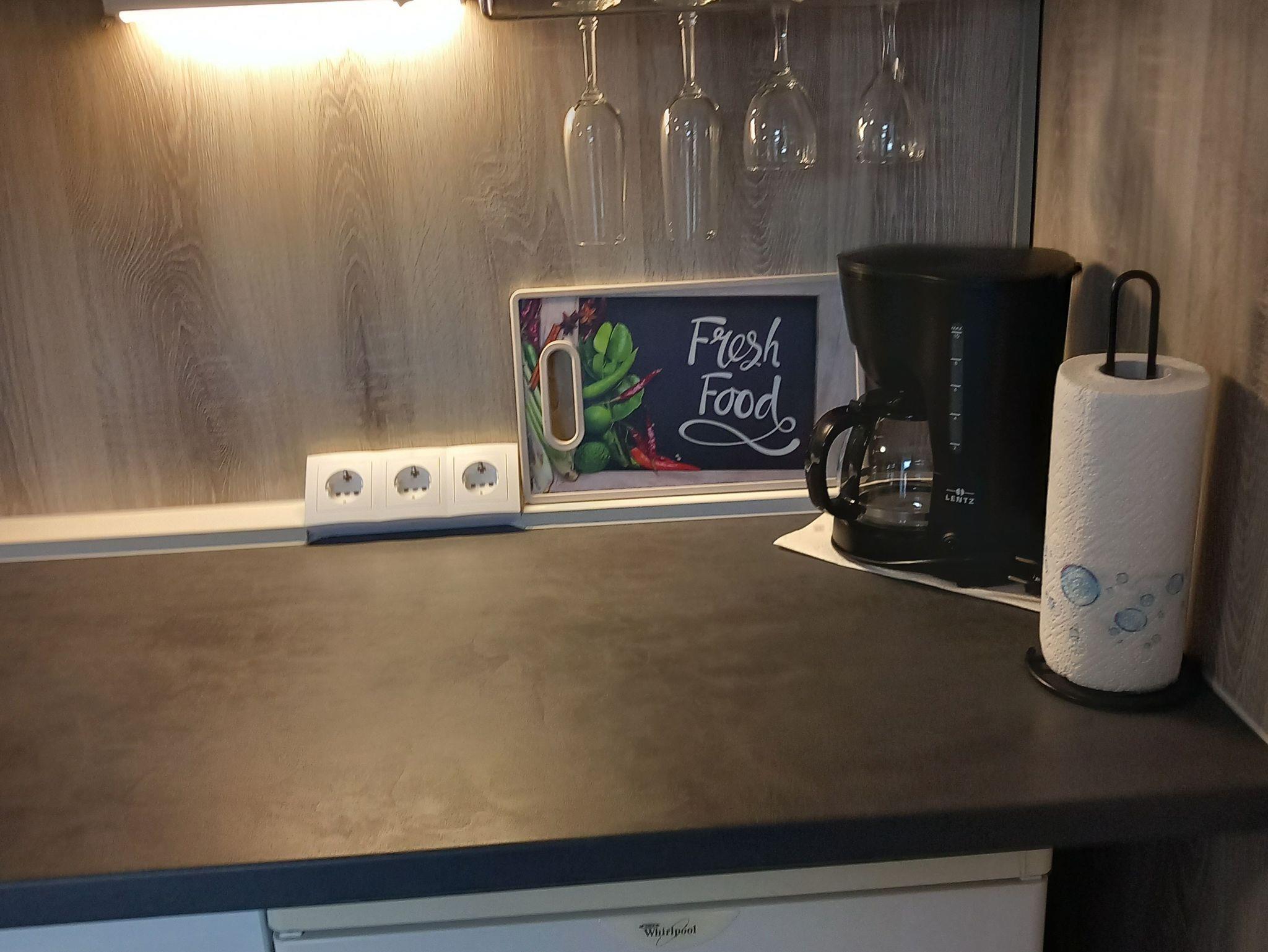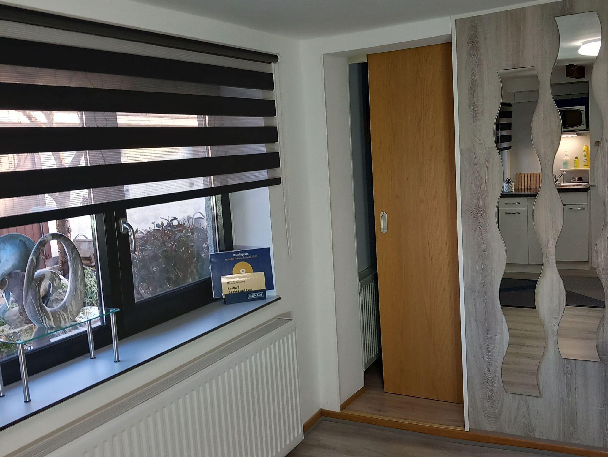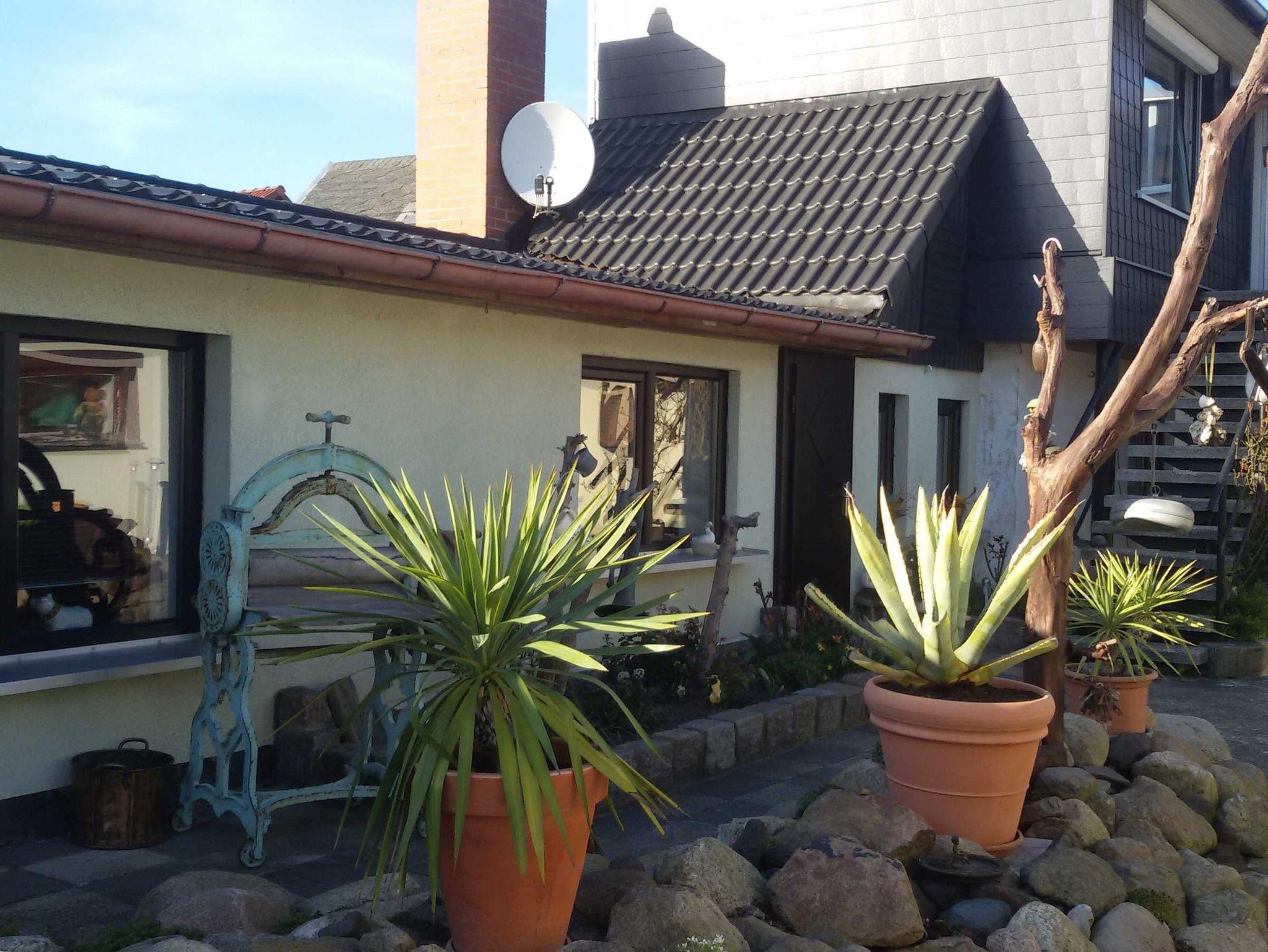 Ferienwohnung mit separatem Eingang ebenerdig auf eigenem Grundstück. Schlafraum separat mit Ehebetten, 2 Nachttische und Fenster, separater Wohnraum (mit Fenster) mit neuer Einbauküche, doppeltes Cerankochfeld, Kühlschrank mit Gefriermöglichkeit, Spüle, Fenster im Küchen-und Wohnbereich),LED-TV 102cm diagonal, 2 Cocktailsessel (leder), moderner Esstisch, separate Dusche (neue-Duschsäule-Überkopfbrause und Handdusche mit modernem Waschtisch und WC mit Fenster, Ausstattung-Mikrowelle, Kaffeemaschine, Wasserkocher, Eierkocher, Toaster und kompl. Küchenzubehör-Töpfe-Gläser-Geschirr etc.