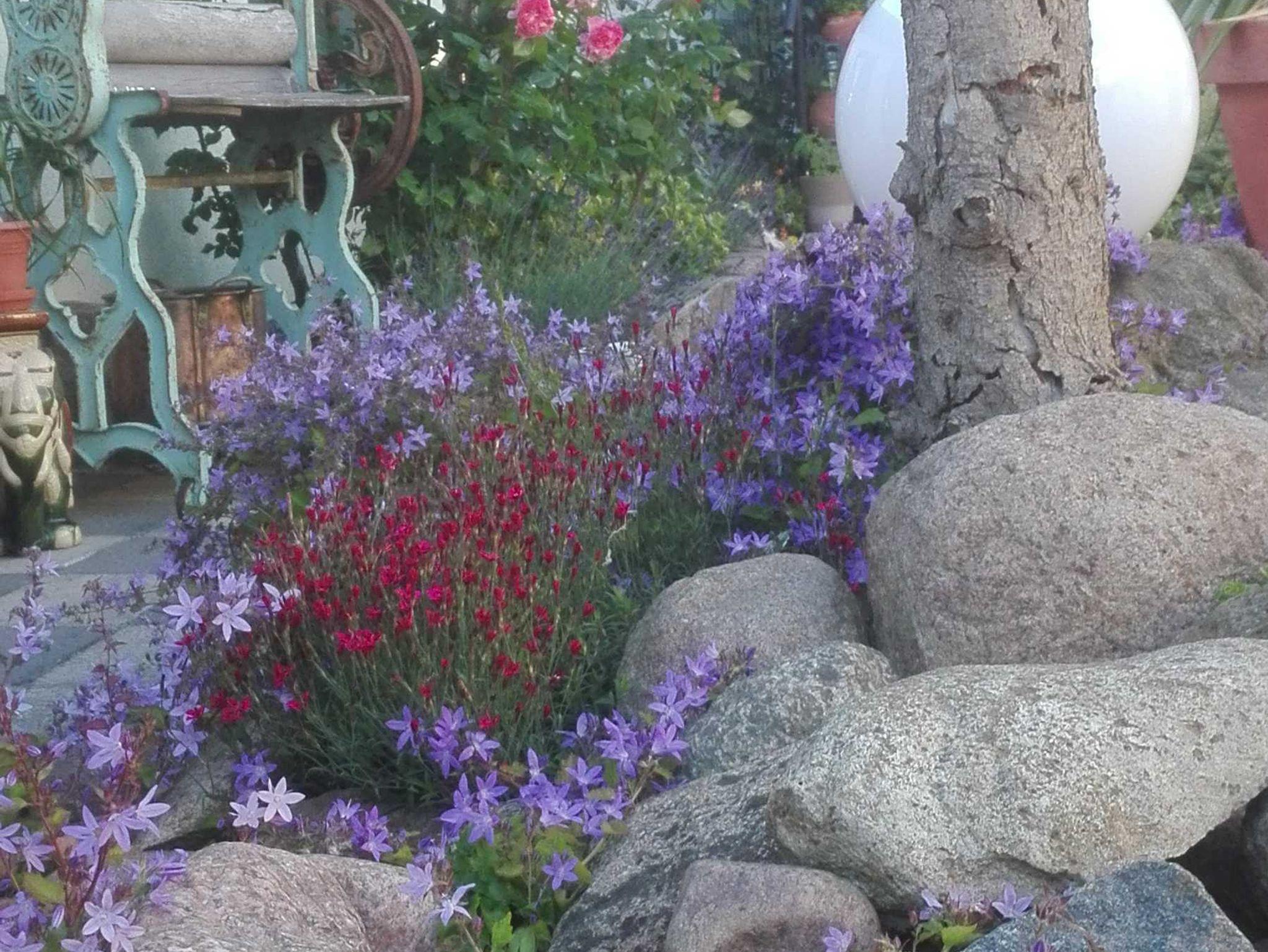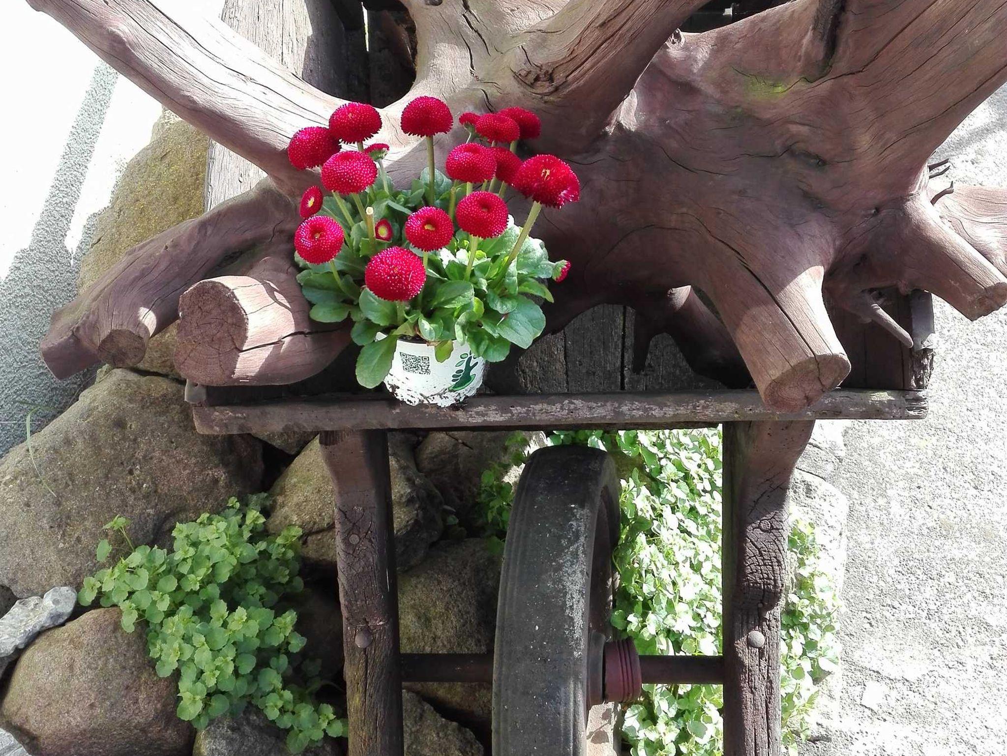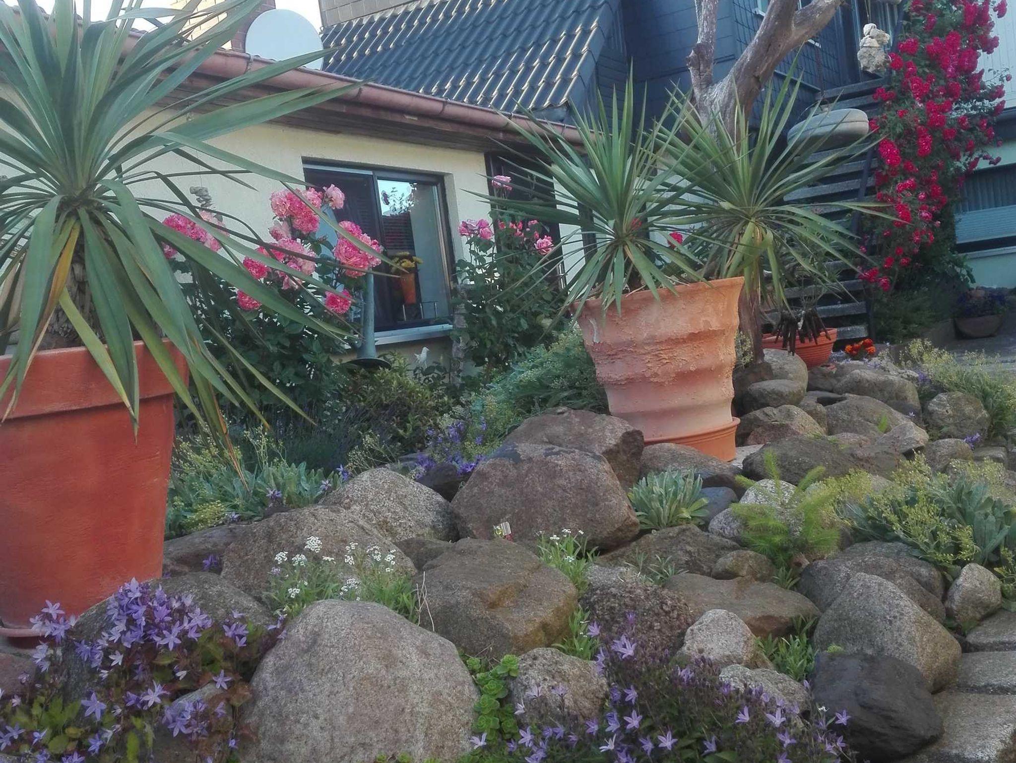 Kleine Ferienunterkunft mit sep. Eingang auf eigenem Grundstück, Sitzen im Grünen (Gartenmöbel vorhanden) in ruhiger, aber doch zentraler Lage, Terrasse, ebenerdig. Kombination aus Wohn- und Schlafraum mit einem Einzelbett 90x200, moderner Tisch mit 2 Cocktailsessel