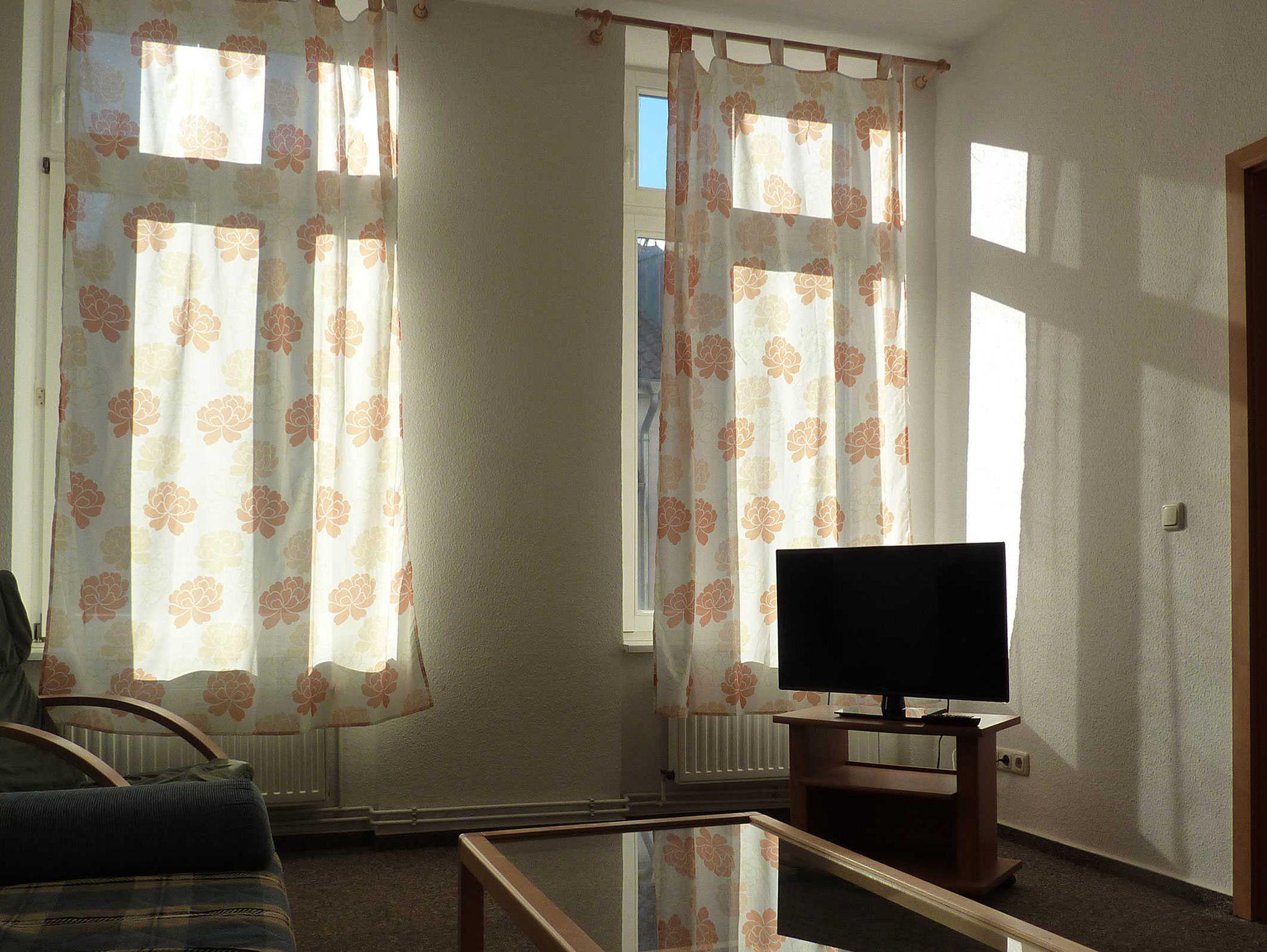 Eine Ferienwohnung bestehend aus 2 Zimmern, ein Schlafzimmer mit zwei getrennt stehenden Betten (je 90 x 200), ein Wohnzimmer mit einer Doppelbettcouch (145 x 195), Küche, DU/ WC, Waschmaschine.