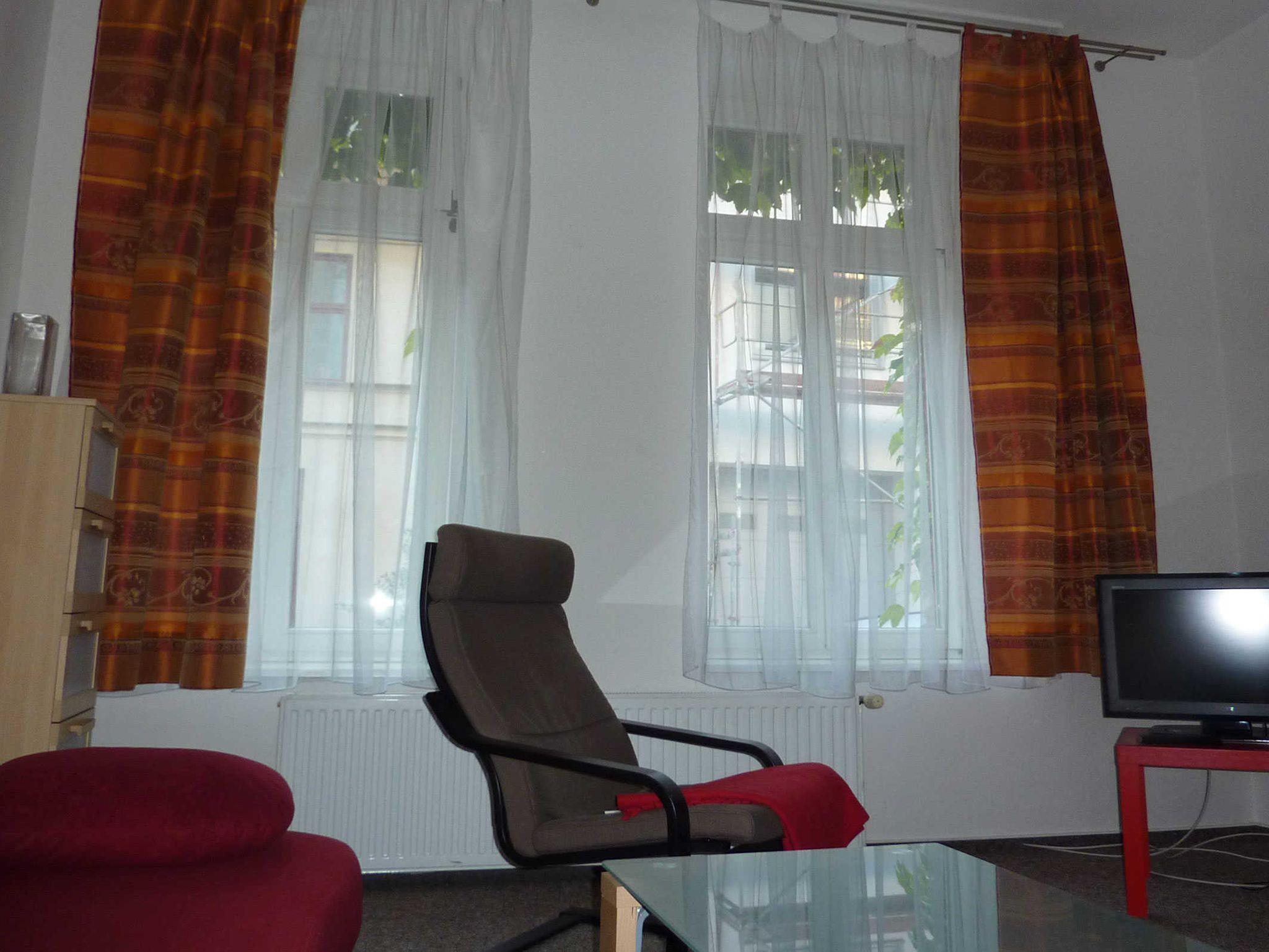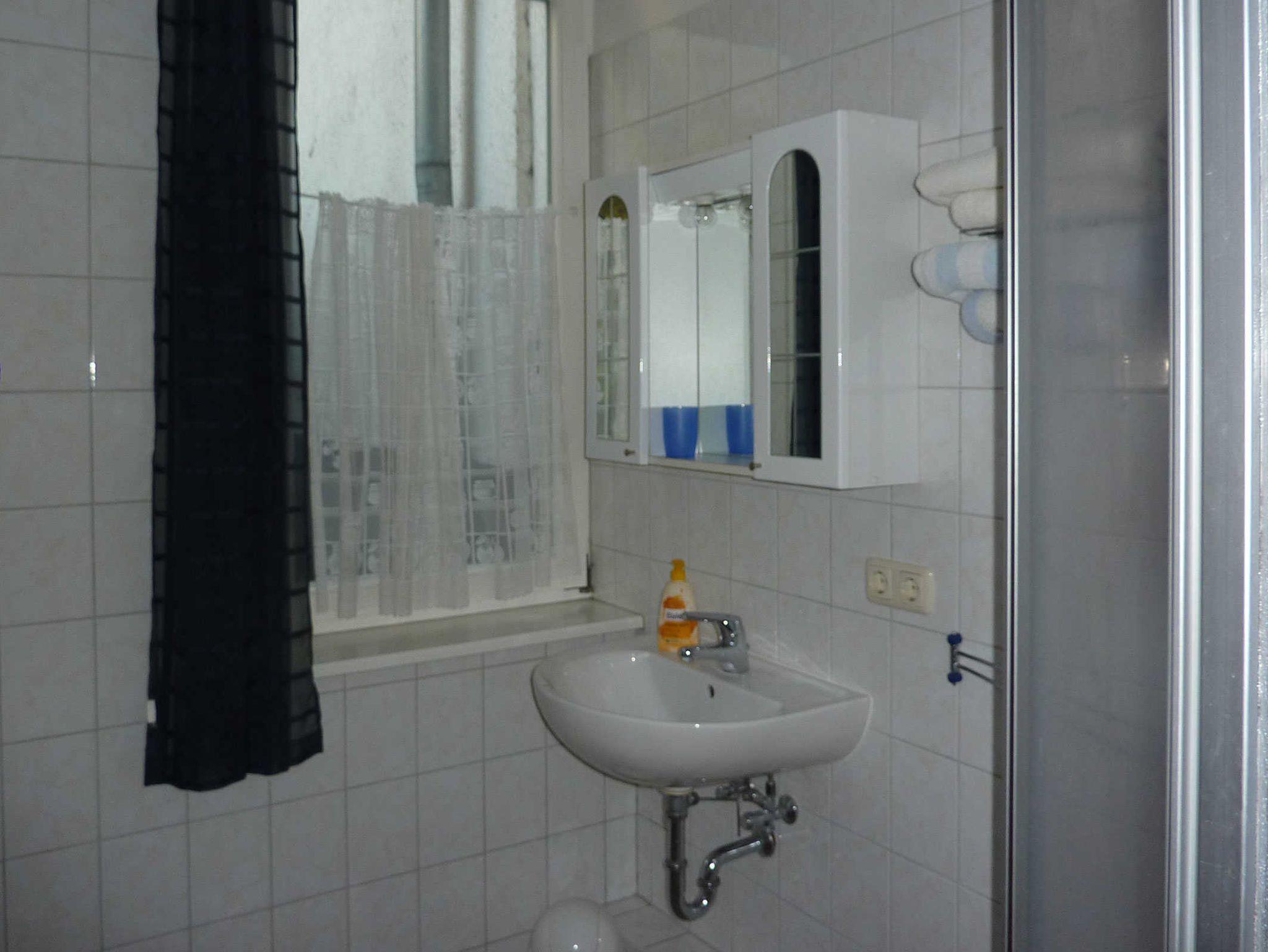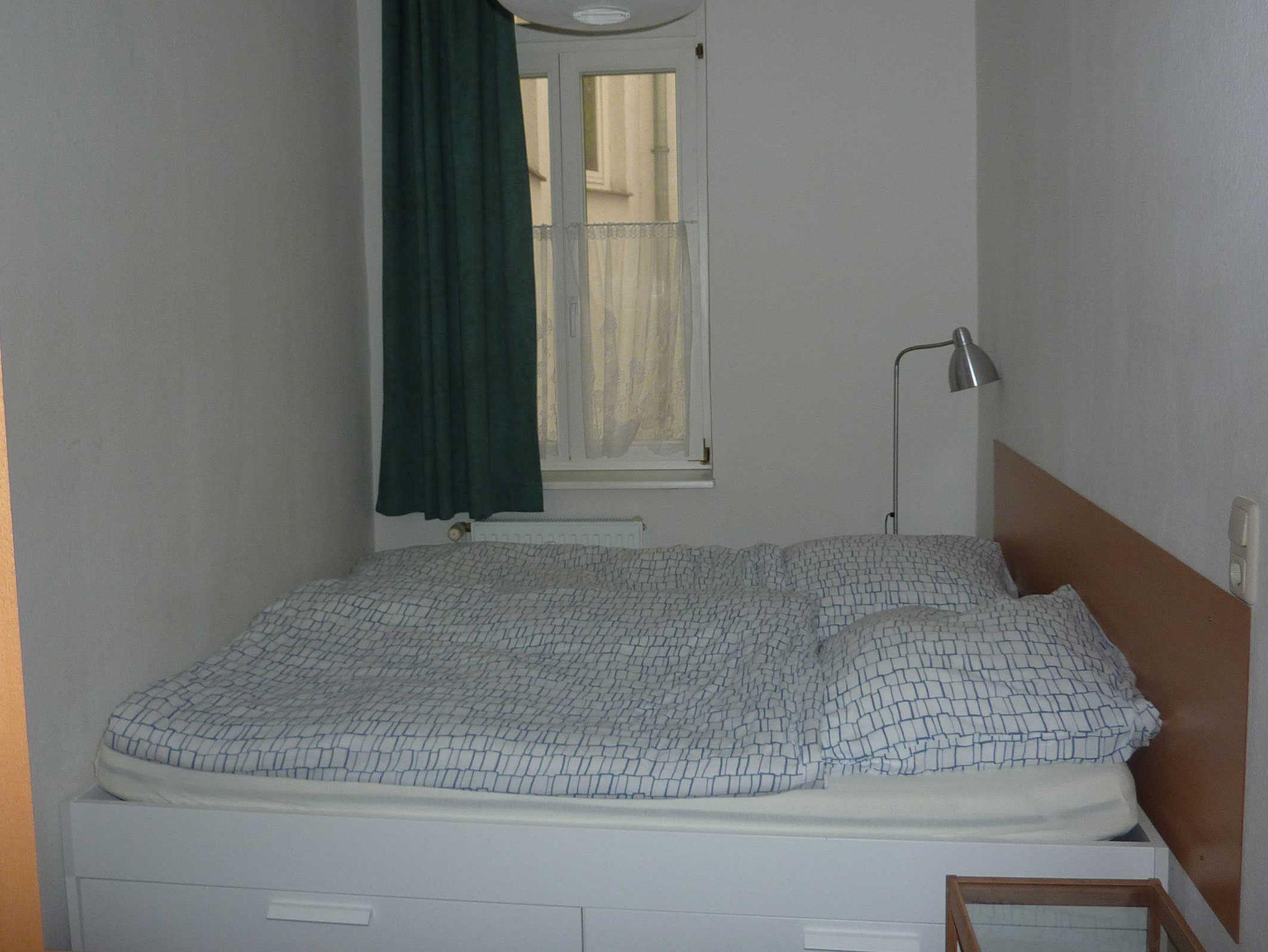 Ferienwohnung bestehend aus zwei Zimmern, Hochparterre, ca. 40 qm, ein Schlafzimmer mit Doppelbett (140 x 200), Wohnzimmer mit Doppelbettcouch (145 x 195), Küche, Dusche/ WC mit Waschmaschine.