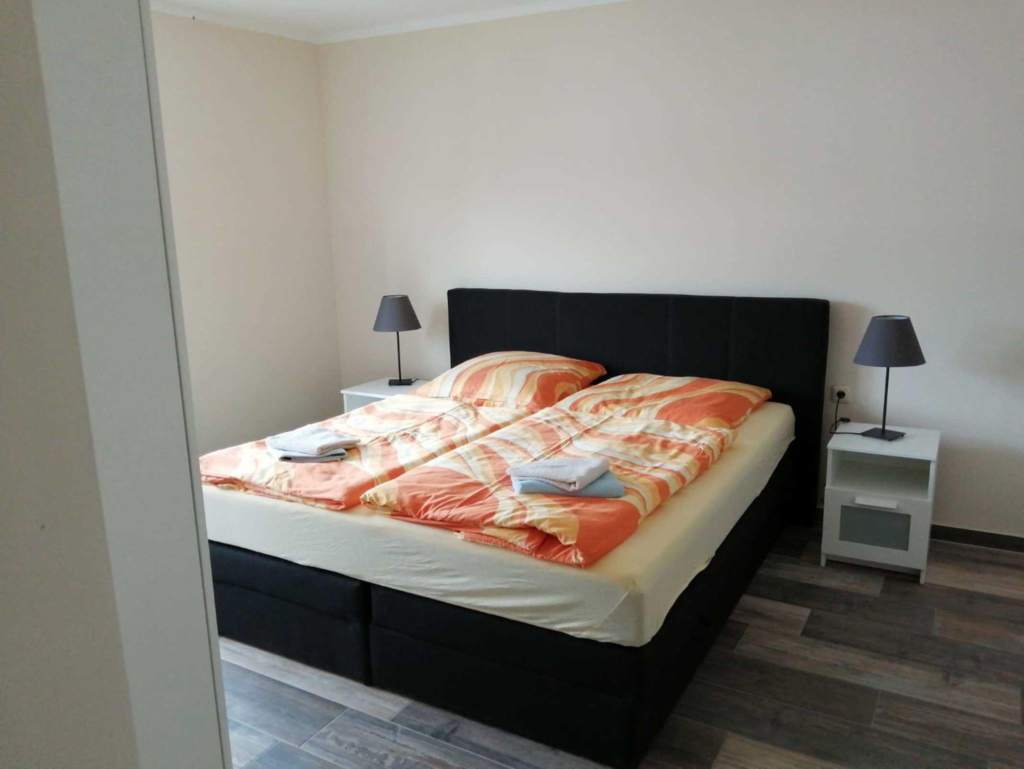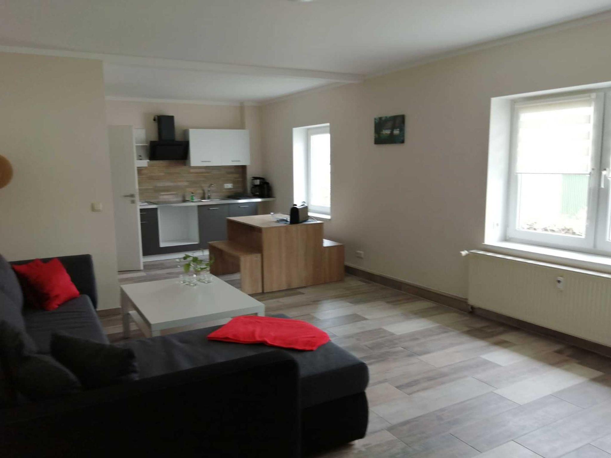 Die 3-Zimmer-Ferienwohnung im 1.OG mit einer Wohnfläche von ca. 90 qm ist für bis zu 4 Personen geeignet. Sie ist ausgestattet mit einem großem Wohnzimmer und einer großen, offenen Wohnküche. Zudem gibt es ein separates Schlafzimmer mit Boxspringbett (180x200) sowie ein Gästezimmer mit Doppelbett. Das Badezimmer bietet eine Badewanne sowie eine Dusche. Die Ferienwohnung verfügt über einen Balkon.