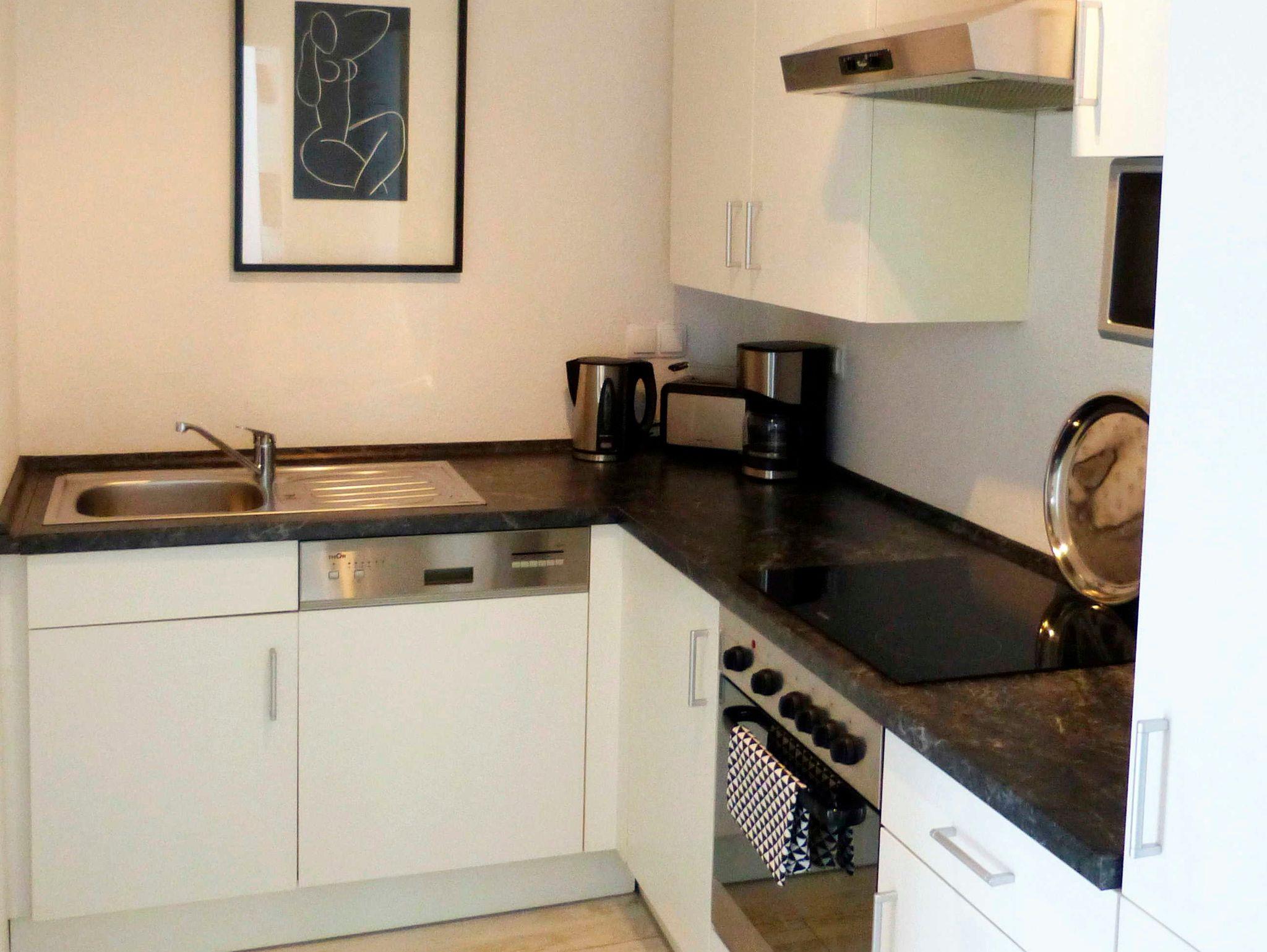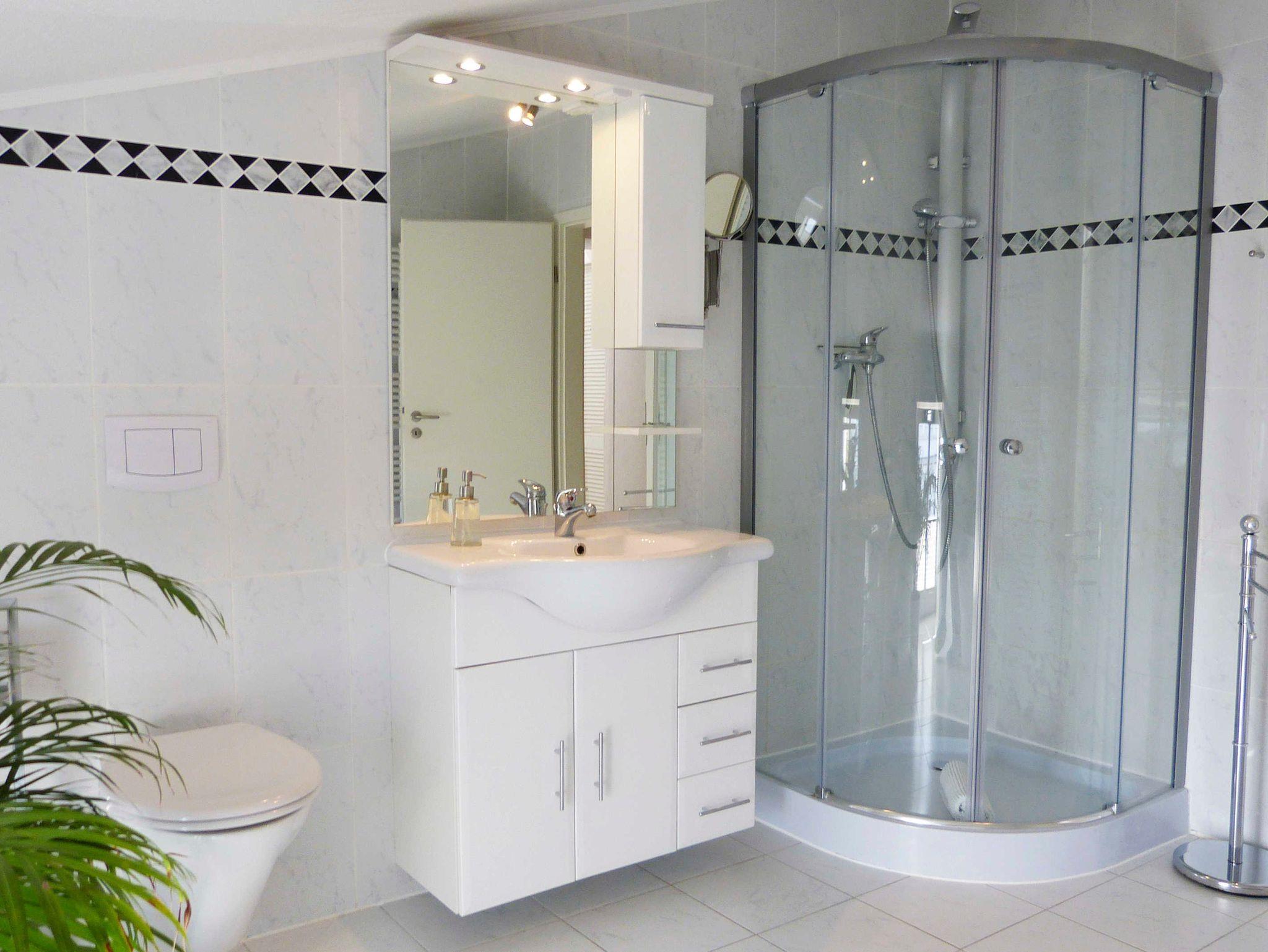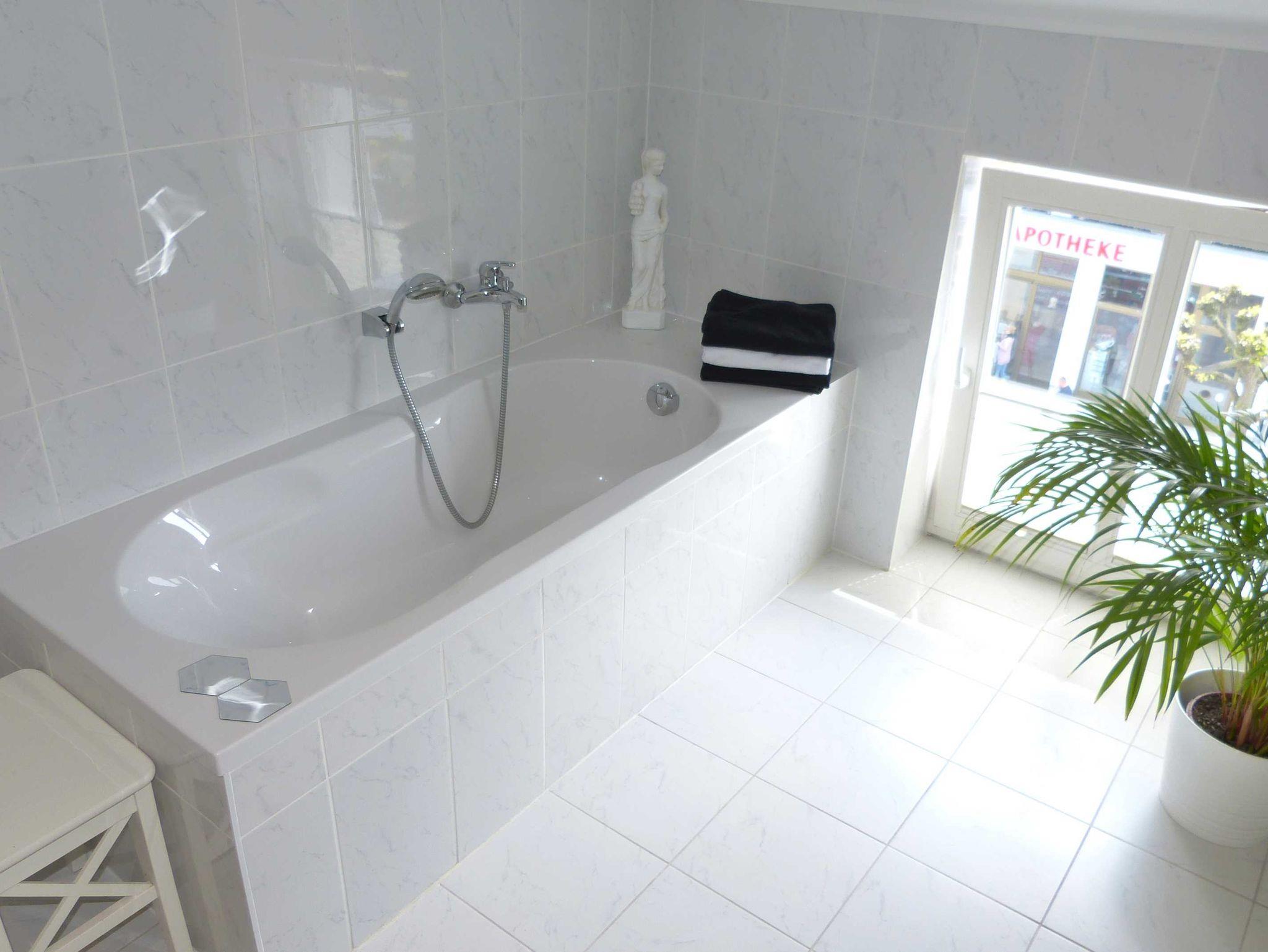 Das Bad ist ein Vollbad mit Dusche und Badewanne. Die Küche ist komplett ausgestattet.