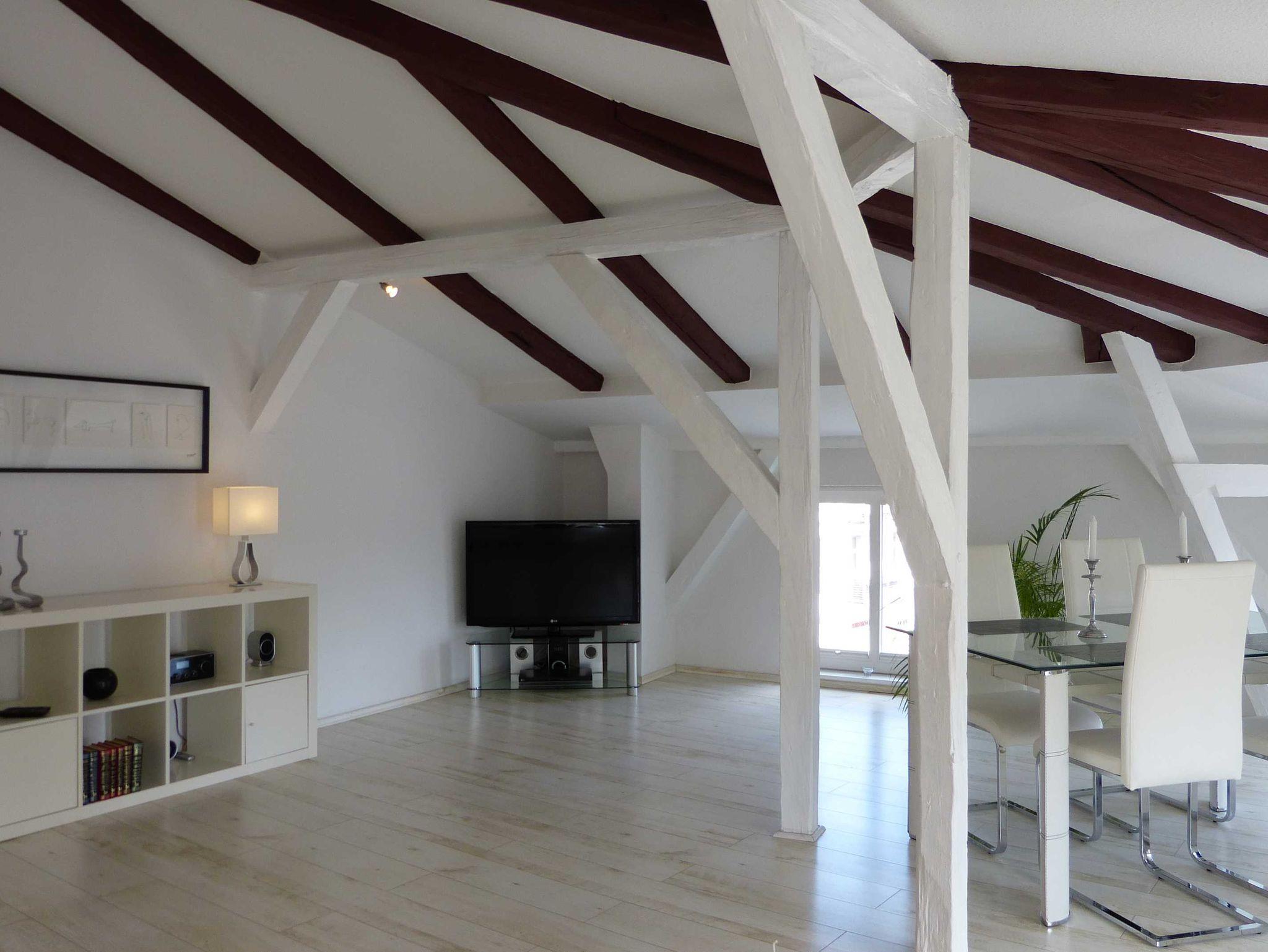 Diese schöne, helle 2-Zimmer Komfortwohnung ist ideal für 2 Personen geeignet. Maximal kann die 75 Quadratmeter große Wohnung mit 4 Personen belegt werden. Die Raumaufteilung der Wohnung ist großzügig und diese ist stilvoll eingerichtet. Die offene Balkenlage verschafft der Wohnung einen besonderen Charme.