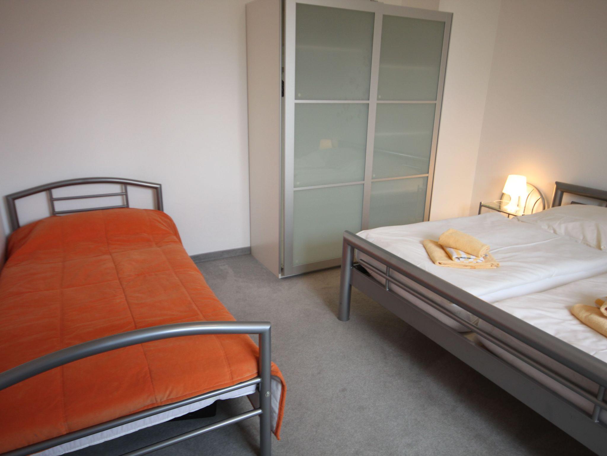 Liebevoll und modern eingerichtet Ferienwohnung für 3 Personen. Für unsere Gäste, die mit dem PKW anreisen gibt es einen Parkplatz direkt hinter dem Haus. Die Ferienwohnung befindet sich in der 4. Etage. Es ist kein Fahrstuhl vorhanden. Auf 48qm stehen Ihnen ein Wohnzimmer, Schlafzimmer mit Doppelbett und zusätzliches Einzelbett sowie eine komfortable Küche zur Verfügung. Zum Strand sind es lediglich 300m.