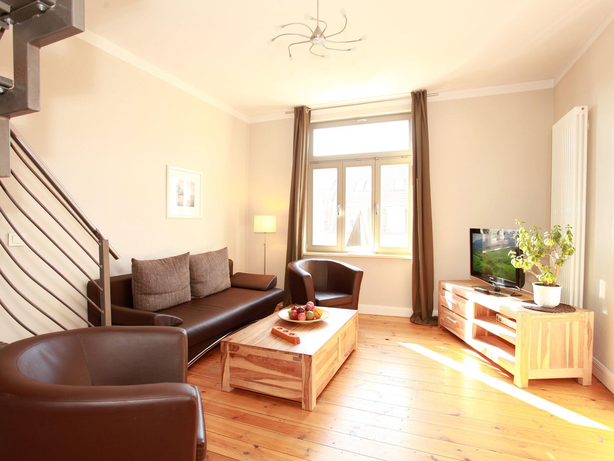 Die vier exklusiv ausgestatteten Ferienwohnungen in der Stadtvilla von Warnemünde sind bis zu 78 qm groß und für bis zu 6 Personen buchbar. Die Ferienwohnungen sind großzügig geschnitten, warmherzig und stilvoll eingerichtet, zum Teil mit Whirlpool, Fußbodenheizung, 2 seperaten Schlafzimmern sowie großen Terrassen. Alle Ferienwohnungen verfügen über exklusive Einbauküchen bis hin zu hochwertigen Schlaf-und Wohnzimmern. Alle Bäder sind mit Fußbodenheizung ausgestattet.