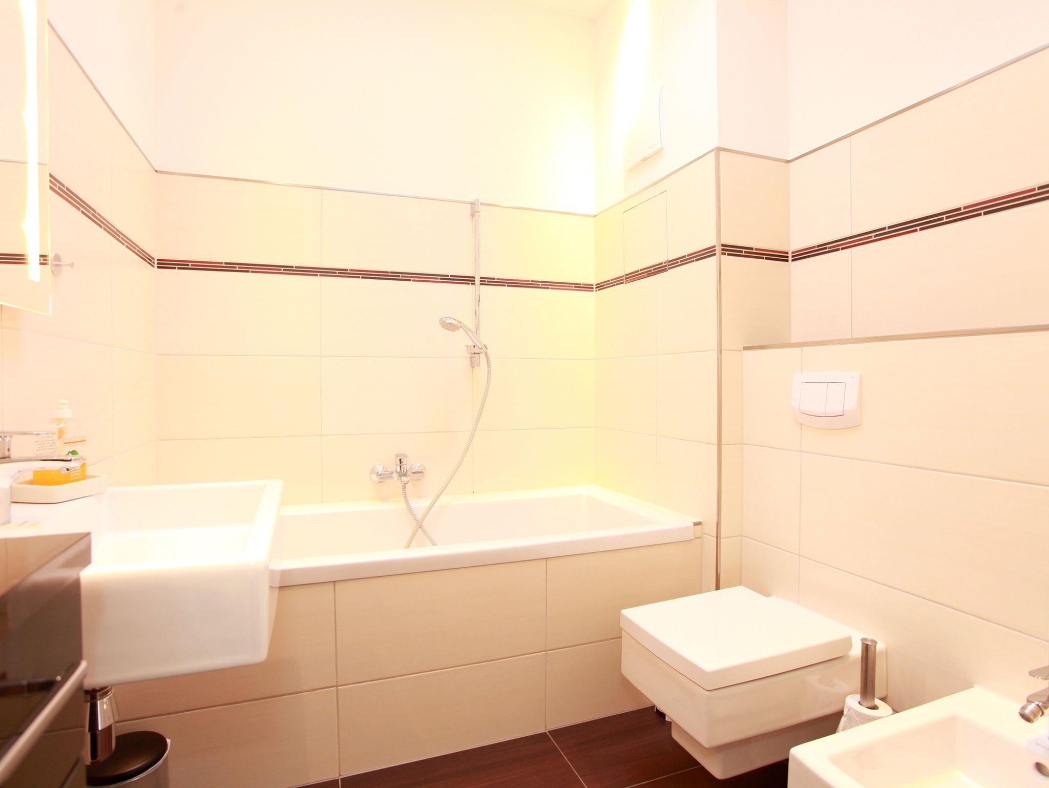 Die 3-Zimmer-Ferienwohnung Warnemünde im 2. Obergeschoss hat eine Größe von 78 qm und bietet Platz für bis zu 5 Personen. Sie ist ausgestattet mit einem Wohnzimmer, zwei separaten Schlafzimmern, Einbauküche und hochwertigen Badezimmer mit Badewanne und Bidet.
