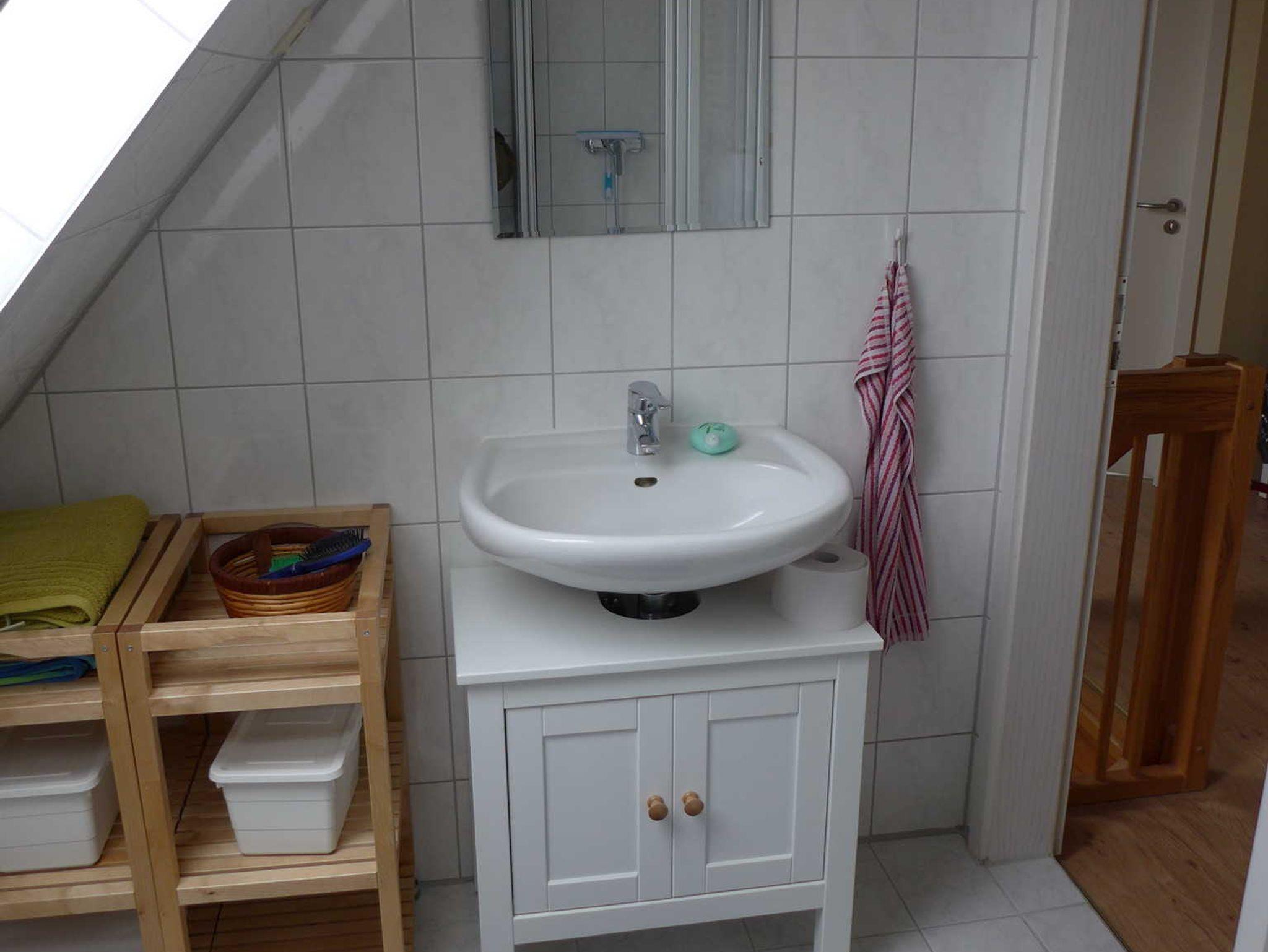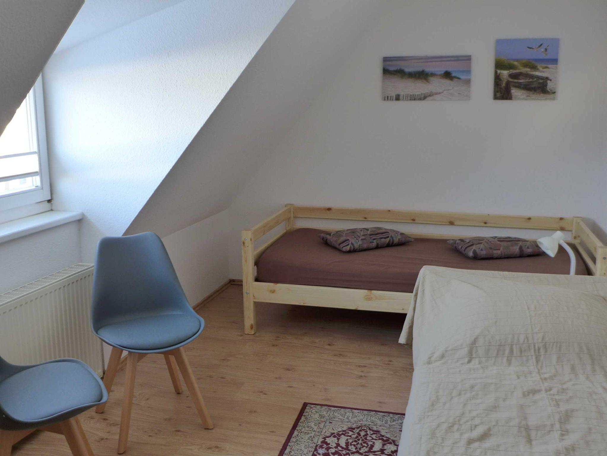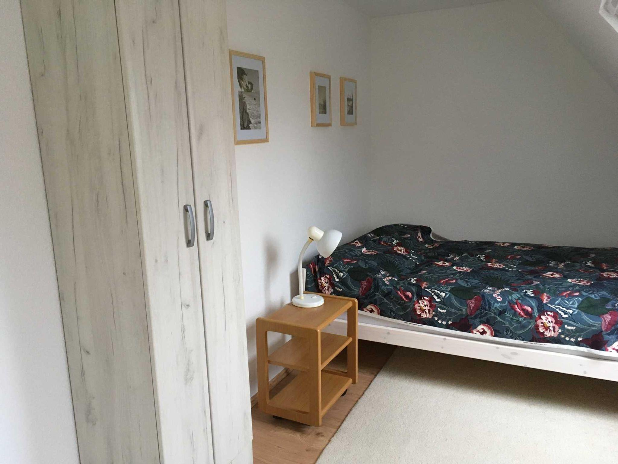 Die Ferienwohnung befindet sich im Obergeschoss eines Einfamilienhauses. Sie ist mit zwei Schlafzimmern für insgesamt vier Personen ausgestattet. Ein Kinderbett kann bei Bedarf aufgestellt werden.
