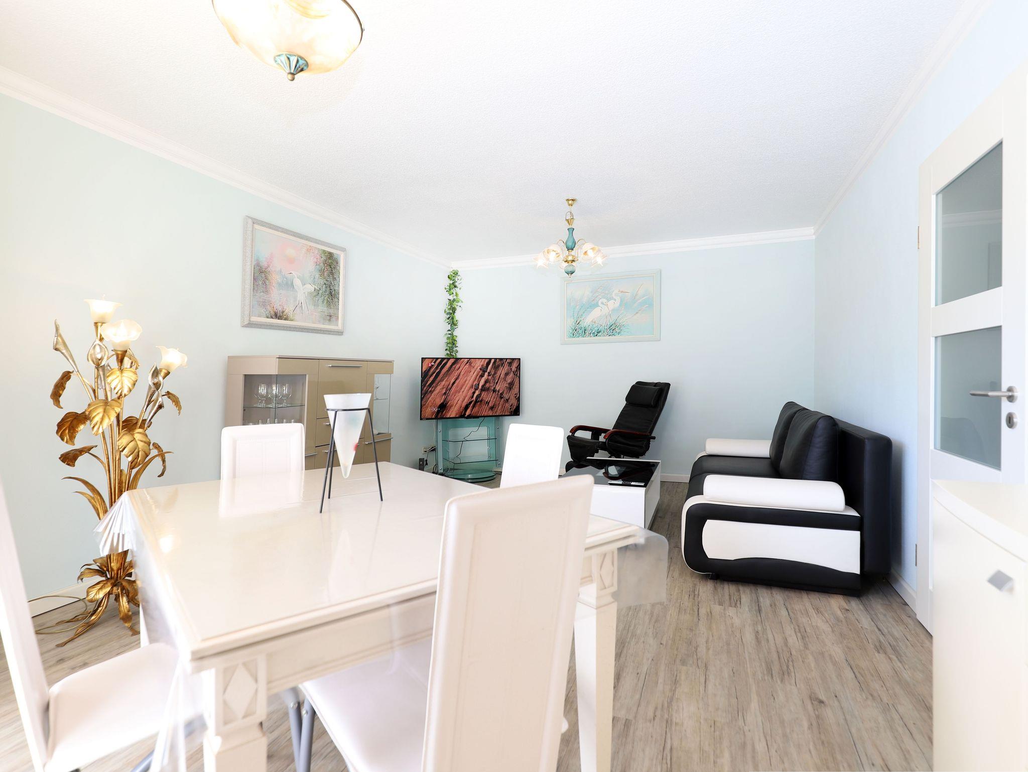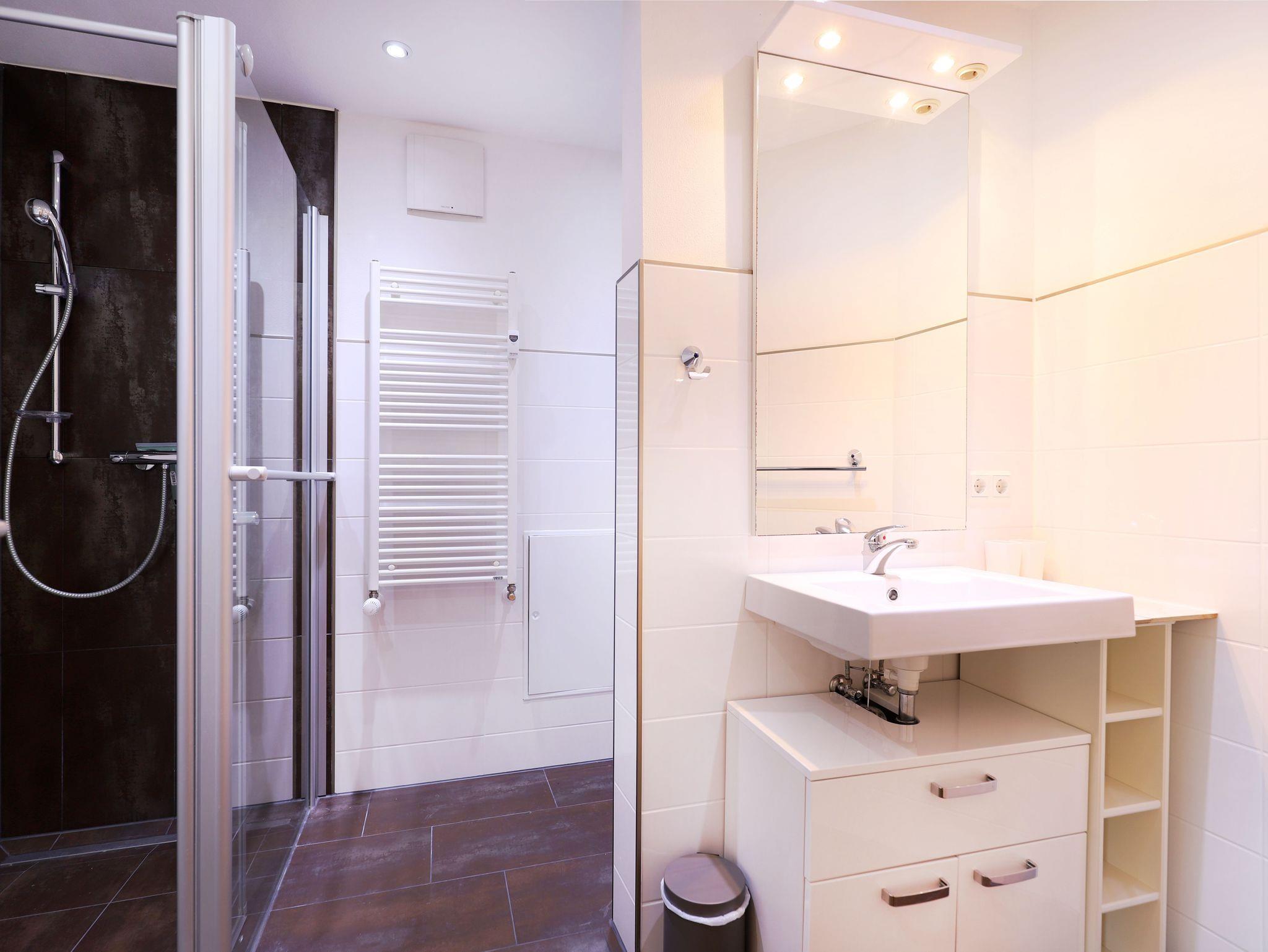 Die Ferienwohnung hat ein separates Schlafzimmer, ein separates Badezimmer mit Dusche/WC und einen großzügigen Wohn- und Sitzbereich mit Aufbettungsmöglichkeit.