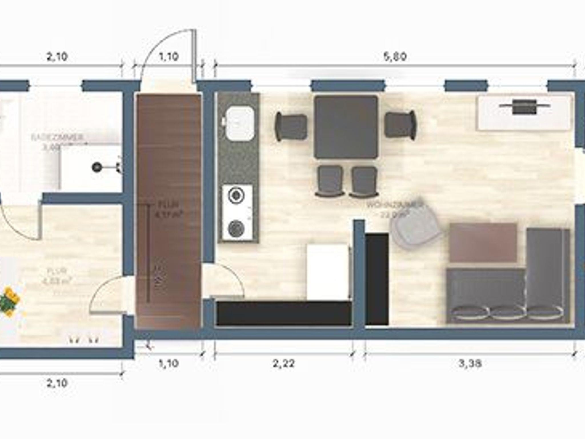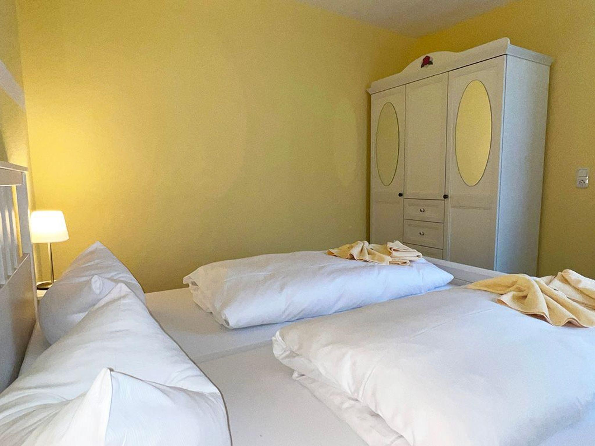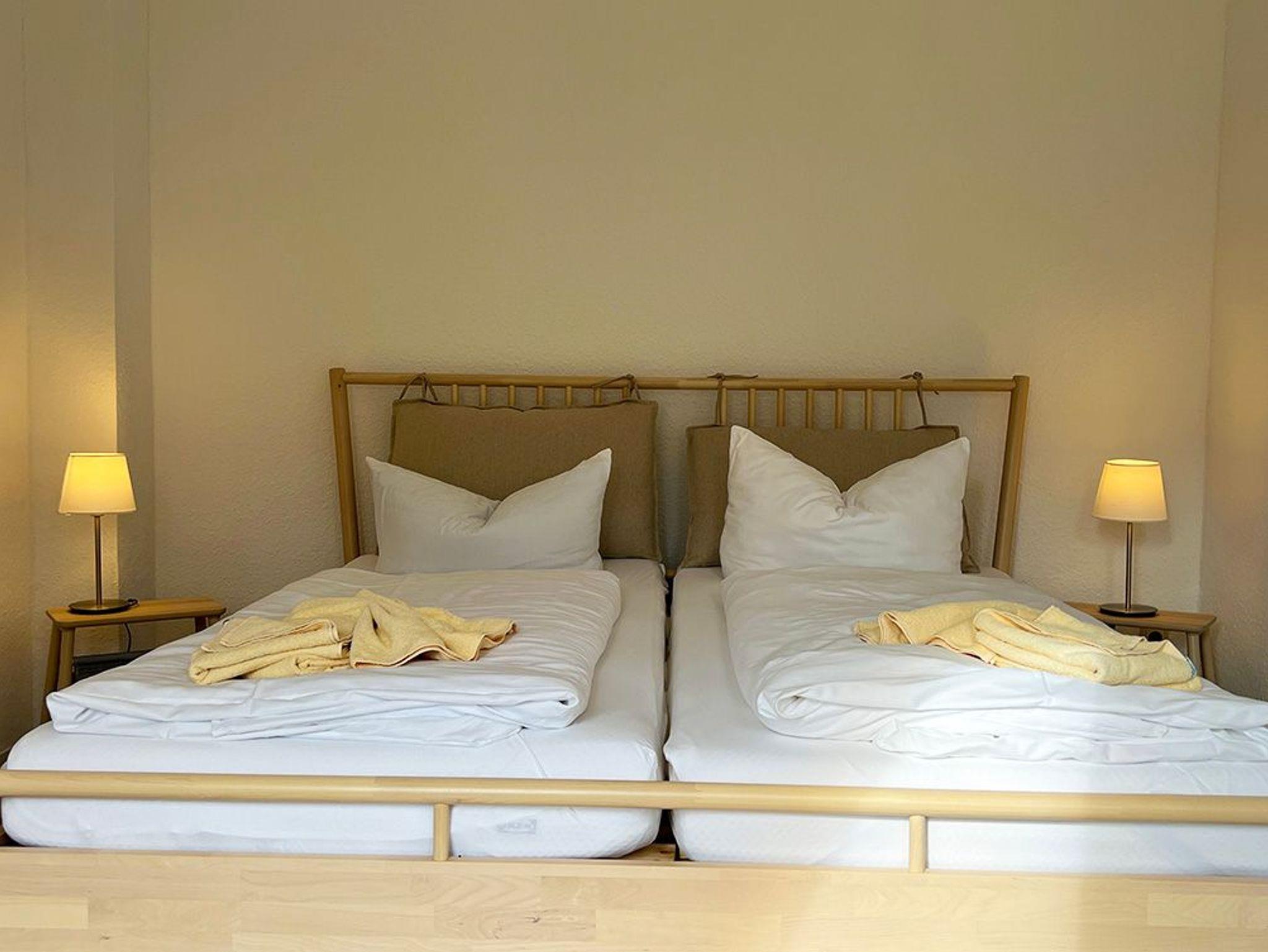 Die Ferienwohnung besteht aus 2 Schlafräumen mit je einem Doppelbett, ein Wohn-/Esszimmer mit offener Küche und DU/WC.