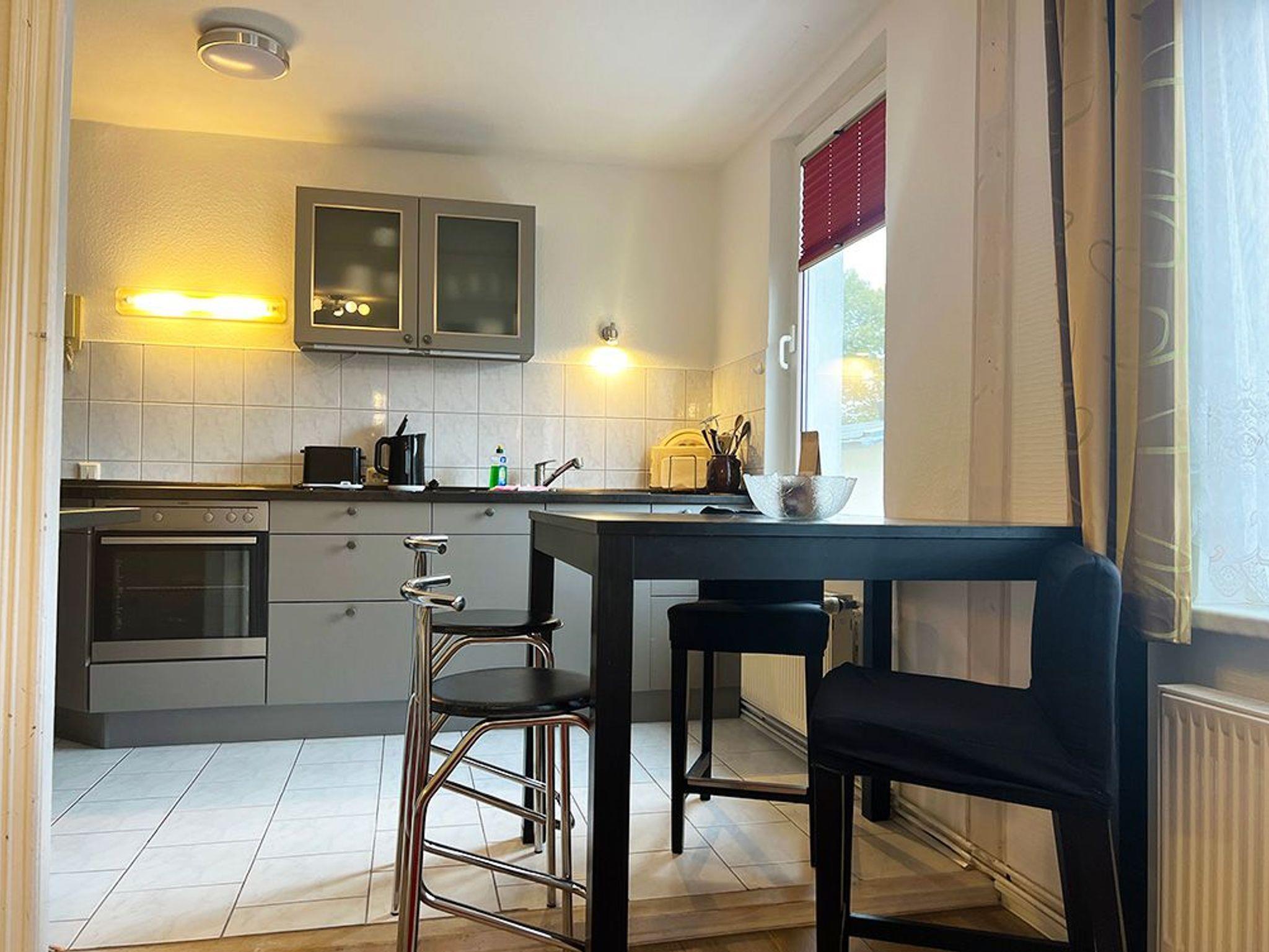 Gemütliche, helle 3-Zimmer Ferienwohnung im 1.OG eines Hinterhauses, gelegen am ruhigen Teil des alten Stroms. Der Zugang erfolgt über den Innenhof des Kapitänshauses sowie eine steile Treppe.