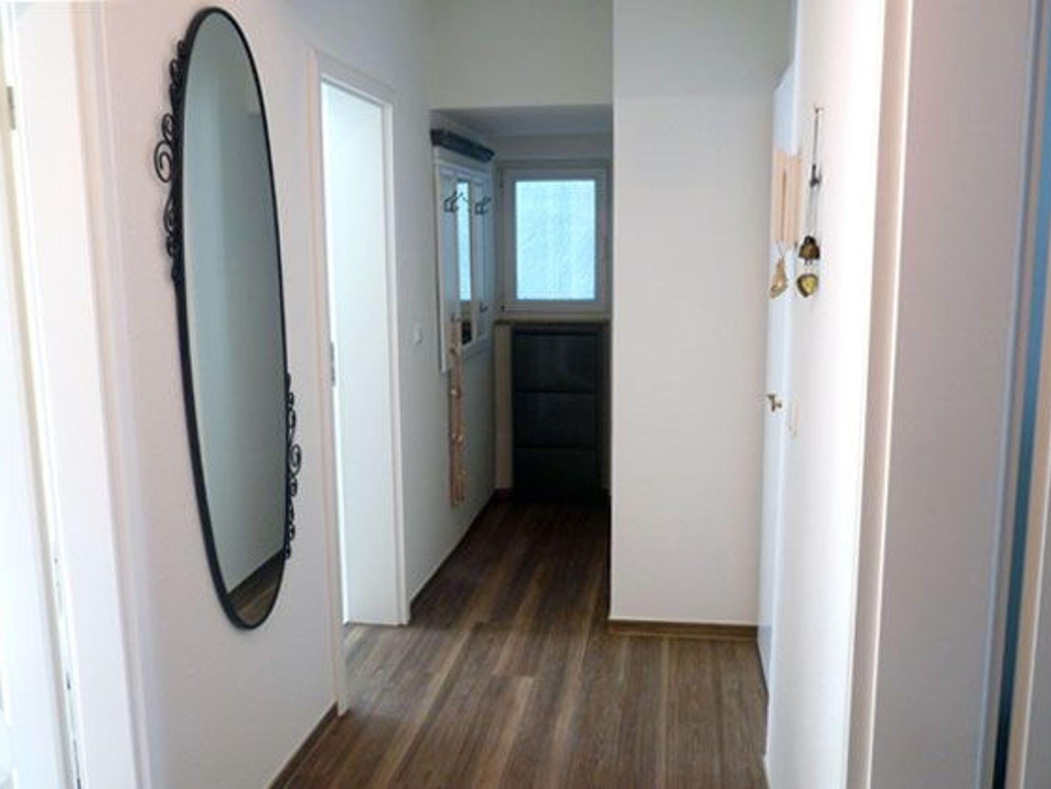 Die moderne Küche ist zum Wohnbereich offen und durch die Fenster schön hell. Eine gemütliche Essecke lädt zum ausgiebigen Frühstück ein. Im Schlafzimmer gibt es ein Doppelbett und das helle Badezimmer ist mit einer Dusche und einer Badewanne ausgestattet. Alle Räume sind vom Flur aus begehbar.
