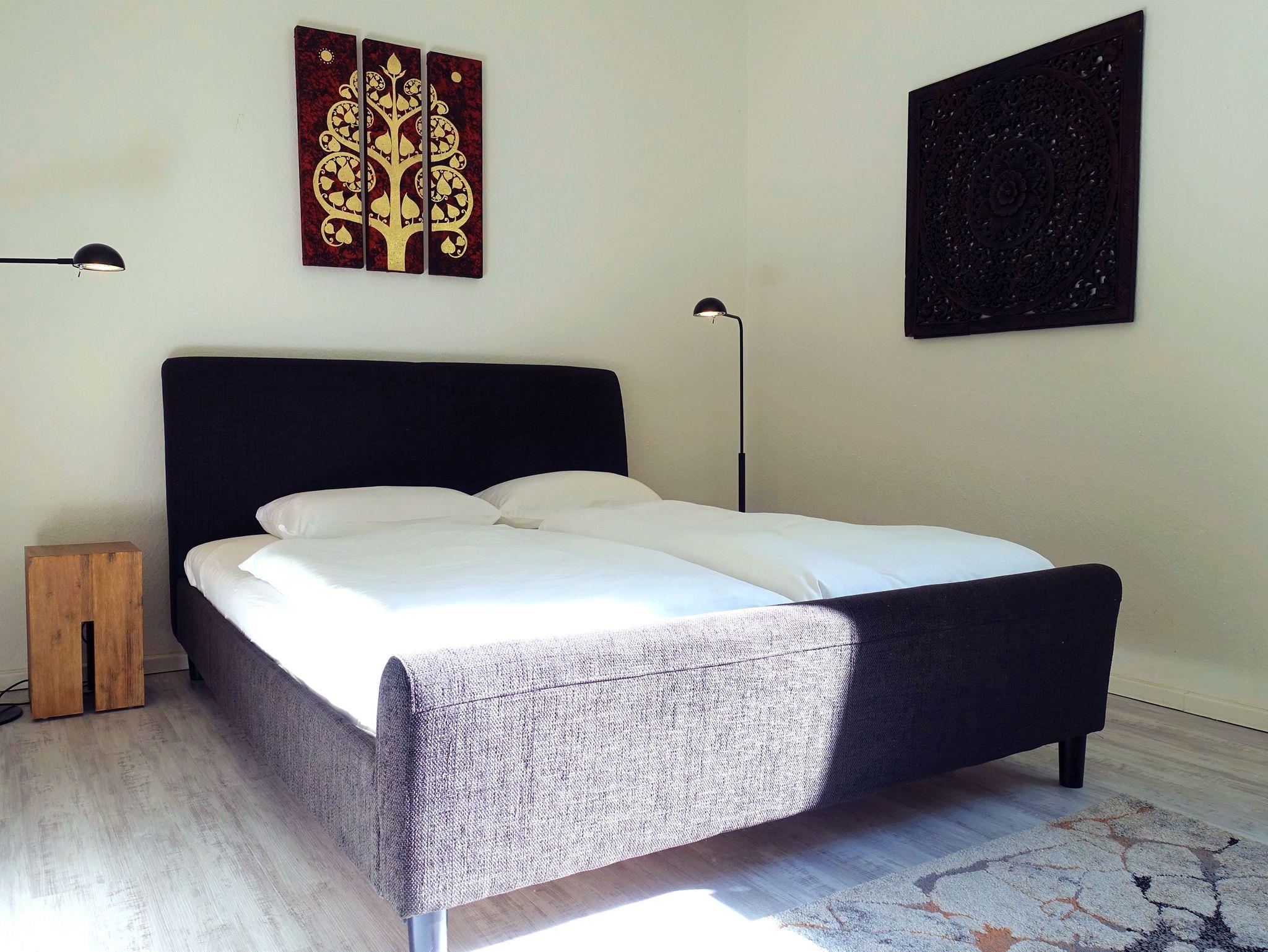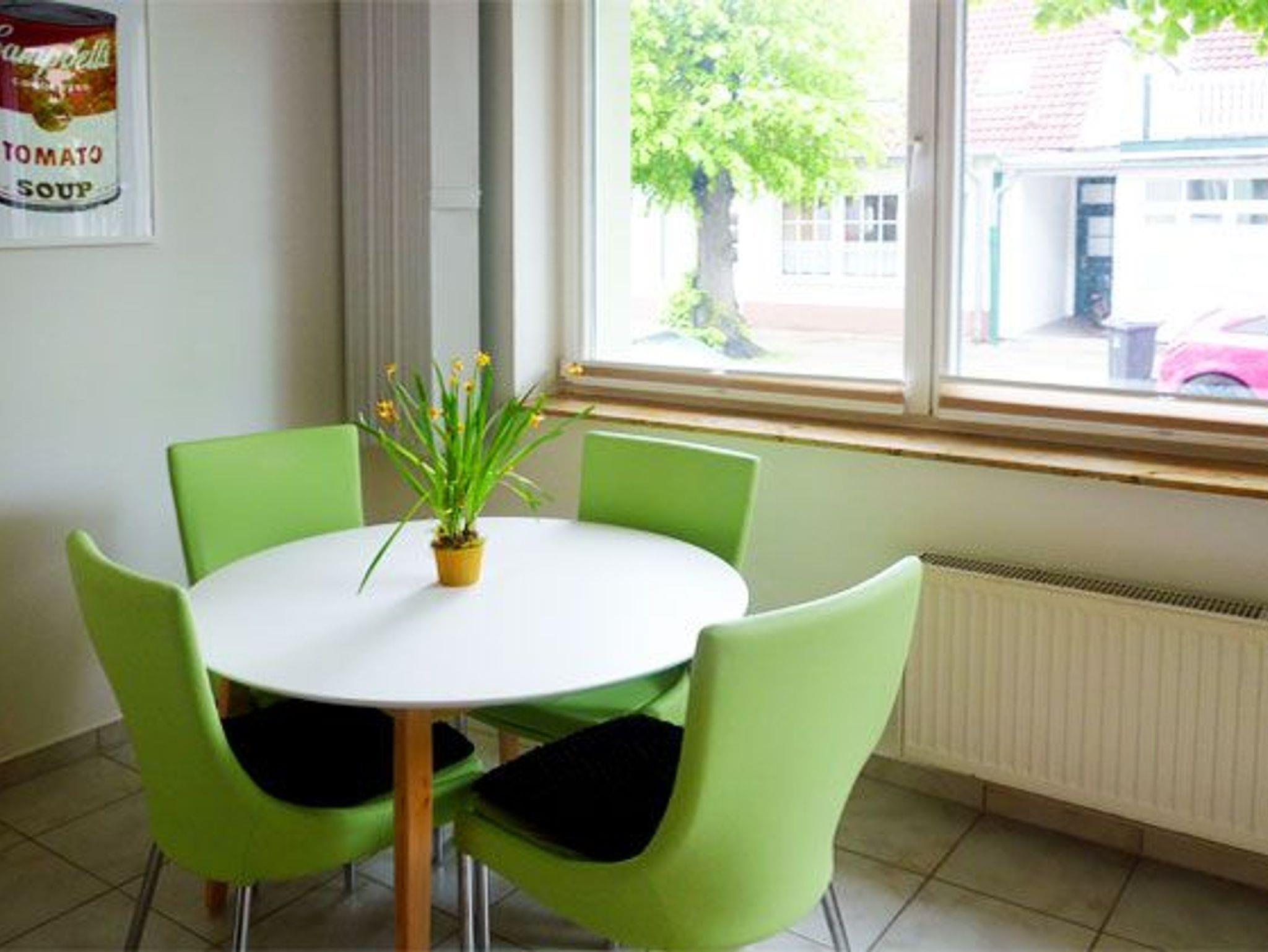 Im Hochparterre eines 1920 errichteten Mehrfamilienhauses befindet sich die moderne Ferienwohnung. Es gibt schöne hohe Räume in der großzügigen Wohnung und schmuckvolle Stuckdecken im Wohnzimmer.