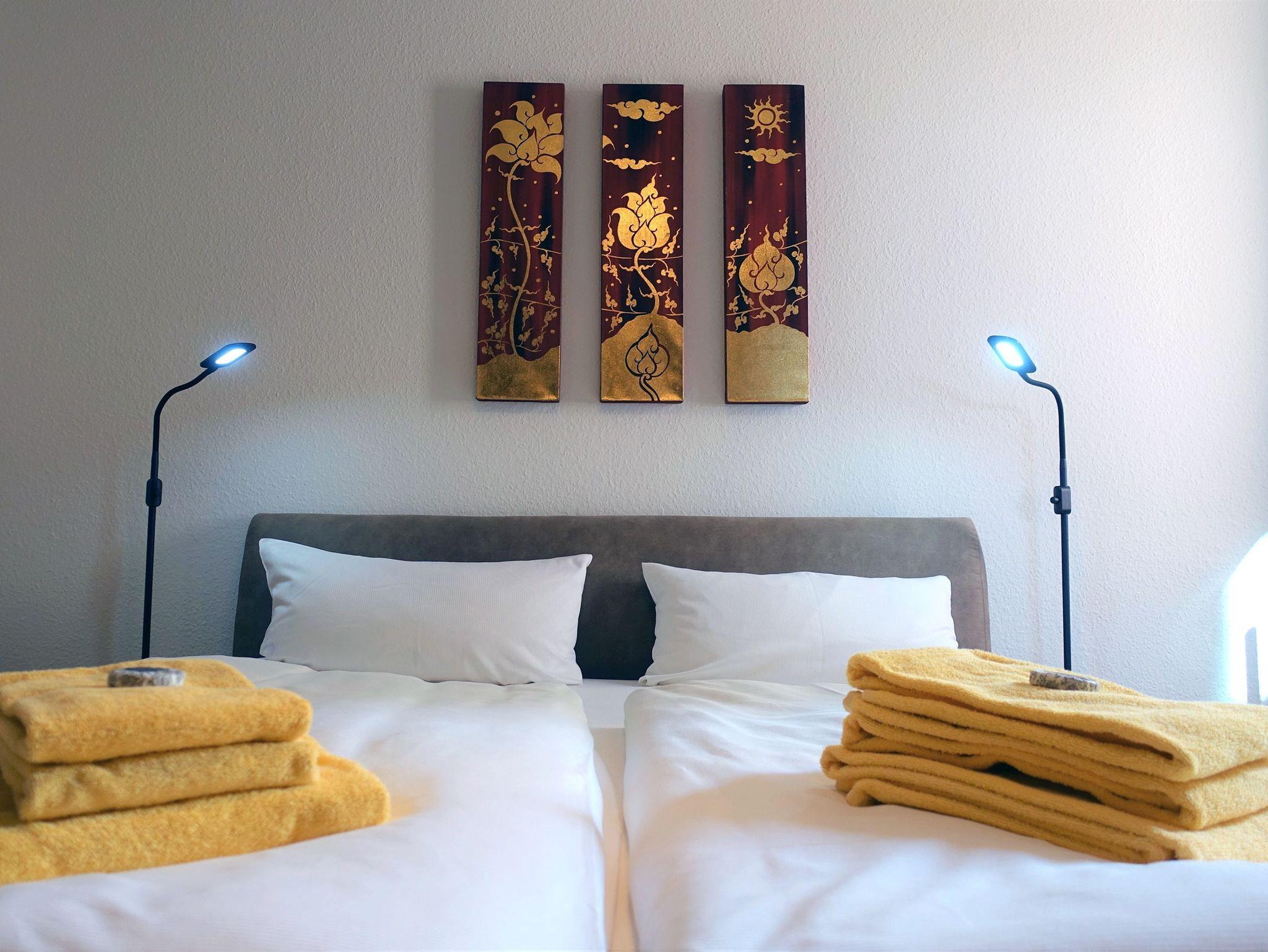 Bei der Einrichtung der Ferienwohnung wurden zahlreiche Naturbaustoffe verwendet. Auf diese Weise erfolgte die Nachbildung einer Wand als Bruchsteinwand aus natürlichen Materialien, wobei außerdem Strohfaser-Lehmputz eingesetzt wurde. Das moderne Wohnzimmer mit Sofaecke, Essplatz und kleiner Einbauküche sowie ein ruhig gelegenes Schlafzimmer und ein kleines Bad befinden sich auf etwa 63 Quadratmetern. Eine HiFi-Anlage (Netzwerk-Receiver mit Internetradio), eine 55 Zoll (140 cm) 3-D-Flachbildschirm mit Soundprojektor und einer BluRay-DVD gehören zu den hochwertigen Geräten. Das Zimmer wurde frisch renoviert und verfügt über ein neues Bett mit neuen Matratzen und Lattenrosten, die höhenverstellbar sind. Die Härte der Matratzen ist unterschiedlich hoch.