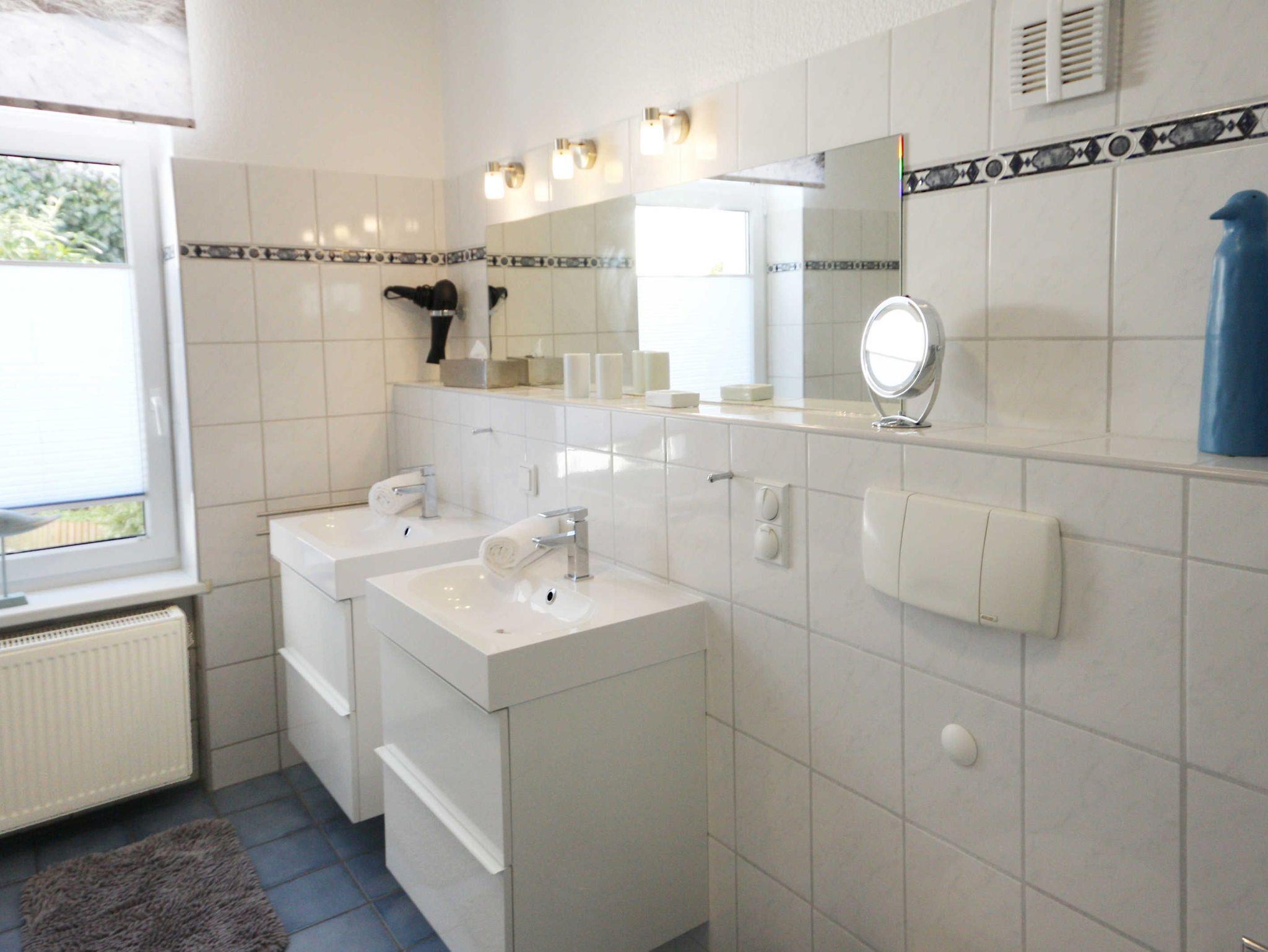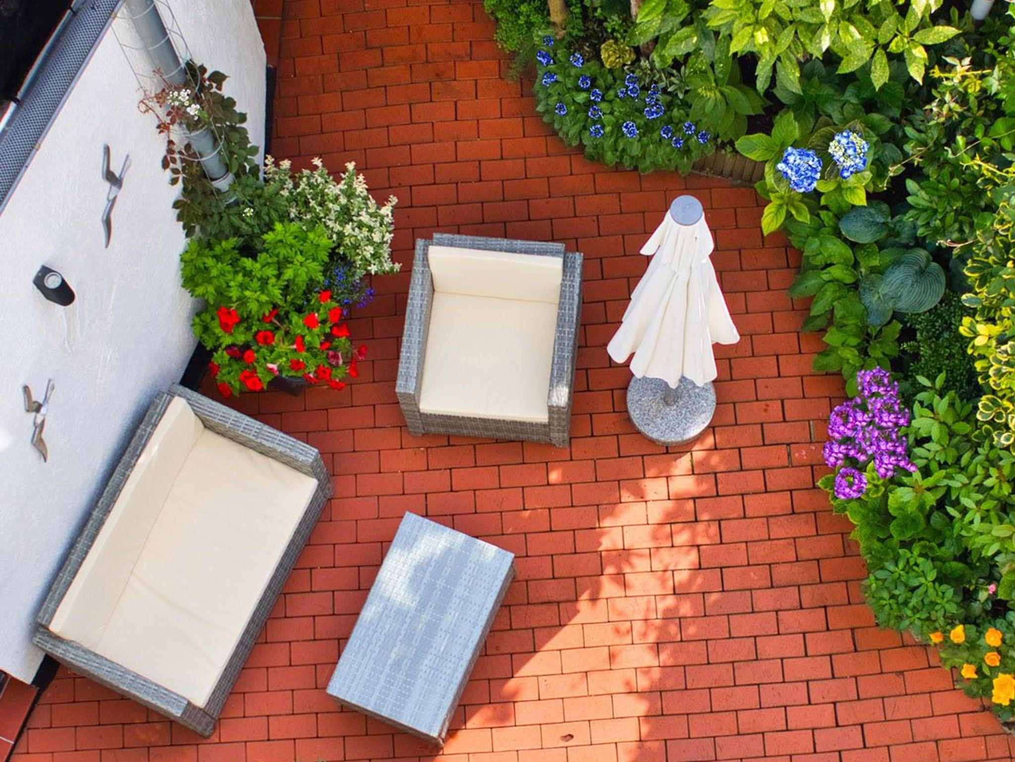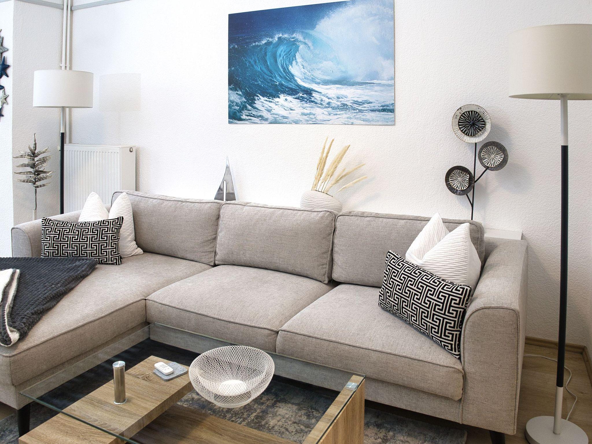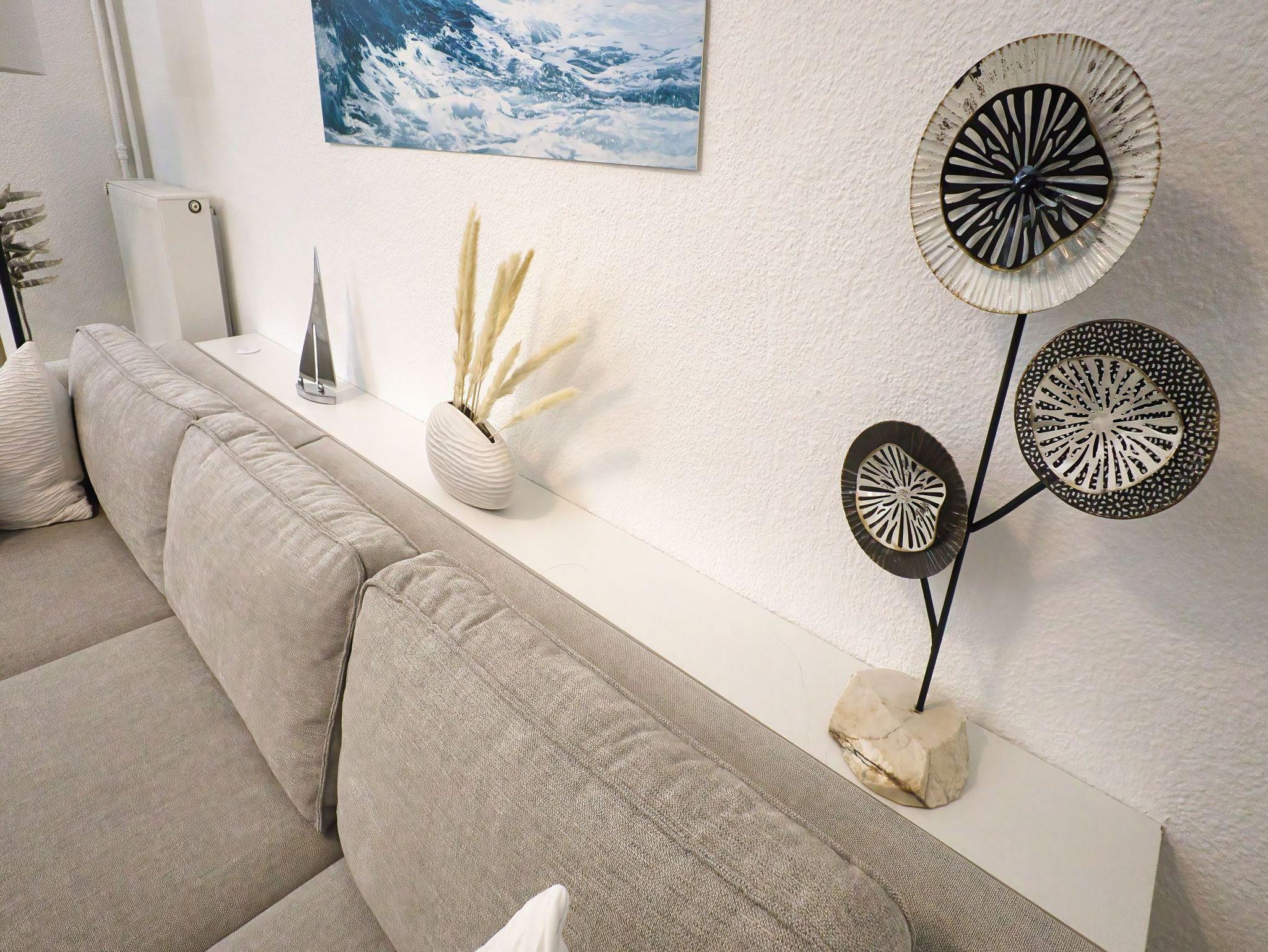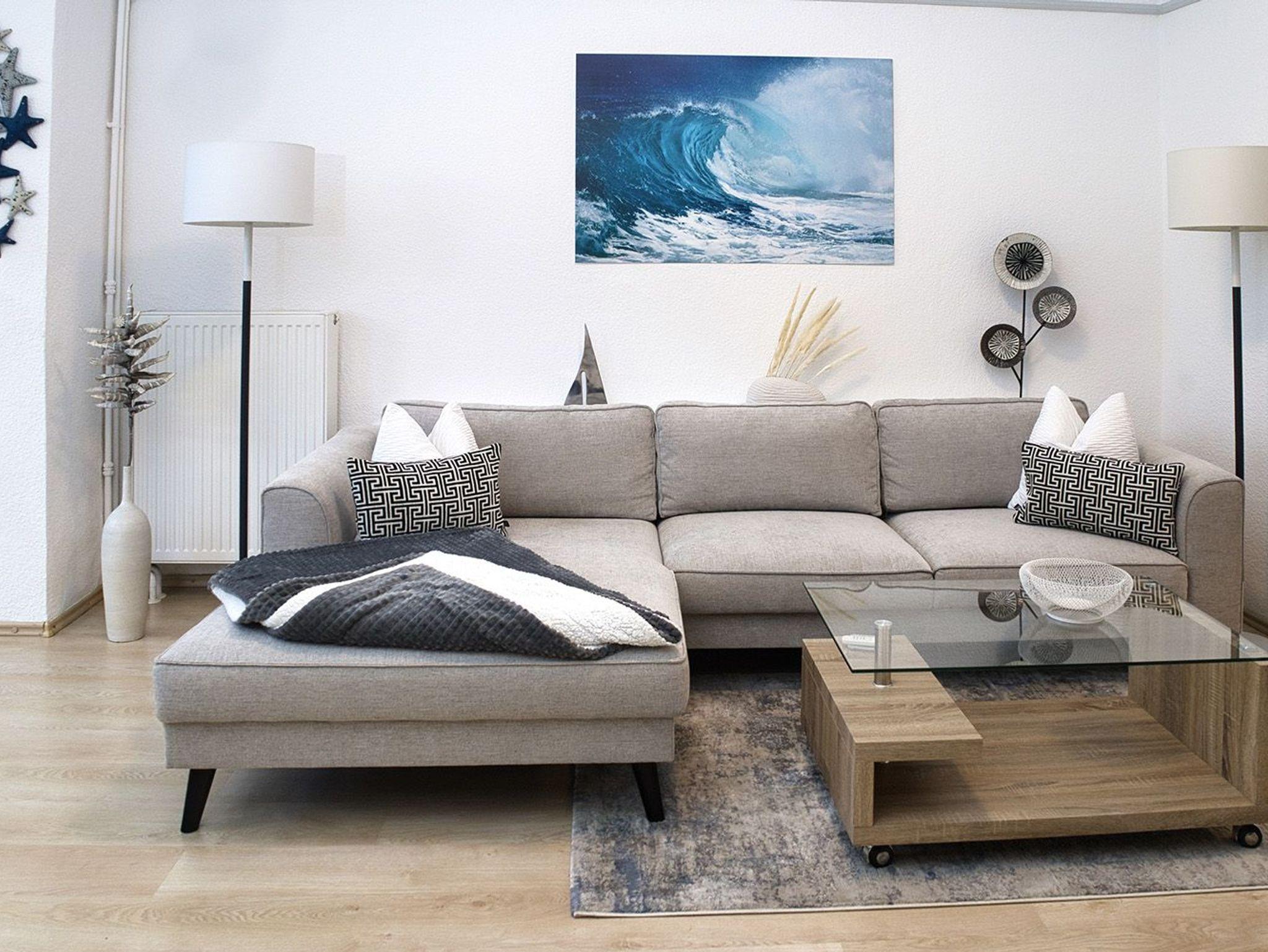 Unsere helle, moderne, 75 qm große Ferienwohnung „Ferienhaus der kurzen Wege bietet Ihnen diverse Möglichkeiten, Ihren Urlaub in optimaler Lage zu verbringen. Sie ist eine Oase der Ruhe mit schöner Terrasse zur Entspannung. Die Wohnung ist komfortabel, hell und hochwertig eingerichtet. Die Küchenzeile grenzt an den Wohn-/Essbereich und bietet Ihnen alles, was sie benötigen. Hier finden sie: Ceranfeld , Geschirrspülmaschine, Wasserkocher, Toaster, Kaffeemaschine, Kombi-Mikrowelle, Delonghi Nespresso-Maschine und natürlich genügend Geschirr und Besteck. Der Esstisch lädt schon am Morgen zum gemütlichen Frühstück ein. Ein sep. Schlafzimmer ist mit einem Doppelbett und rückengerechten Wohlfühlmatratzen, einem geräumigen Kleiderschrank und einem zweiten Flatscreen-TV ausgestattet. Im Wohnzimmer befindet sich eine moderne Sofalandschaft. Nach einem langen Strandtag finden Sie hier Erholung und können die Beine hochlegen und sich mit dem großen Flatscreen-TV wie zu Hause fühlen. Vom Schlafzimmer aus gelangen Sie auf die Terrasse mit dem idyllischen Garten (Alleinnutzung). Ein großes Bad mit Badewanne und Dusche sorgt für den richtigen Erholungs- und Wellnessfaktor. Waschmaschine und elektrischer Wäschetrockner sind vorhanden. Im Haushaltsraum finden sie Bügelbrett, Bügeleisen, Standwäschetrockner und vieles mehr. WLAN können sie bei uns kostenlos nutzen.