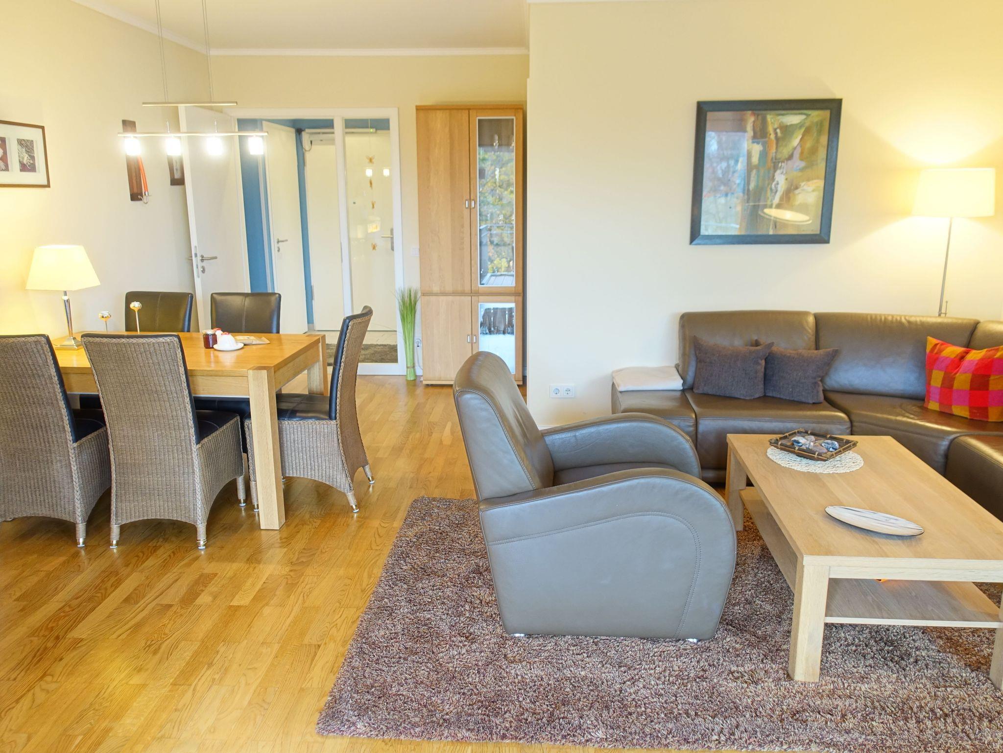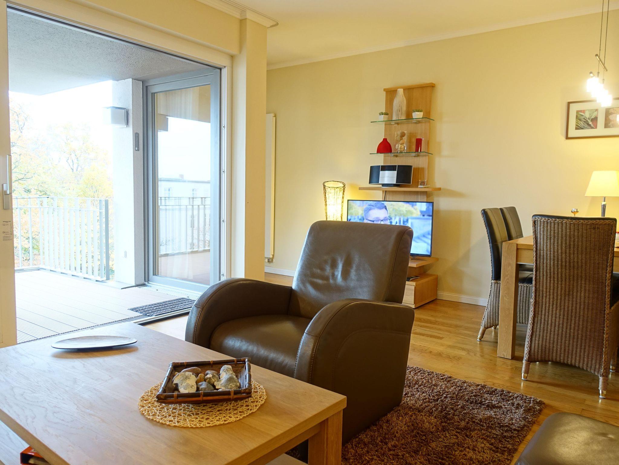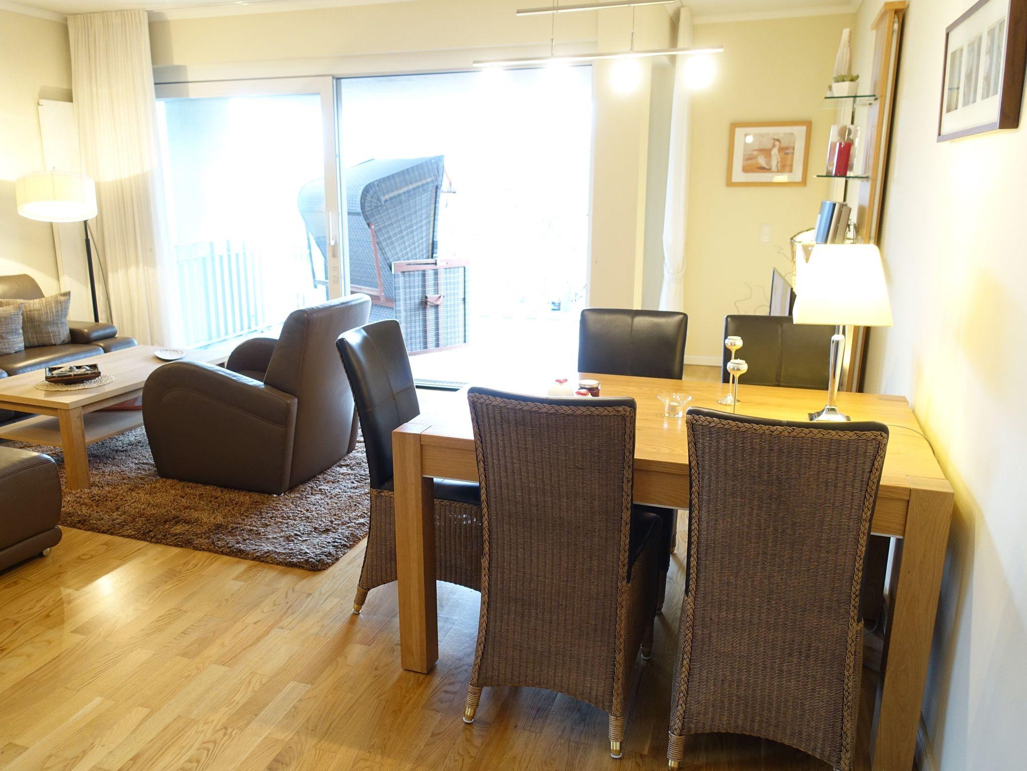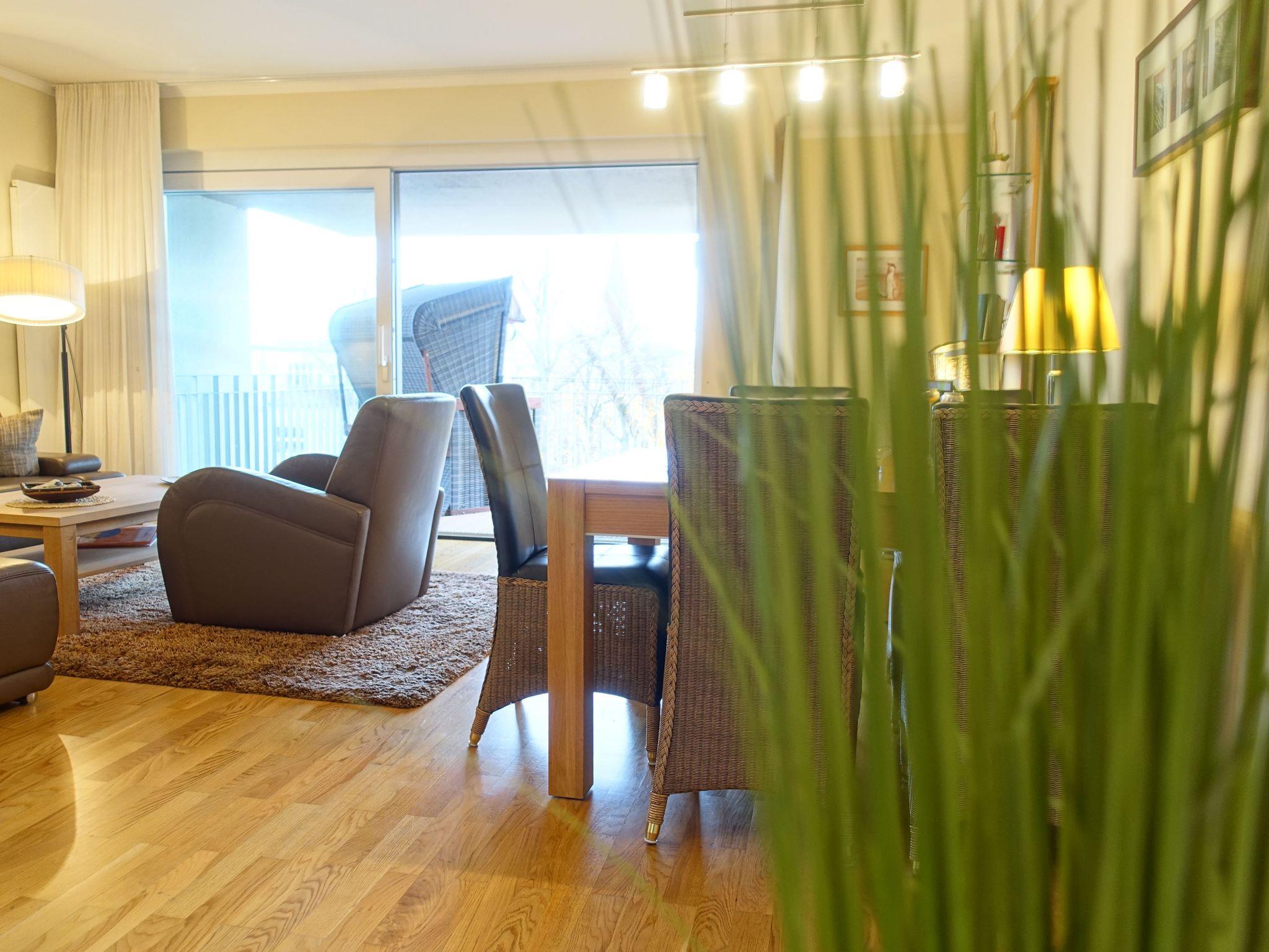 Helle und freundliche Wohnung mit Balkon. Die Ferienwohnung ist im 3. Stock im Haus Sanddorn gelegen und verfügt über einen Fahrstuhl. Vom großen Balkon aus haben Sie einen herrlichen Panoramablick in den Kurpark. Der Strand ist nur 100 m entfernt.