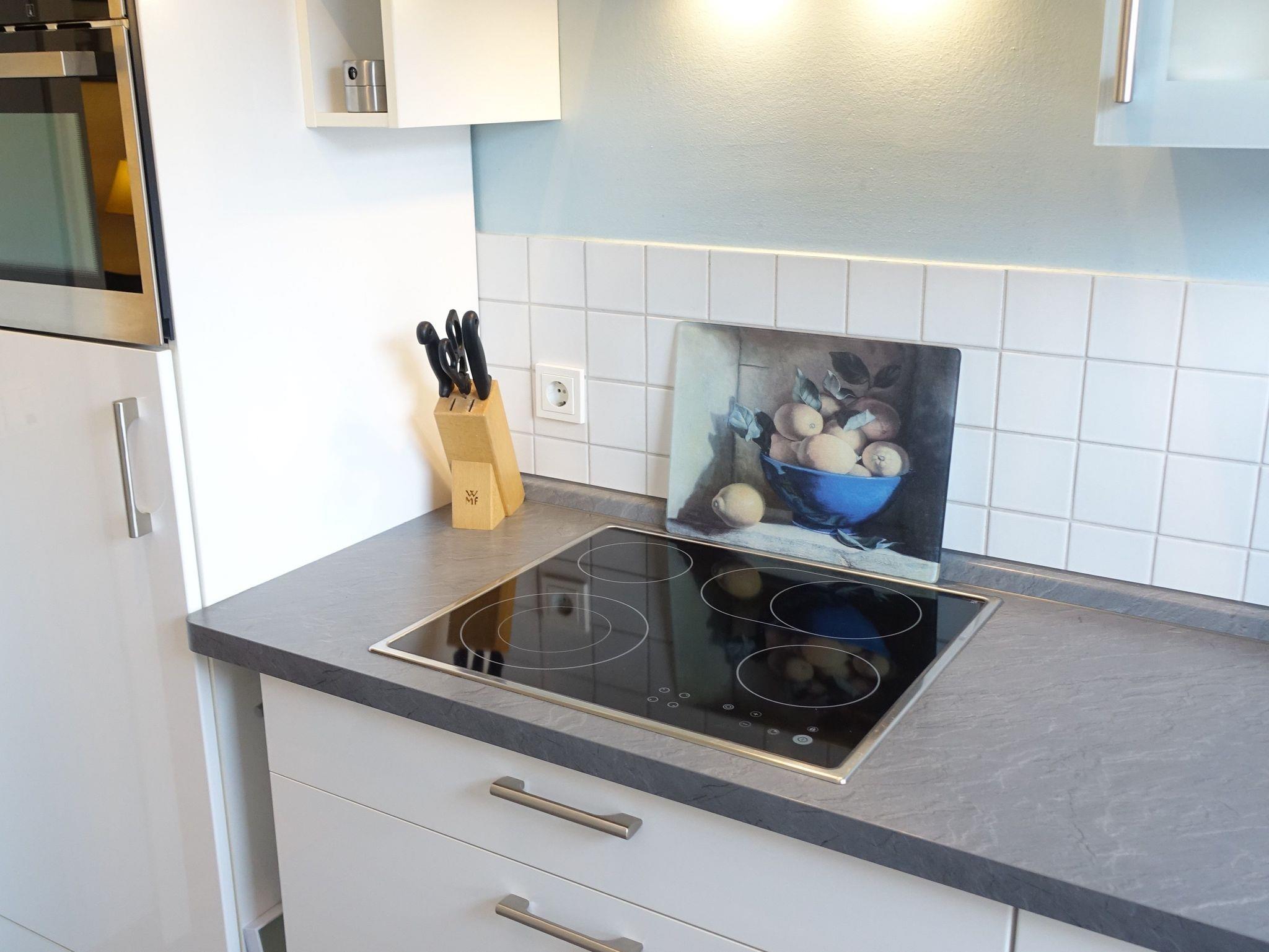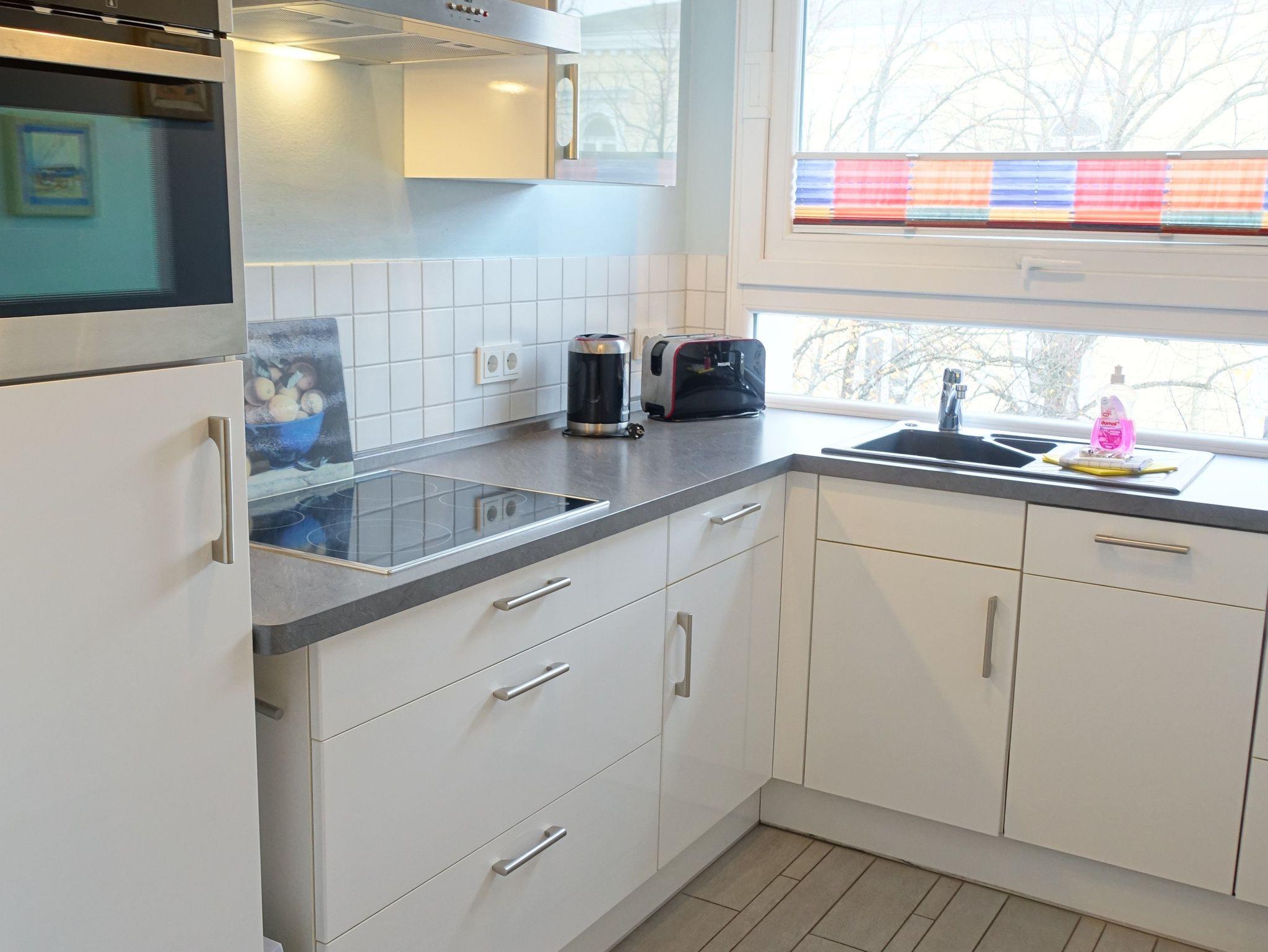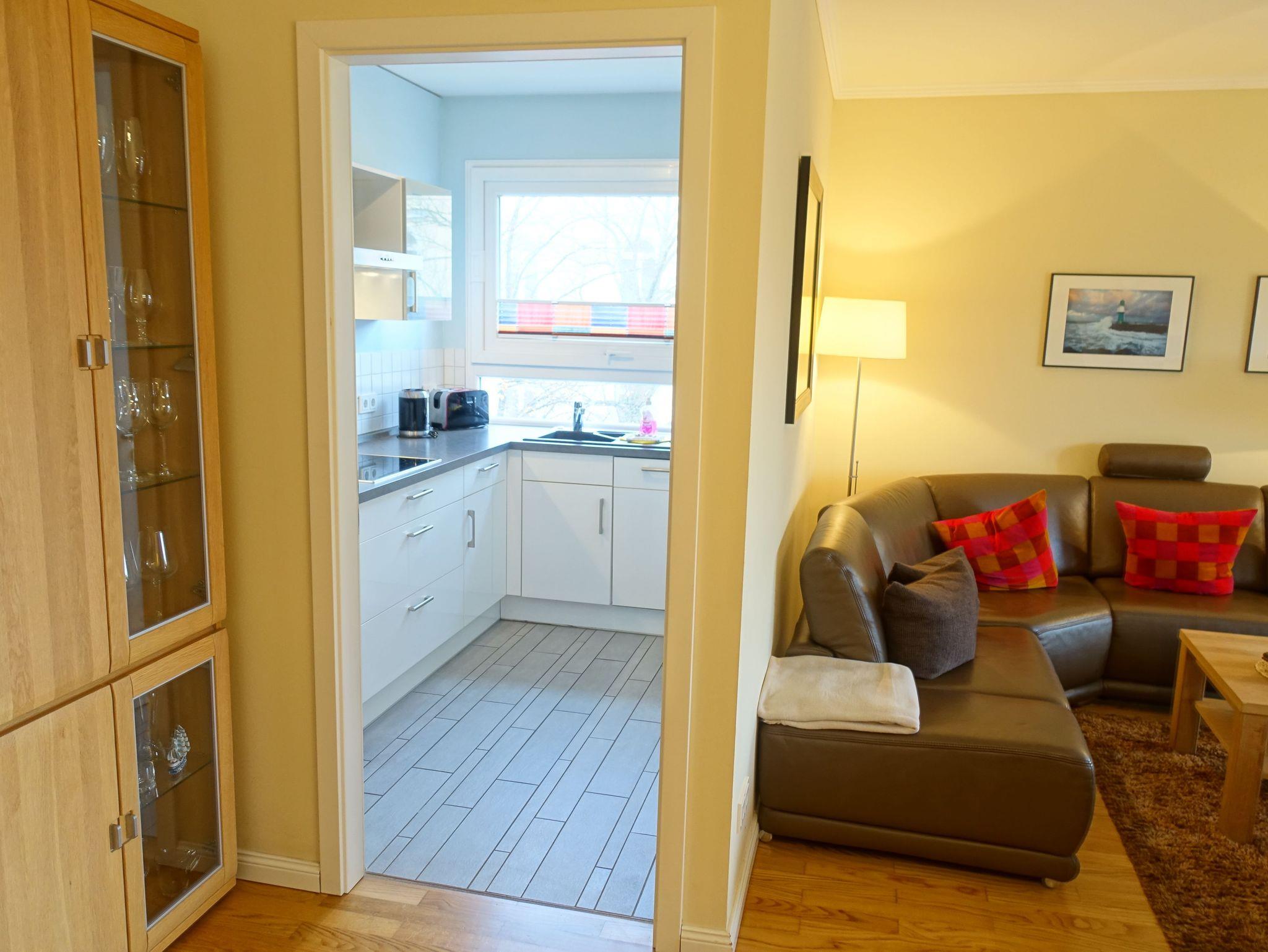 Die Ferienwohnung hat ein schönes Wohn- / Esszimmer sowie eine komplett ausgestattete separate Küche. Auch ein Hauswirtschaftsraum gehört zur Wohnung. Vom Wohnzimmer mit Schlafsofa betreten Sie die große Balkonterrasse.