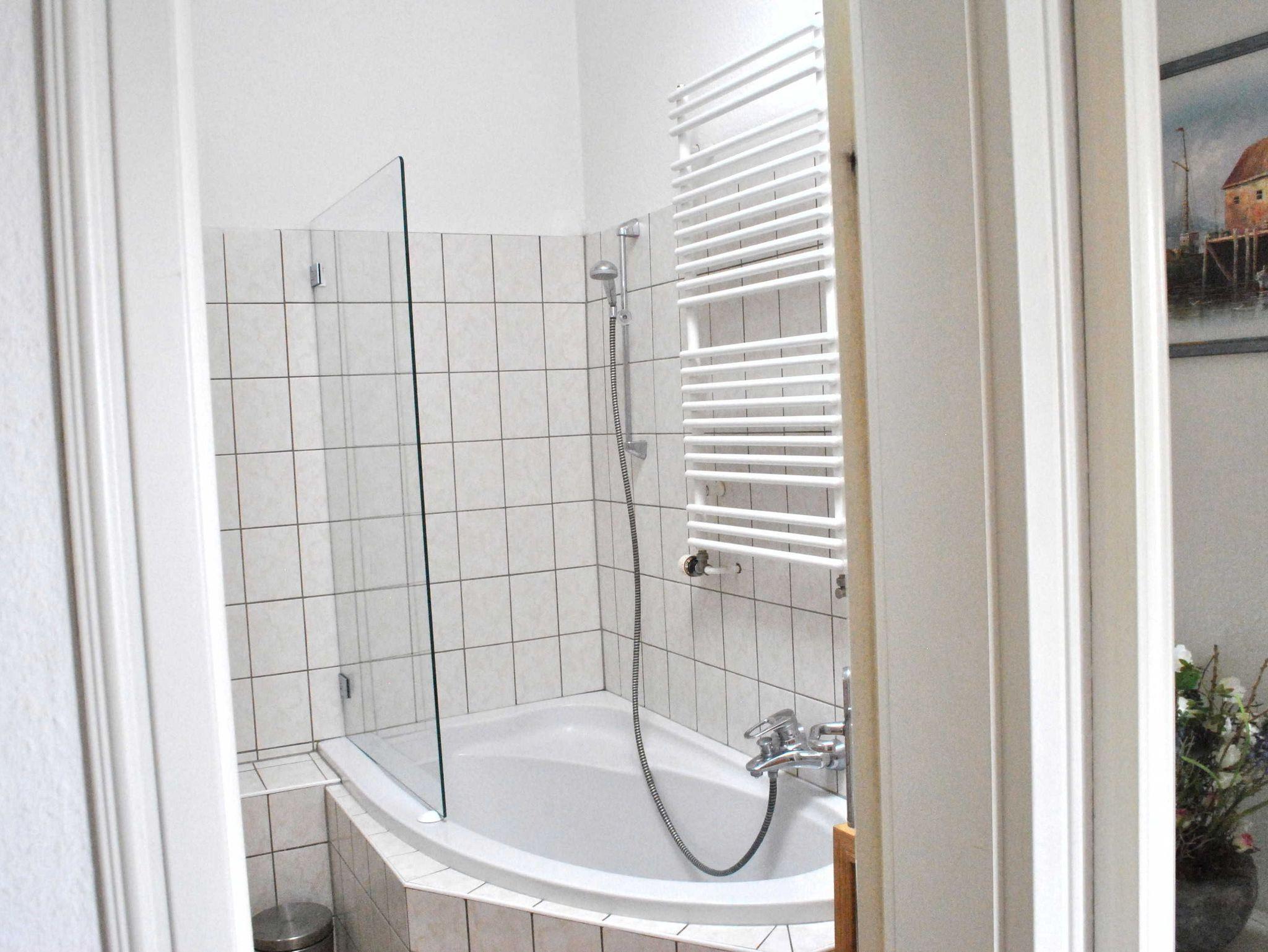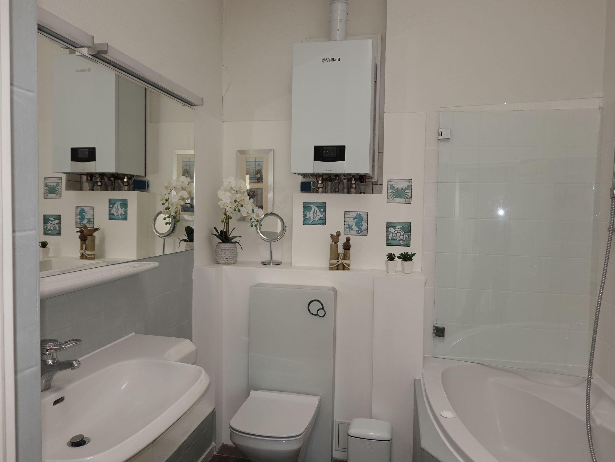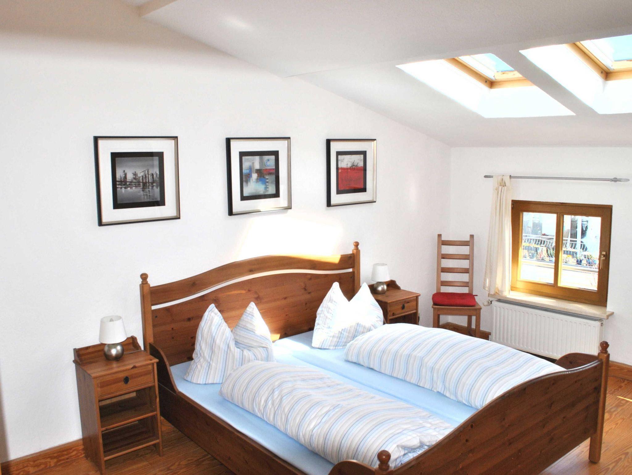 Neben dem großen und hellen Doppelschlafzimmer mit zusätzlichen Oberlichtern gibt es noch ein Schlafzimmer mit 2 Einzelbetten und ebenfalls zusätzlichem Oberlicht. Das Badezimmer ist mit Badewanne/Dusche und WC ausgestattet.