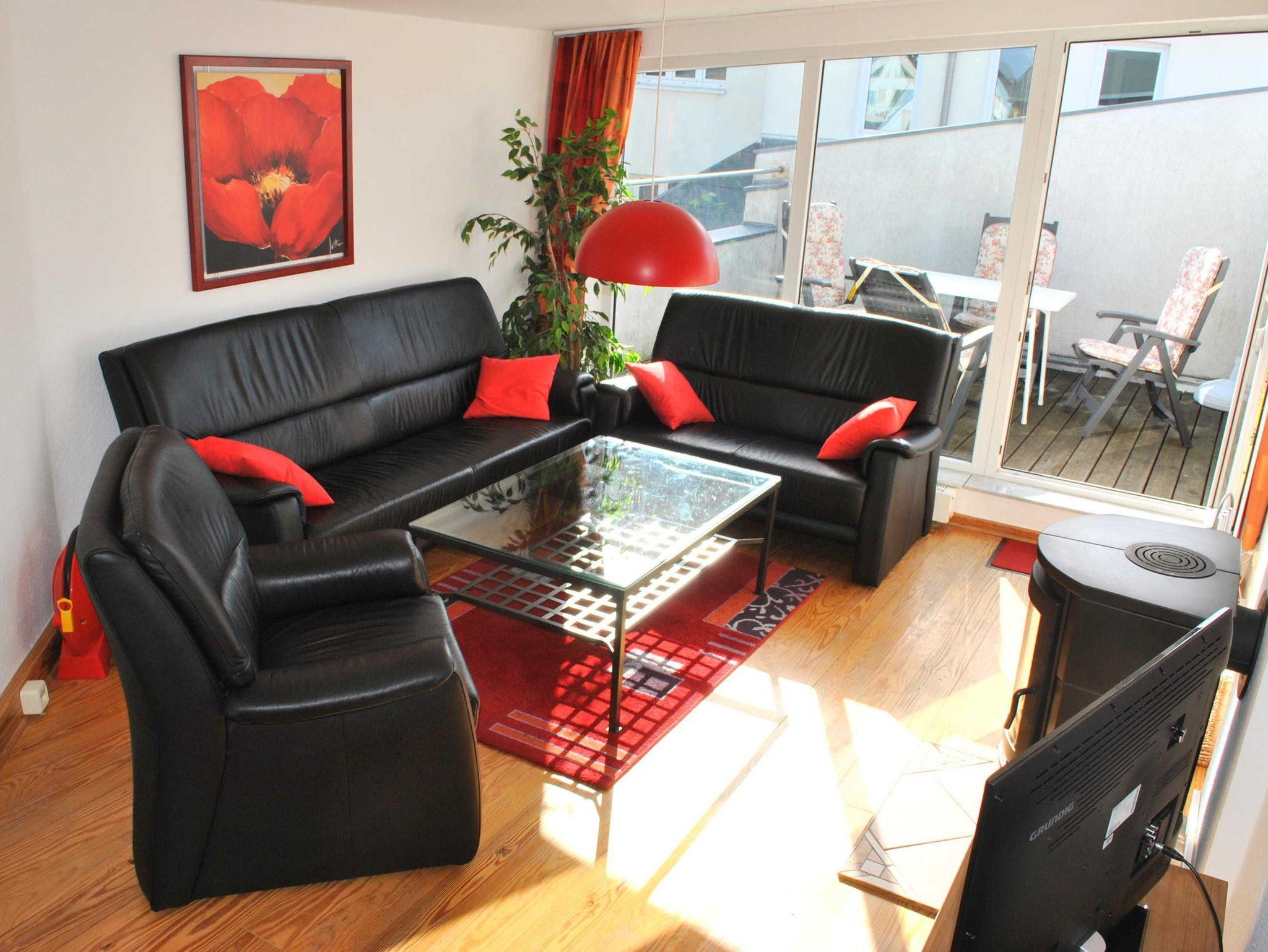 Die Ferienwohnung Leuchtfeuer in Warnemünde bietet Ihnen auf ca. 90 qm Platz für bis zu 4 Personen. Die Ferienwohnung liegt im Obergeschoss in der Altstadt von Warnemünde und besitzt sowohl eine Aussicht als auch eine Dachterrasse mit Sonnenschirm und einen Kaminofen im Wohnbereich.