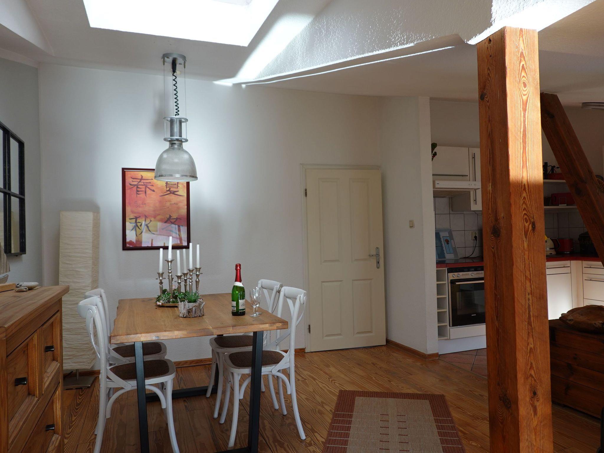 Die gesamte Wohnung ist unter Beibehaltung der alten Balkenkonstruktion restauriert. Durch die alten Balken haben Sie ein besonders Ambiente. Ganz besonders gemütlich ist es im Winter am Kamin. Holz können Sie in den Baumärkten erhalten.