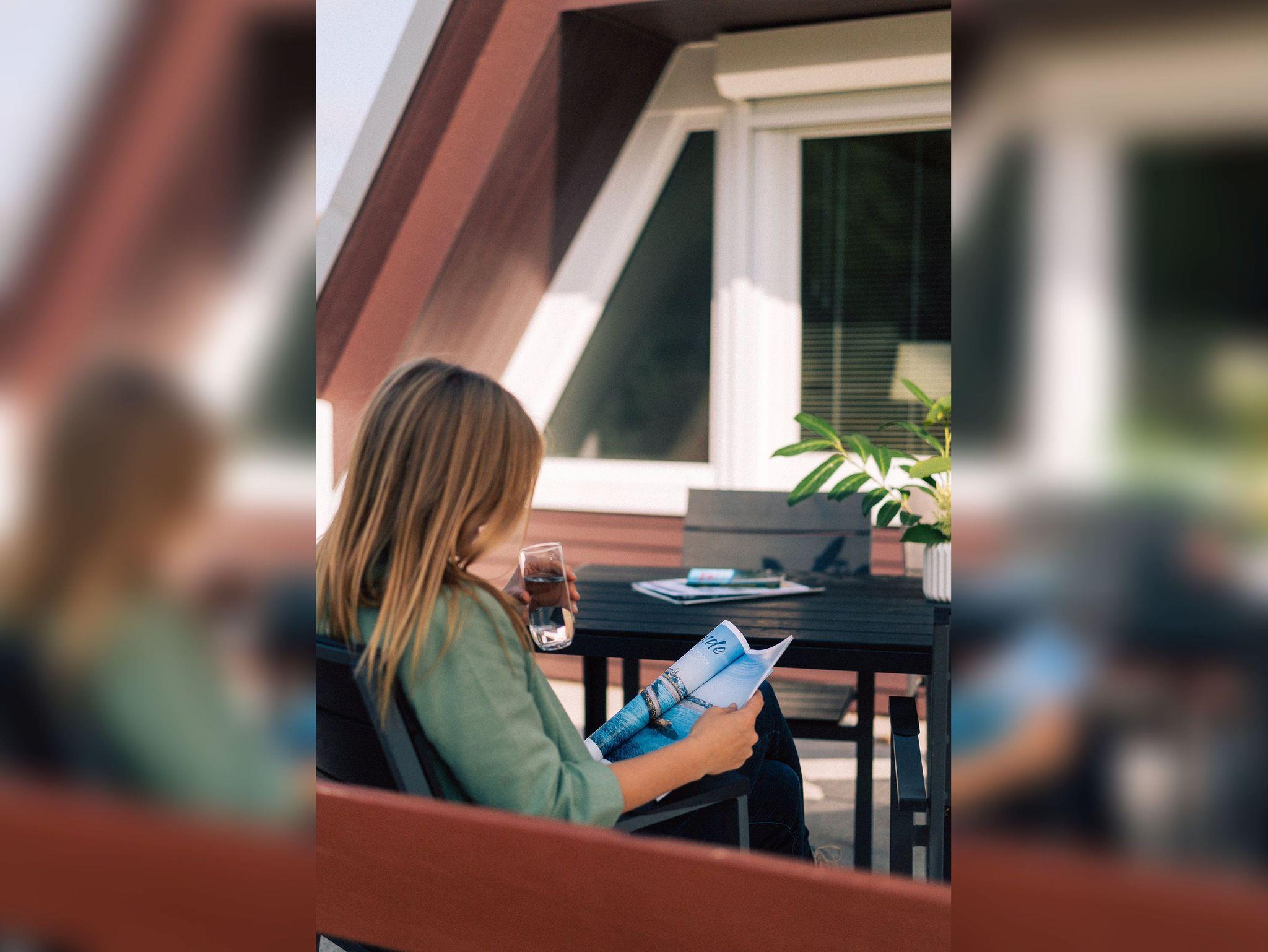Jede Hütte verfügt über eine eigene, südwärts gerichtete Terrasse, auf der man die frische Meeresluft genießen kann. Die Lage inmitten der Natur bietet Ruhe und Erholung, während man dennoch in kurzer Entfernung zu den wichtigsten Sehenswürdigkeiten ist. Ein idealer Ort, um dem Alltag zu entfliehen und die Schönheit der Ostseeküste zu erleben. Ein Kinderspielplatz befindet sich mittig auf der Anlage.